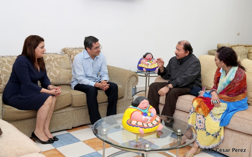 El Presidente de la República, Comandante Daniel Ortega Saaveda, y la Compañera Vicepresidenta, Rosario Murillo, sostuvieron una reunión de trabajo con el Presidente de Honduras, Juan Orlando Hernández, en la que abordaron temas relacionados a la integración centroamericana.