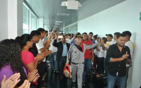 En un ambiente de mucha algarabía, familiares, amigos y miembros de Juventud Sandinista llegaron hasta el Aeropuerto Internacional Augusto, C, Sandino para recibir al campeón de las 108 libras de la Federación Internacional de Boxeo (FIB) Félix “El Gemelo