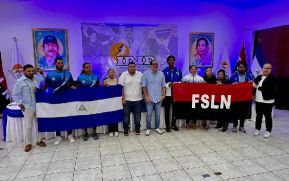 Autoridades del Gobierno de Nicaragua junto a dirigentes de Juventud Sandinista, el Instituto Nicaragüense de Deportes (IND) y la Federación Nicaragüense de Voleibol.
