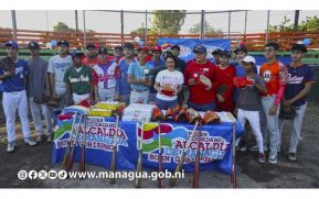 En el Campo de Béisbol de Villa Progreso, fue entregado por la Alcaldía de Managua equipamiento deportivo para fortalecer el deporte entre los niños, adolescentes y jóvenes de este sector.