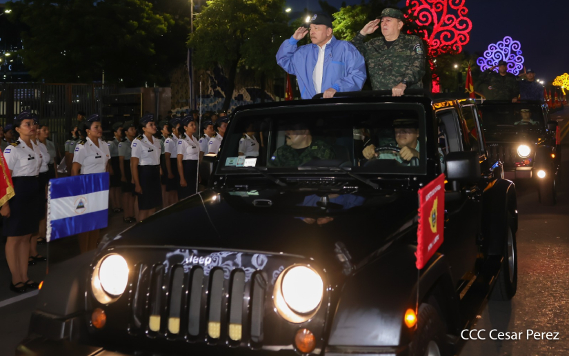 Comandante Daniel Ortega y Compañera Rosario Murillo, Copresidentes de la República y Jefatura Suprema del Ejército de Nicaragua; Hermanos de la Comandancia General.