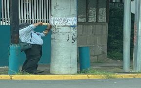 Las fotografías fueron tomadas mientras él pegaba los rótulos en postes de luz, dejando su numero telefónico para todos aquellos padres y alumnos, que necesitan reforzamiento en estos últimos días donde ya esta próximo a culminar el año escolar 2019.