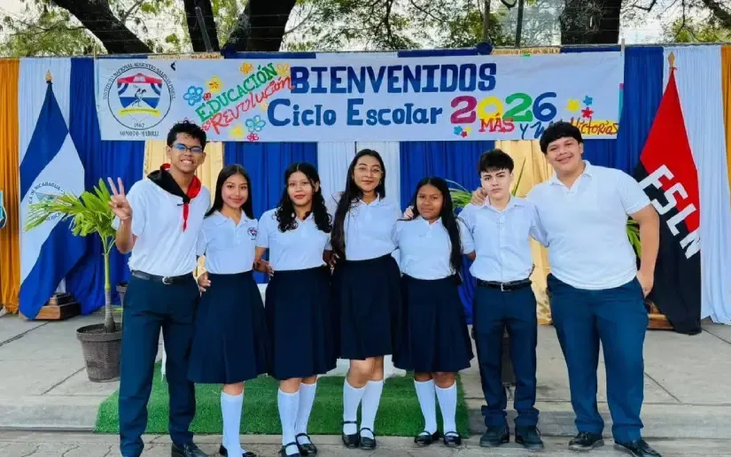 Las autoridades educativas del Colegio Comandante Carlos Fonseca Amador, ubicado en el kilómetro 14 de la carretera Norte, inauguraron este lunes su nueva infraestructura y saludaron el inicio del nuevo año escolar 2026: ¡Más y Más Victorias!