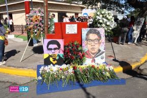 Con música revolucionaria, poesía y flores, se brindó honores al legado de Leonel Rugama, Roger Núñez y Mauricio Hernández, ejemplos de lucha, de patriotismo y dignidad, que no se rindieron porque querían una patria en paz.