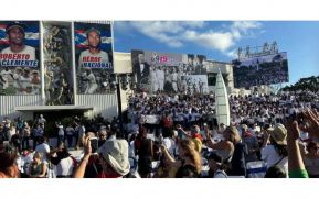 Decenas de miles se reunieron en el centro de la capital de Nicaragua, Managua, el miércoles por la noche para celebrar el 44 aniversario del triunfo de la revolución sandinista en 1979.