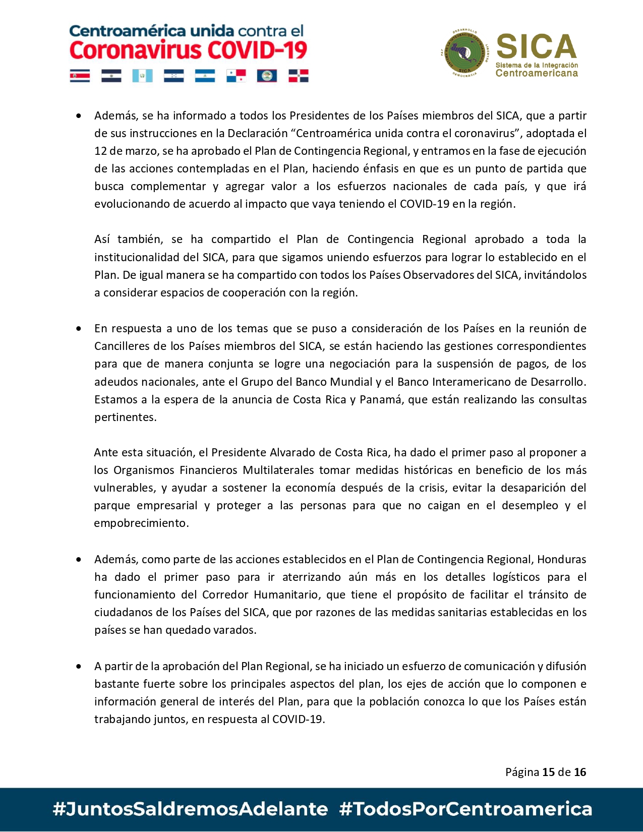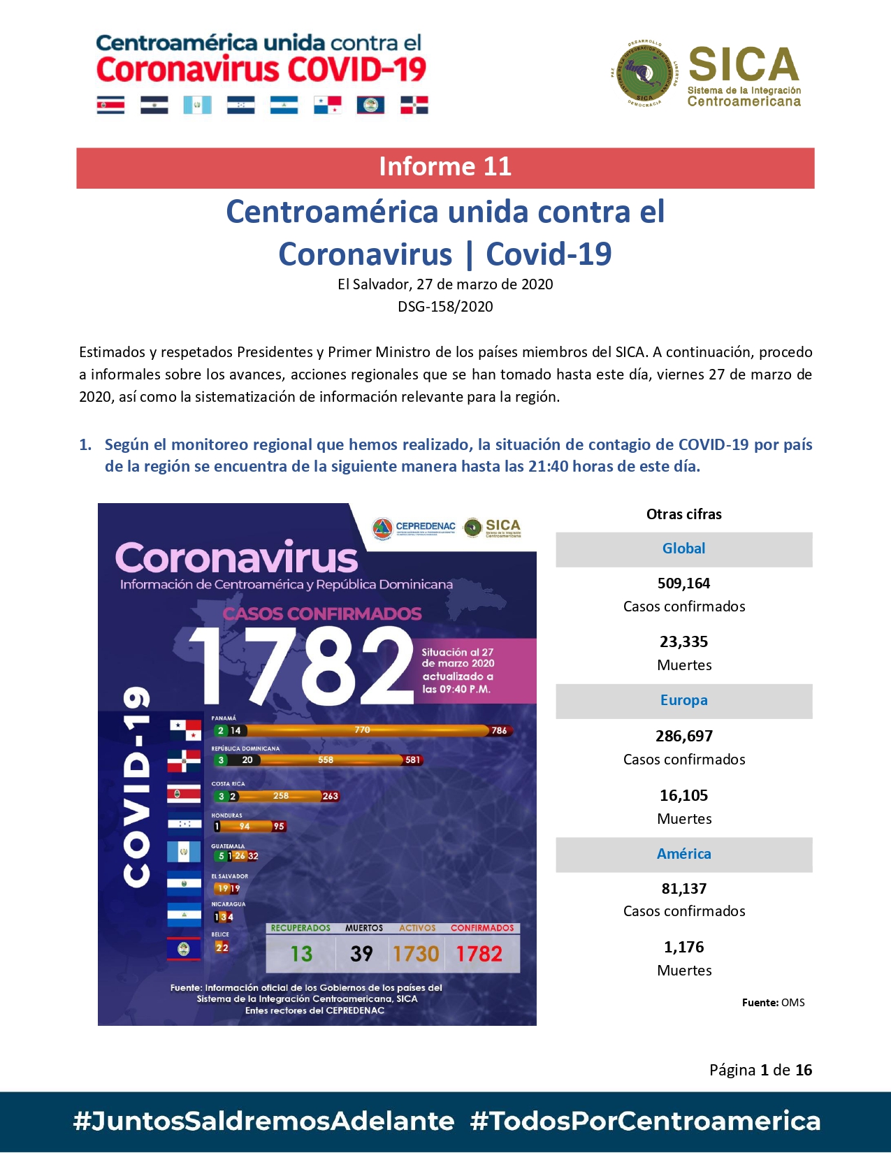 Este es el Informe 11: Centroamérica unida contra el Coronavirus/ Covid-19: