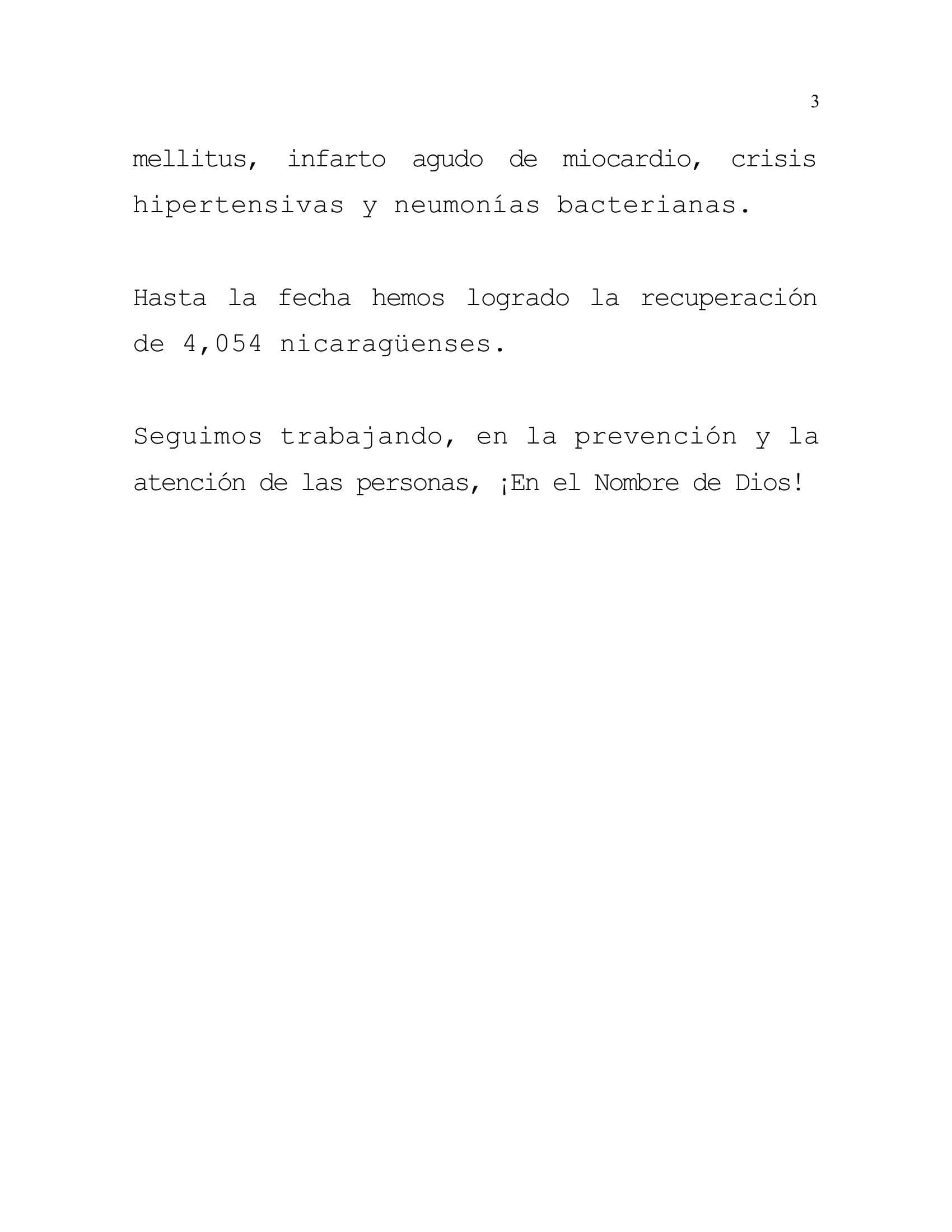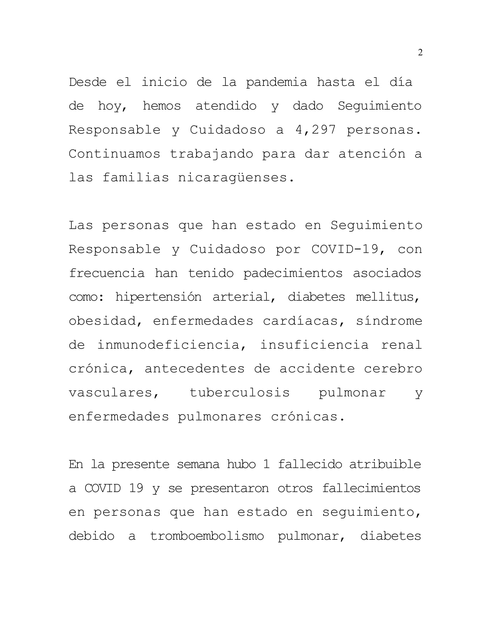 Desde el inicio de la pandemia hasta el día de hoy, hemos atendido y dado Seguimiento Responsable y Cuidadoso a 4,297 personas. Continuamos trabajando para dar atención a las familias nicaragüenses.