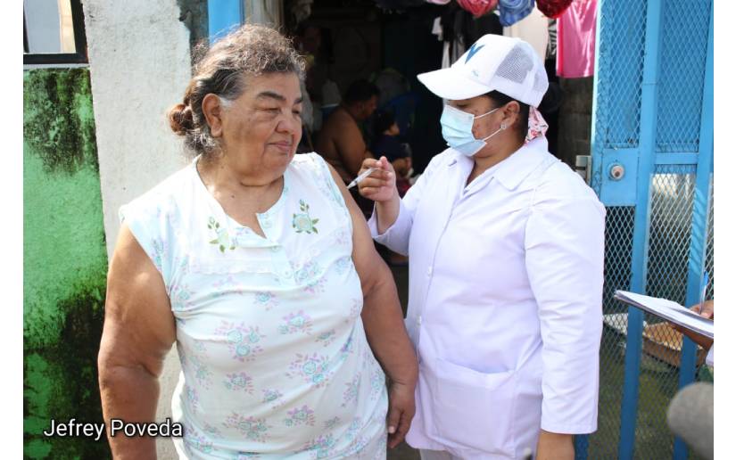Las brigadas del Ministerio de Salud (Minsa) continúan con la visita casa a casa vacunando contra la Covid-19, y este martes inmunizaron a los pobladores del barrio Adolfo Reyes, ubicado en el Distrito V de Managua.