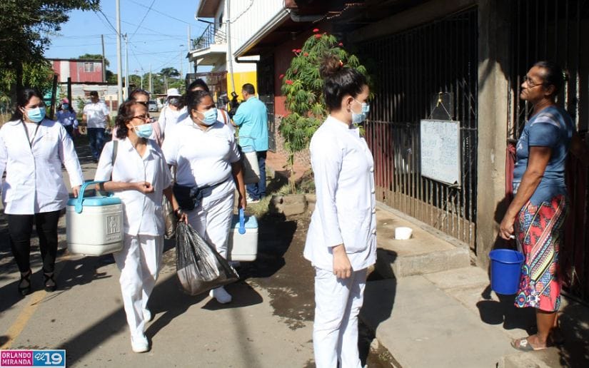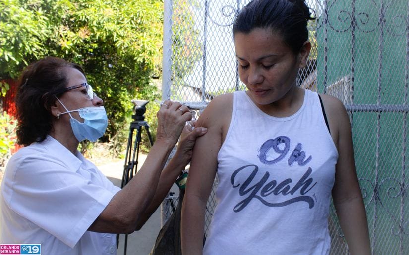 Familias del barrio Waspán Norte, en Managua, recibieron la primera dosis del esquema de vacunación contra la Covid-19 del año 2023.
