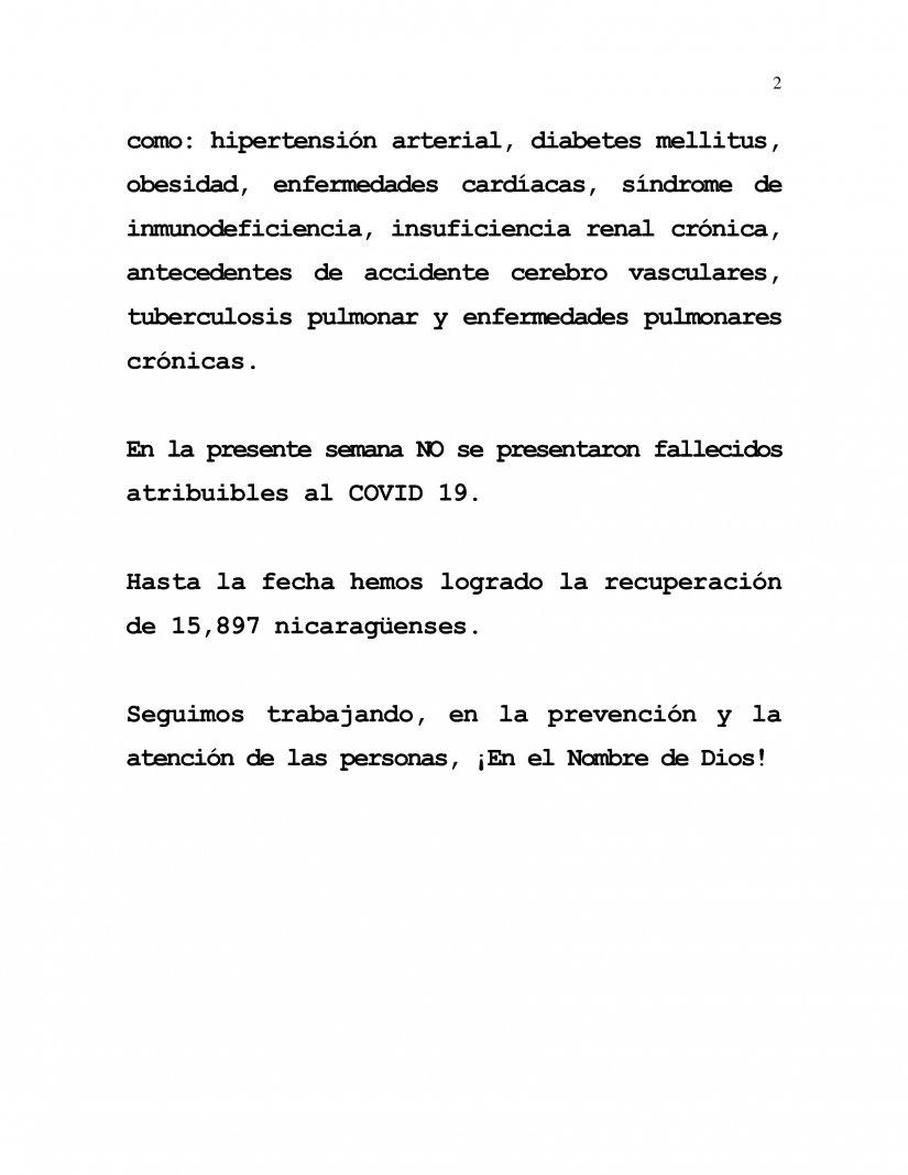During the current week, from 26th March to 2nd April 2024, we have attended and provided Responsible and Careful Care to 1 Nicaraguan confirmed to be COVID-19 positive.