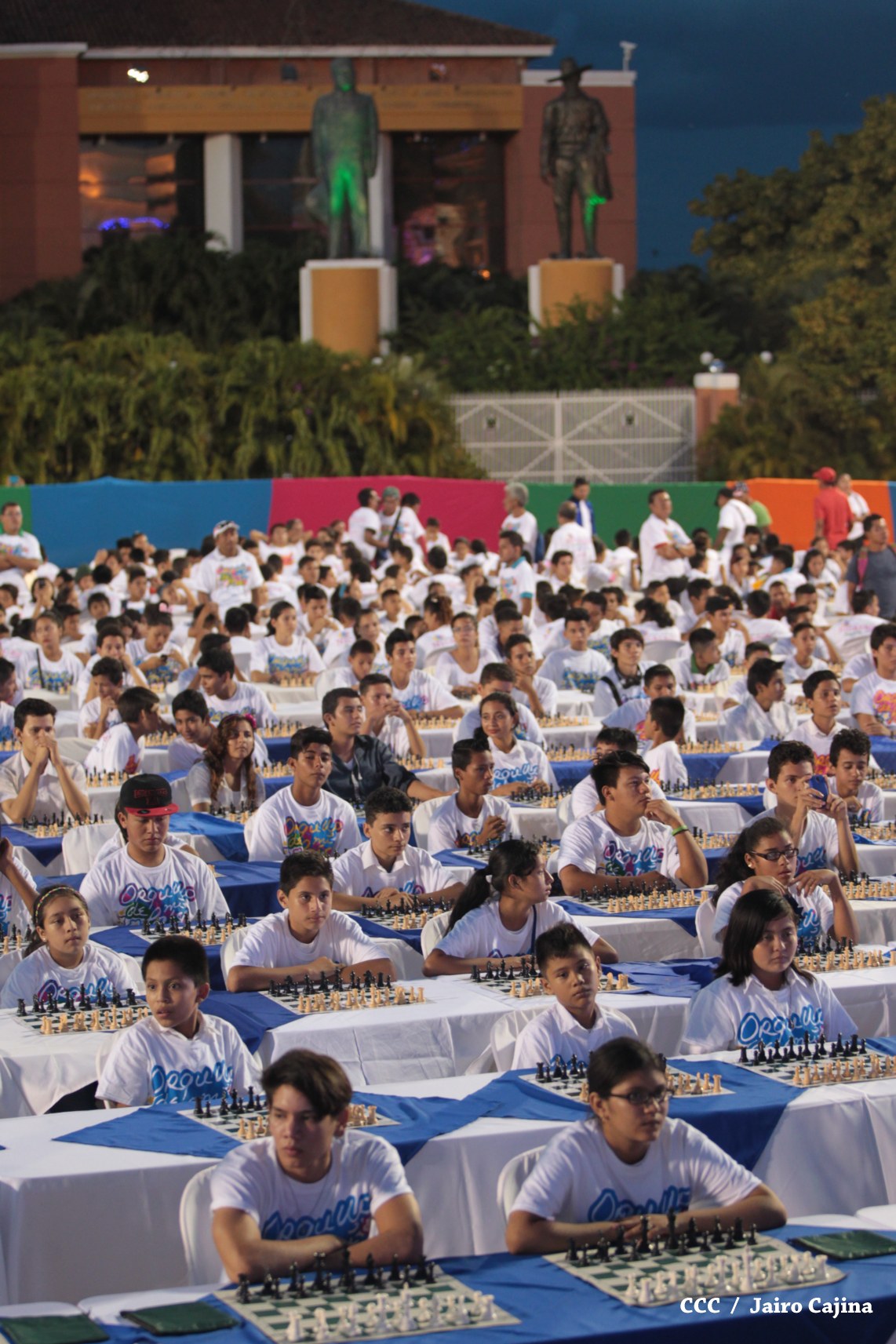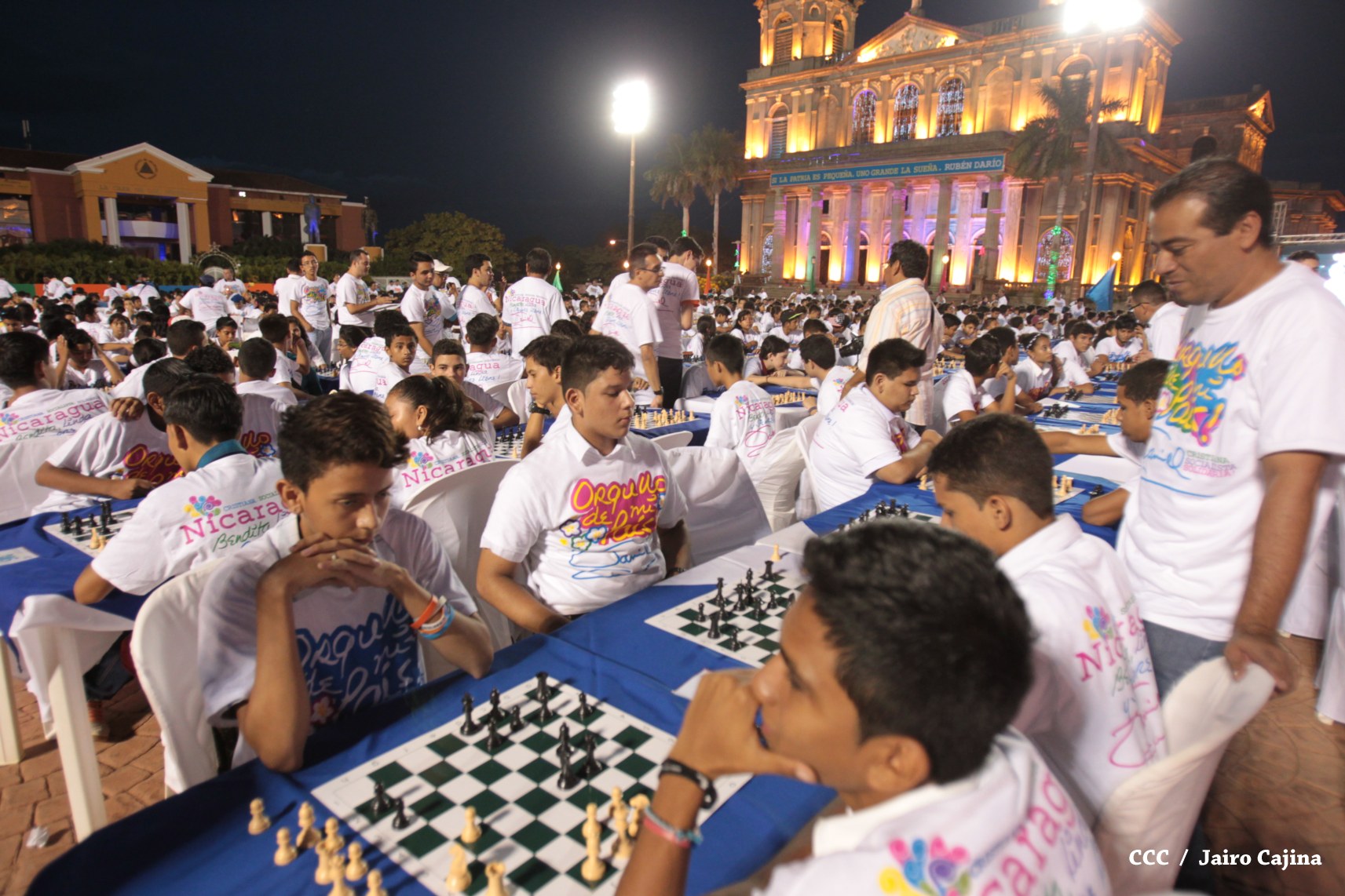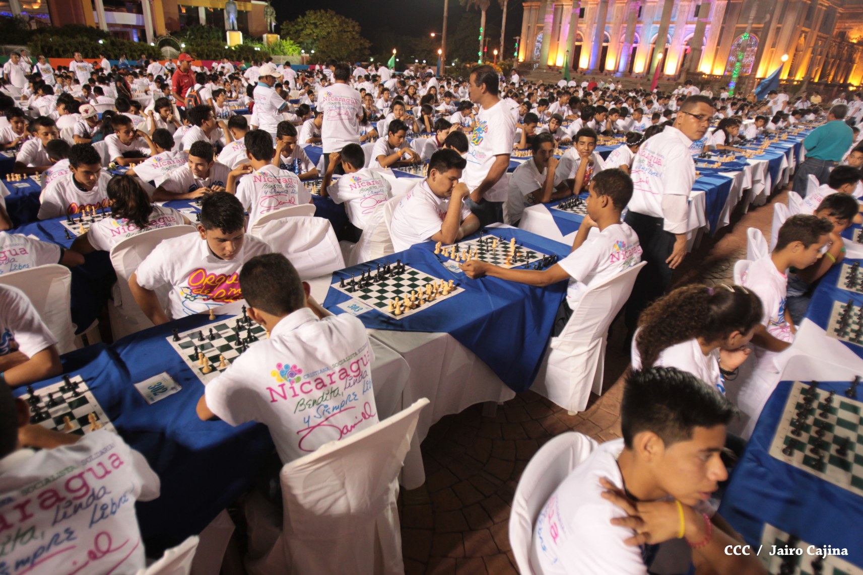 Más de mil jóvenes de distintos municipios del país se han dado cita la tarde de este viernes para conmemorar el 39 aniversario del tránsito a la inmortalidad del Comandante en Jefe de la Revolución, Carlos Fonseca Amador, demostrando sus habilidades y destrezas mentales en el primer Torneo Mega Simultáneo de Ajedrez.