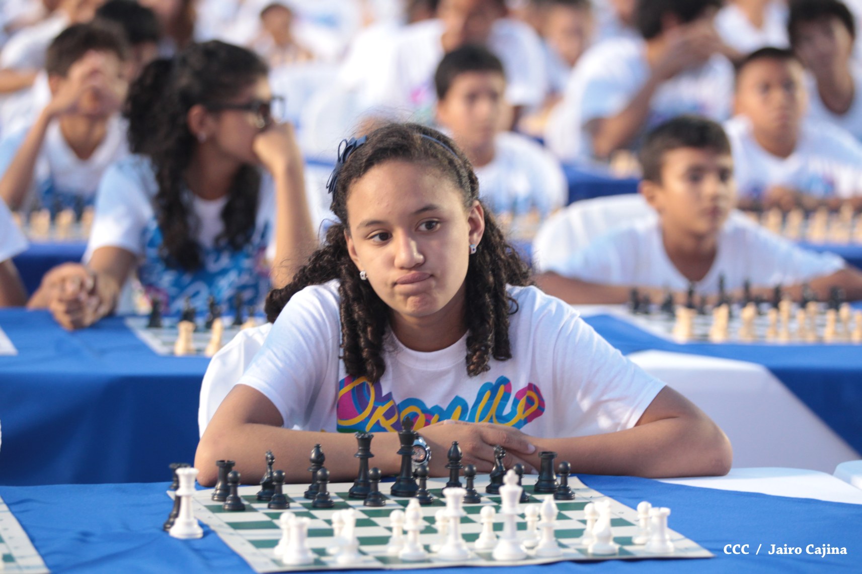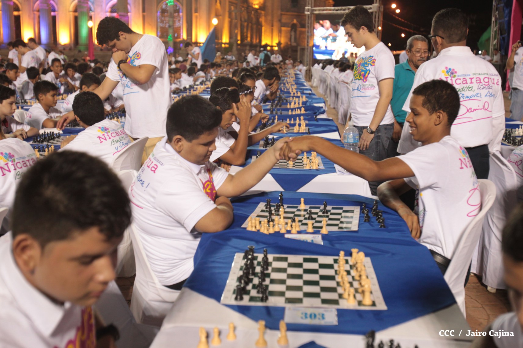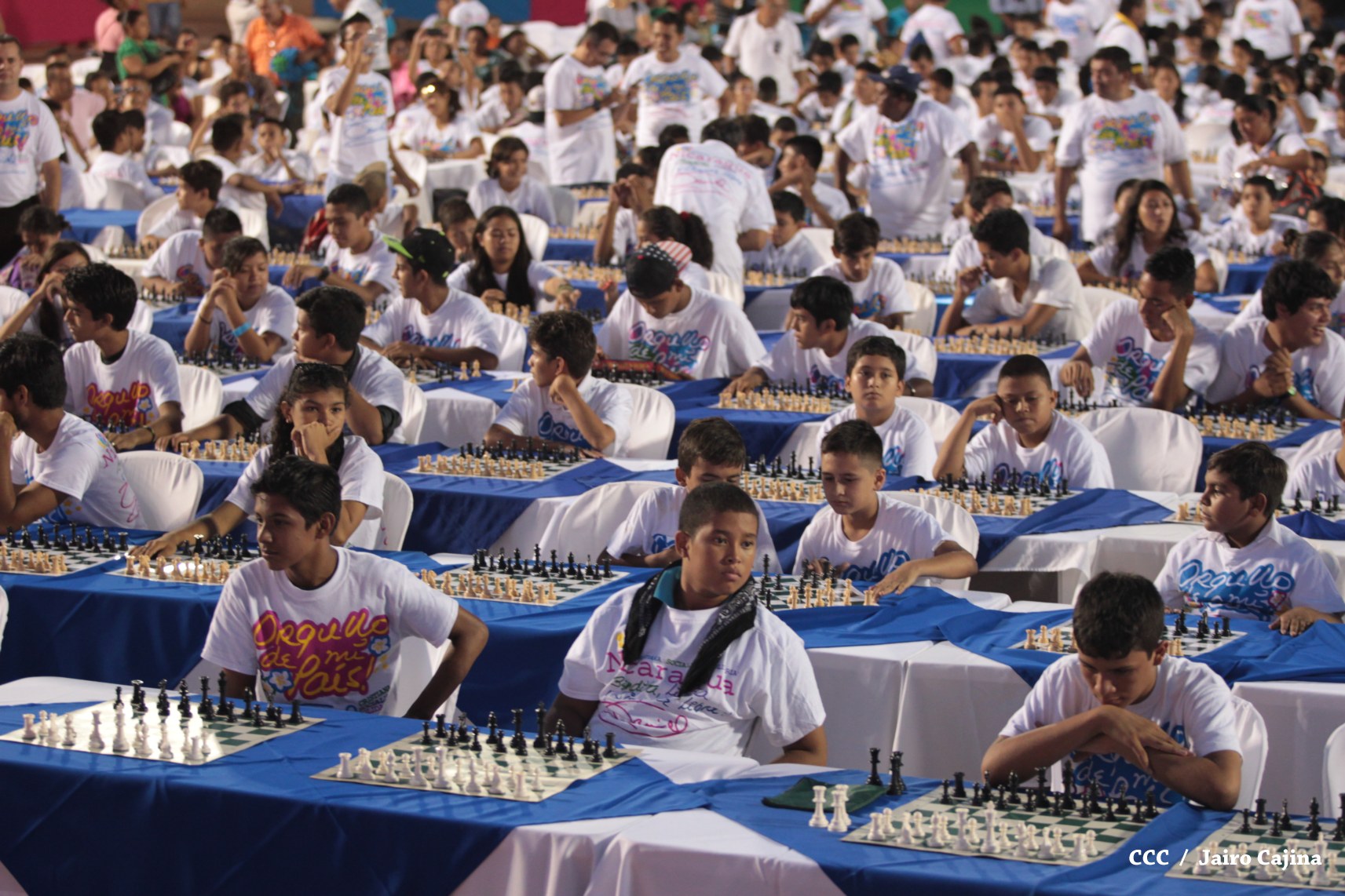 Más de mil jóvenes de distintos municipios del país se han dado cita la tarde de este viernes para conmemorar el 39 aniversario del tránsito a la inmortalidad del Comandante en Jefe de la Revolución, Carlos Fonseca Amador, demostrando sus habilidades y destrezas mentales en el primer Torneo Mega Simultáneo de Ajedrez.