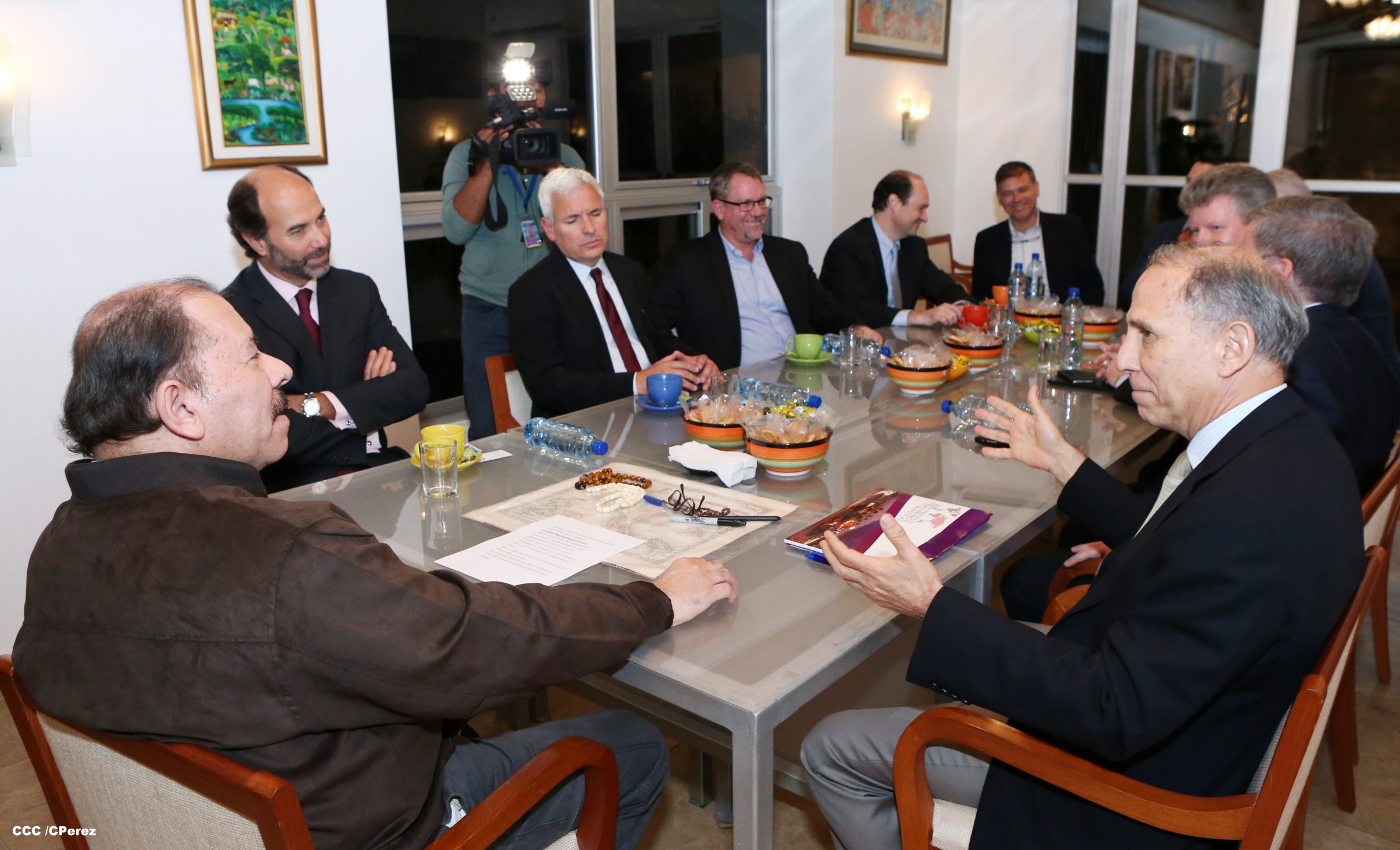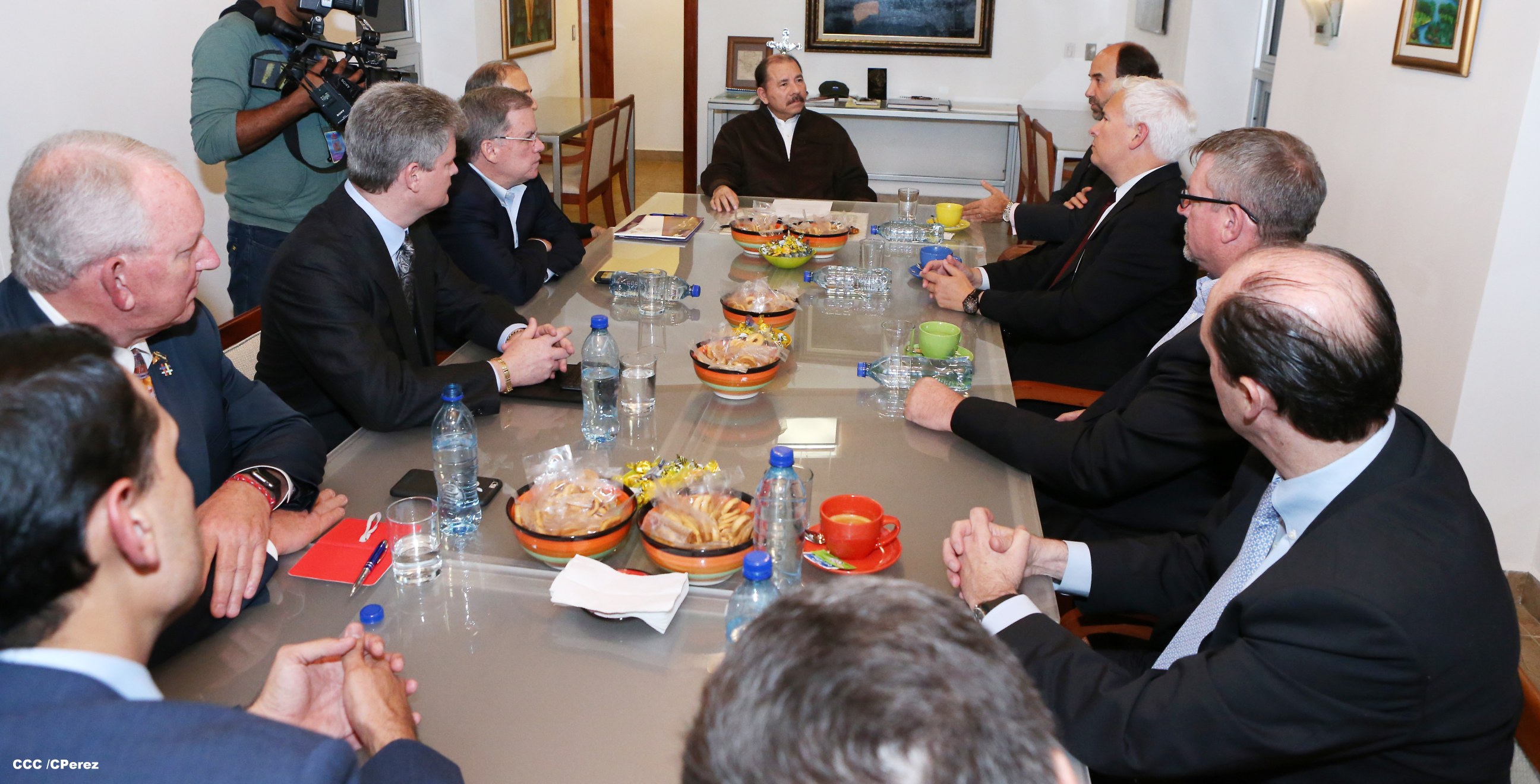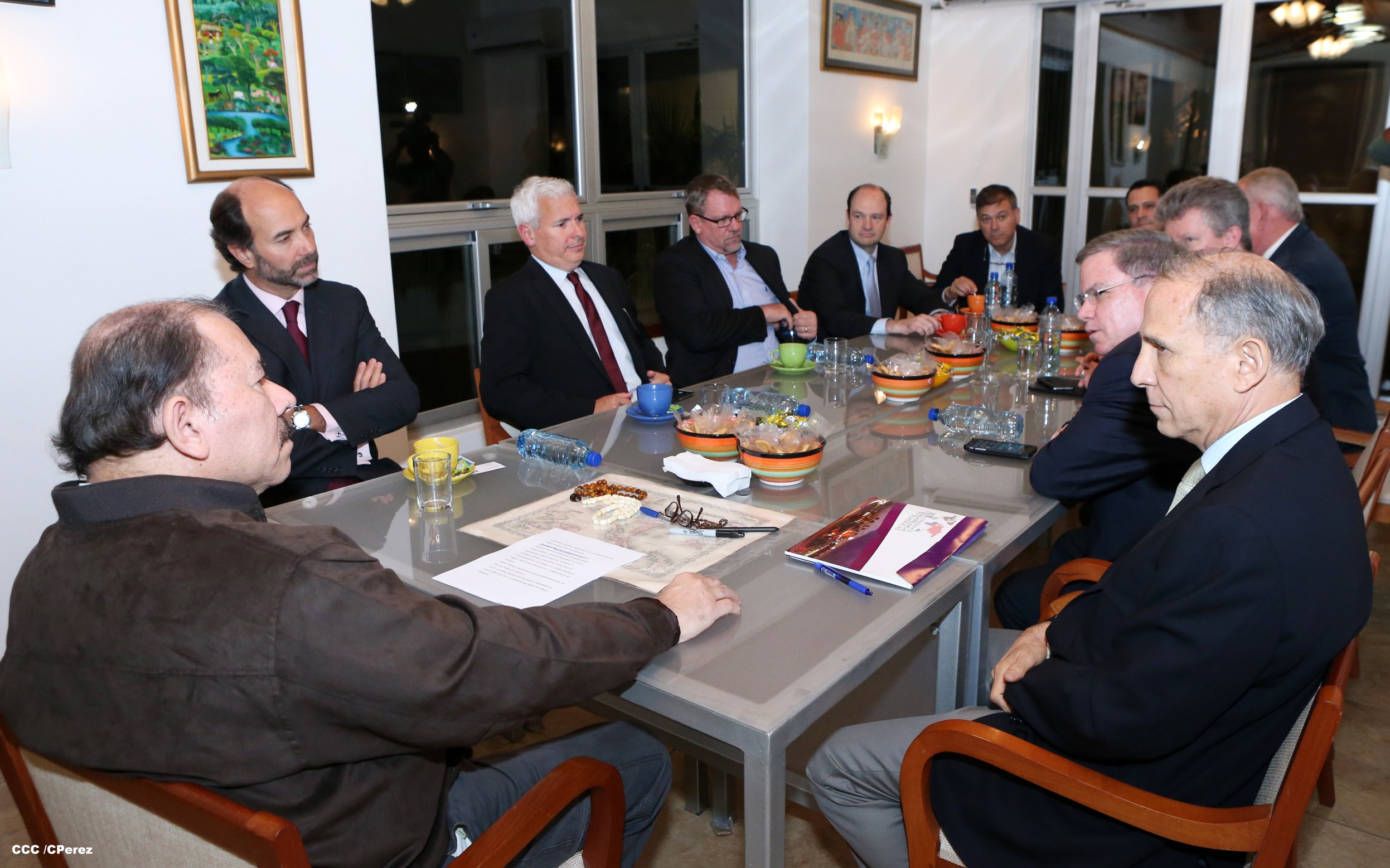 El Presidente de la República, Comandante Daniel Ortega Saavedra, se reunió la noche de este viernes con empresarios aglutinados en la Asociación de Zonas Francas de Las Américas (AZFA) y con varios de los presidentes de parques industriales de las áreas textil, manufactura, call center y agropecuario.