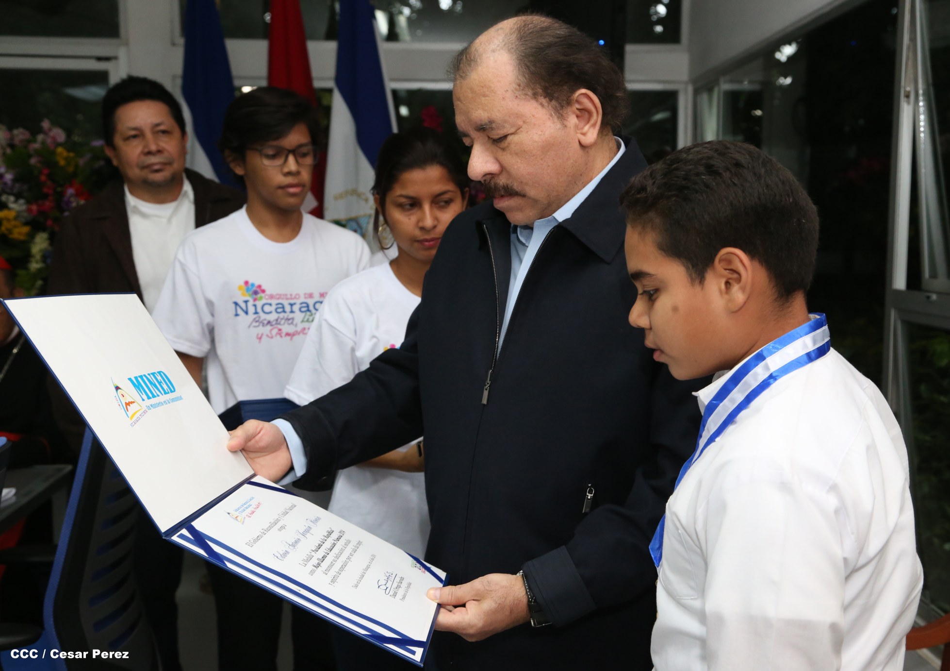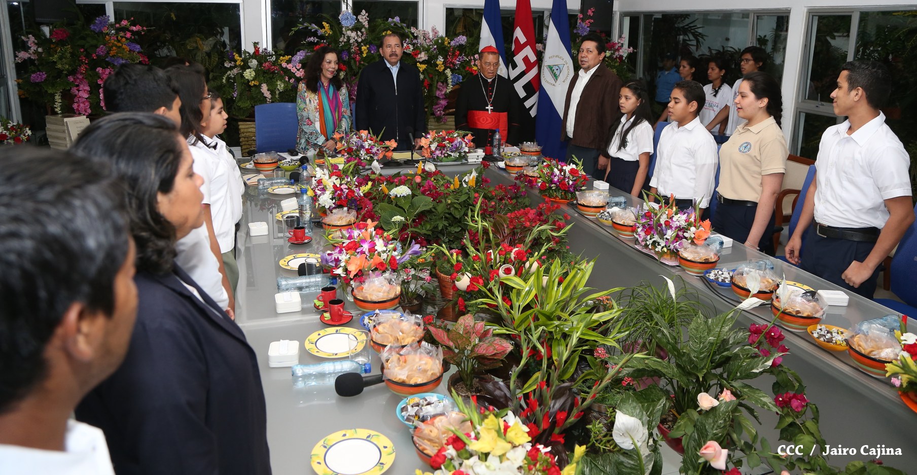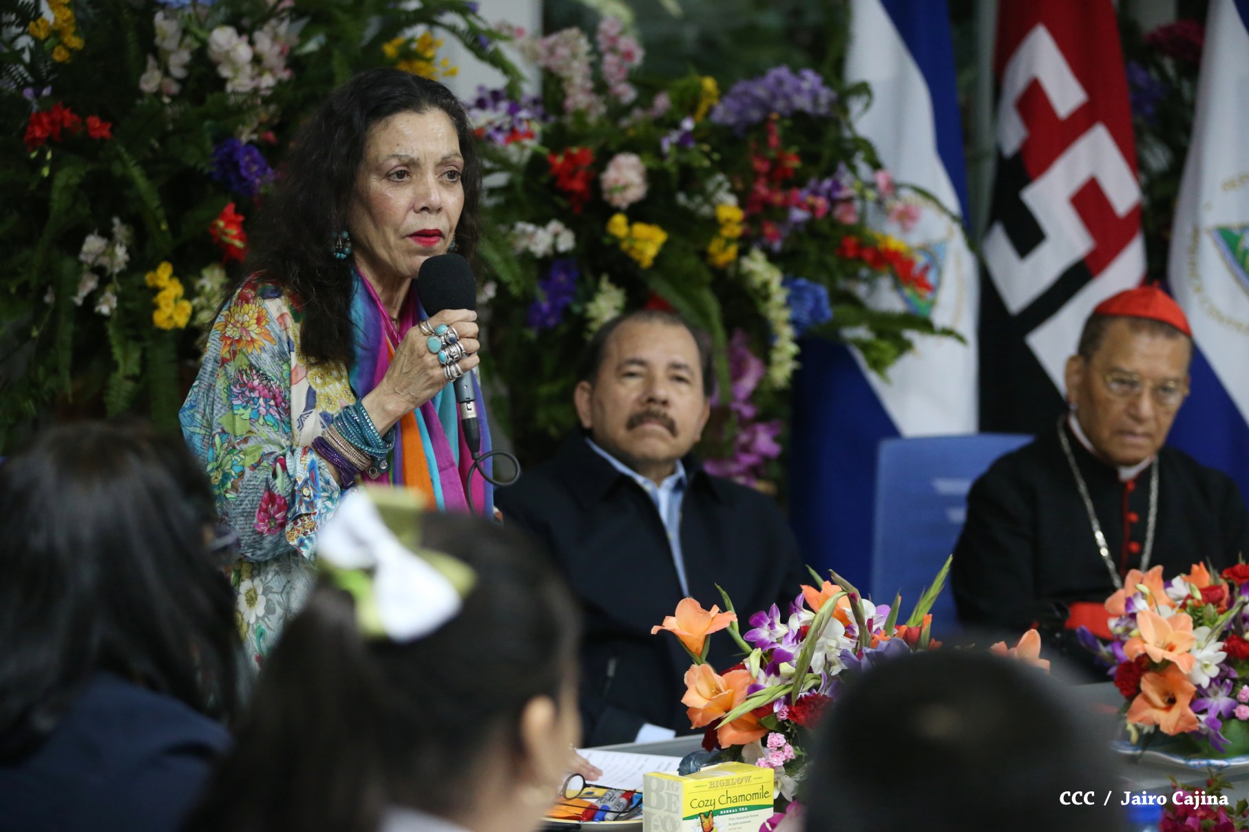 El Presidente de la República, Comandante Daniel Ortega Saavedra y la Coordinadora del Consejo de Comunicación y Ciudadanía, Compañera Rosario Murillo, brindaron un saludo a la comunidad educativa nicaragüense en el marco del inicio del año escolar 2016, que se inauguró la mañana de este lunes 8 de febrero.