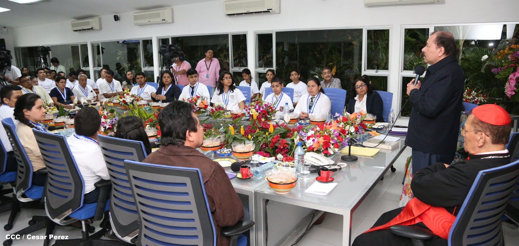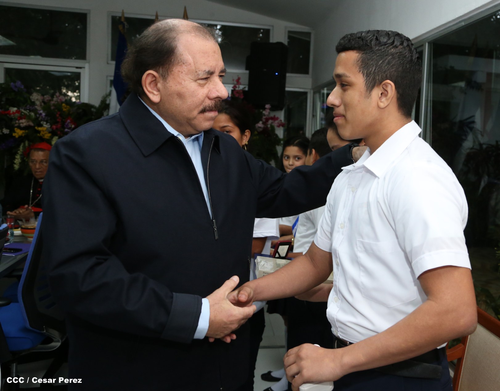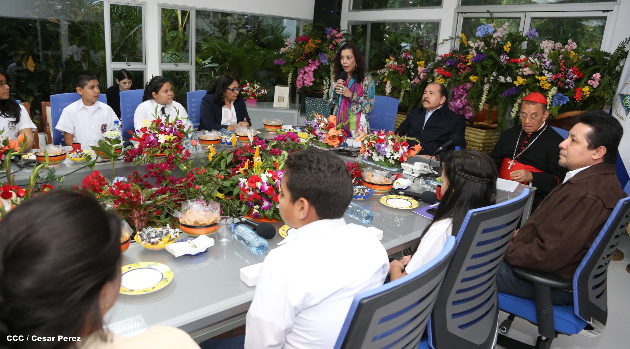 El Presidente de la República, Comandante Daniel Ortega Saavedra y la Coordinadora del Consejo de Comunicación y Ciudadanía, Compañera Rosario Murillo, brindaron un saludo a la comunidad educativa nicaragüense en el marco del inicio del año escolar 2016, que se inauguró la mañana de este lunes 8 de febrero.