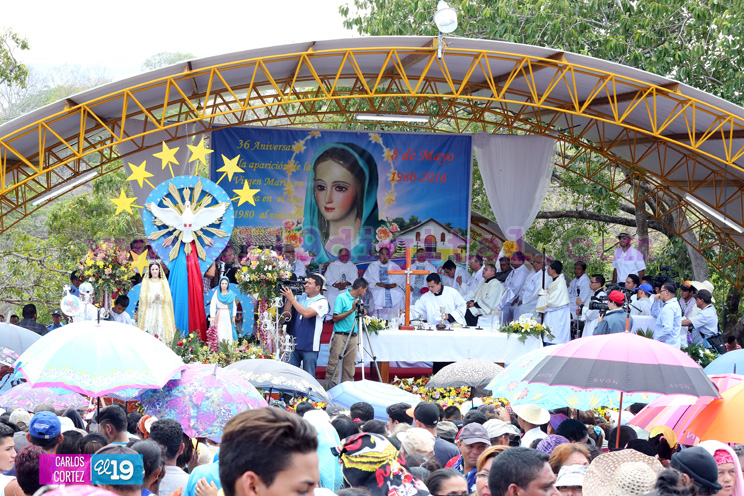 Miles de fieles católicos de todo el país peregrinaron este domingo al Santuario Nacional de la Virgen de Cuapa en Chontales, para conmemorar el 36 aniversario de sus apariciones.