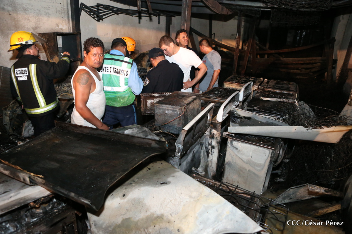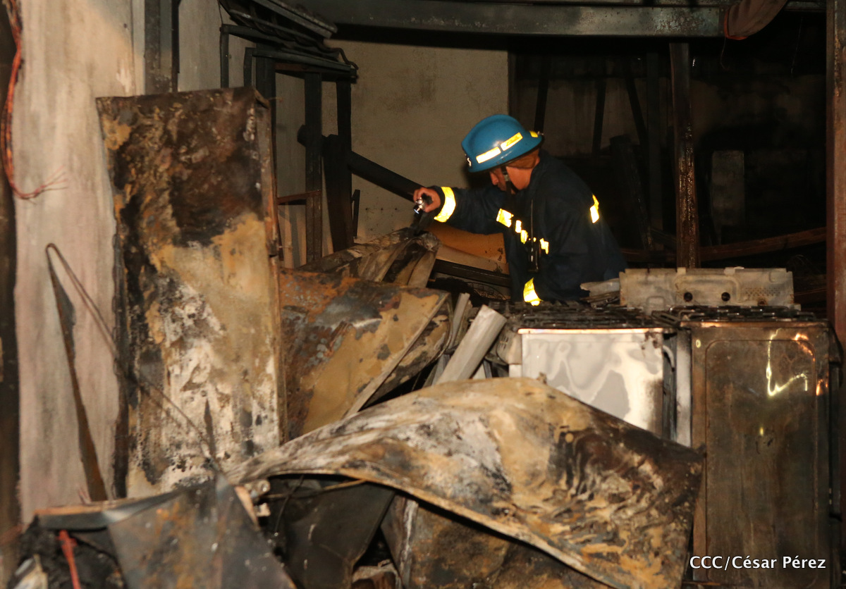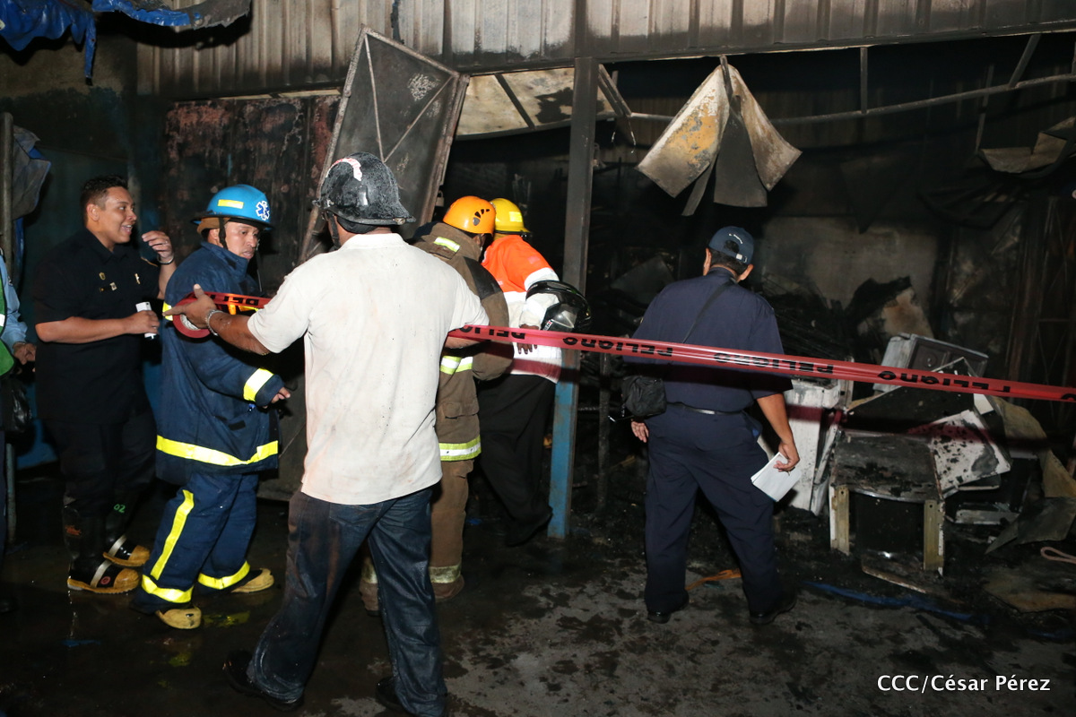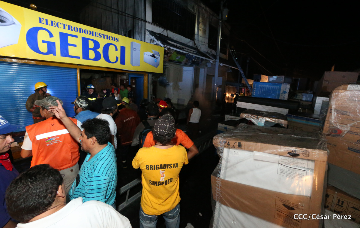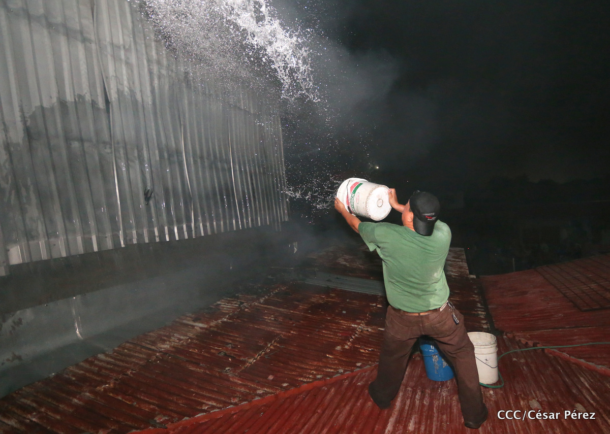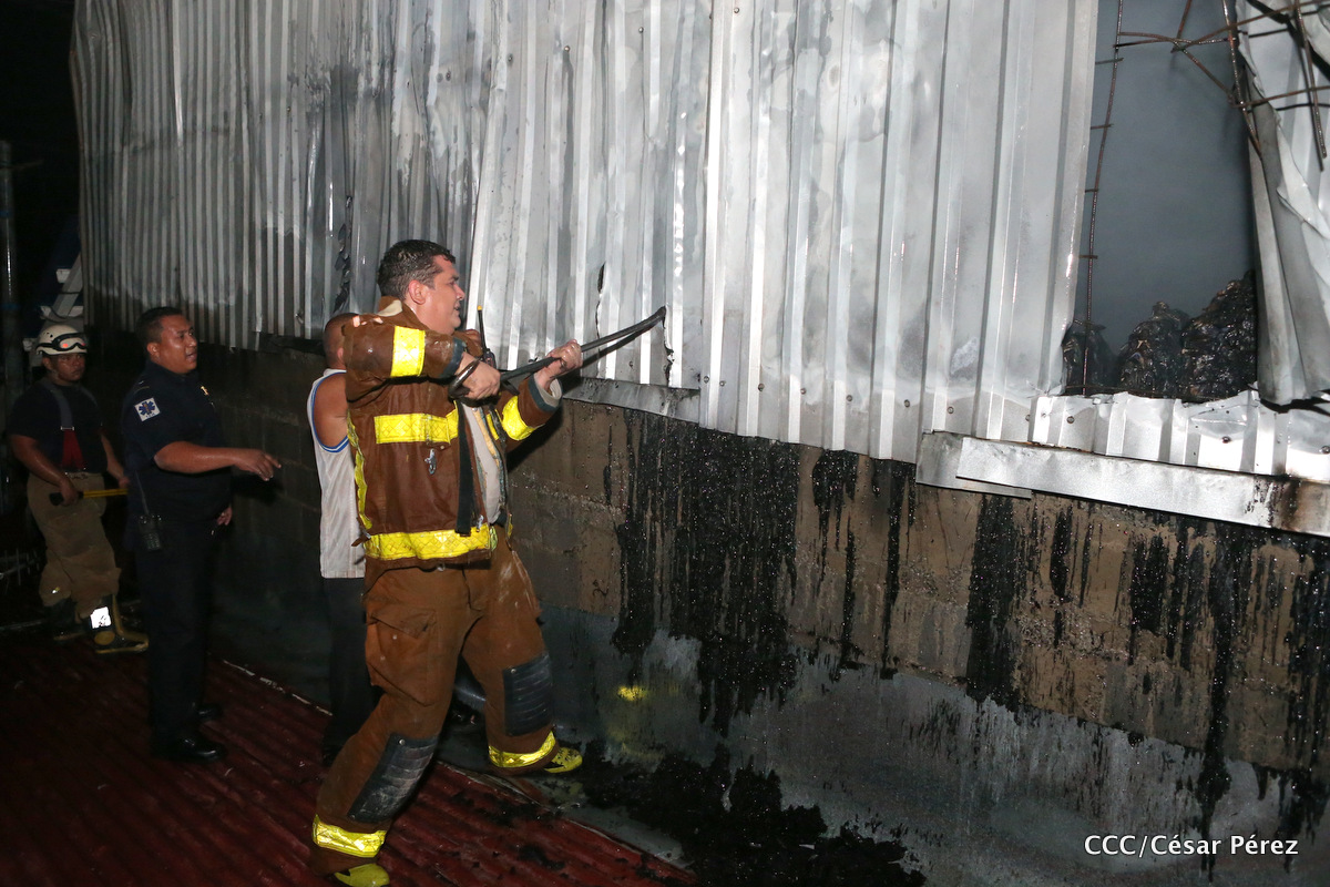 Imágenes de las labores de escombreo realizadas por los bomberos tras el fuerte incendio que afectó la noche del 15 de mayo el Mercado Oriental.