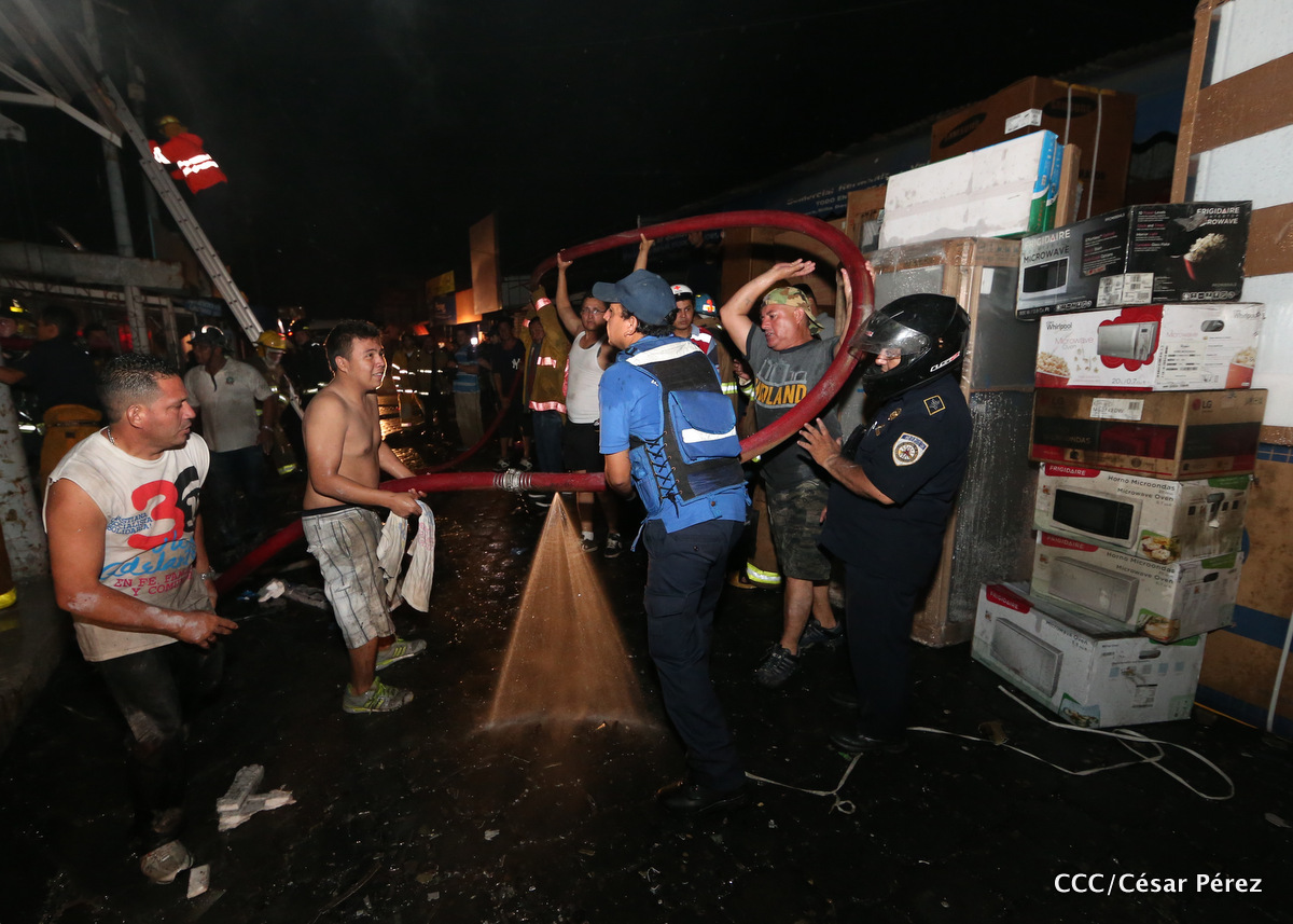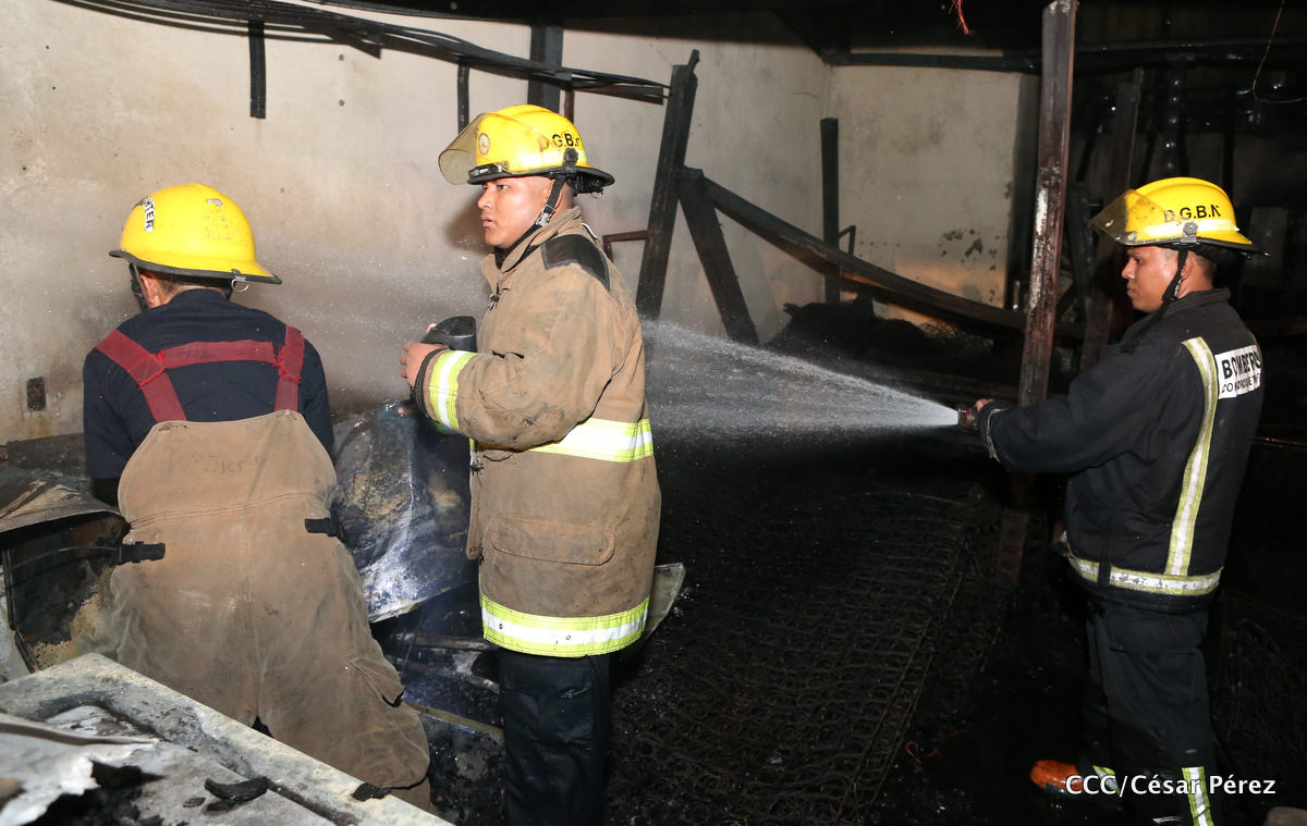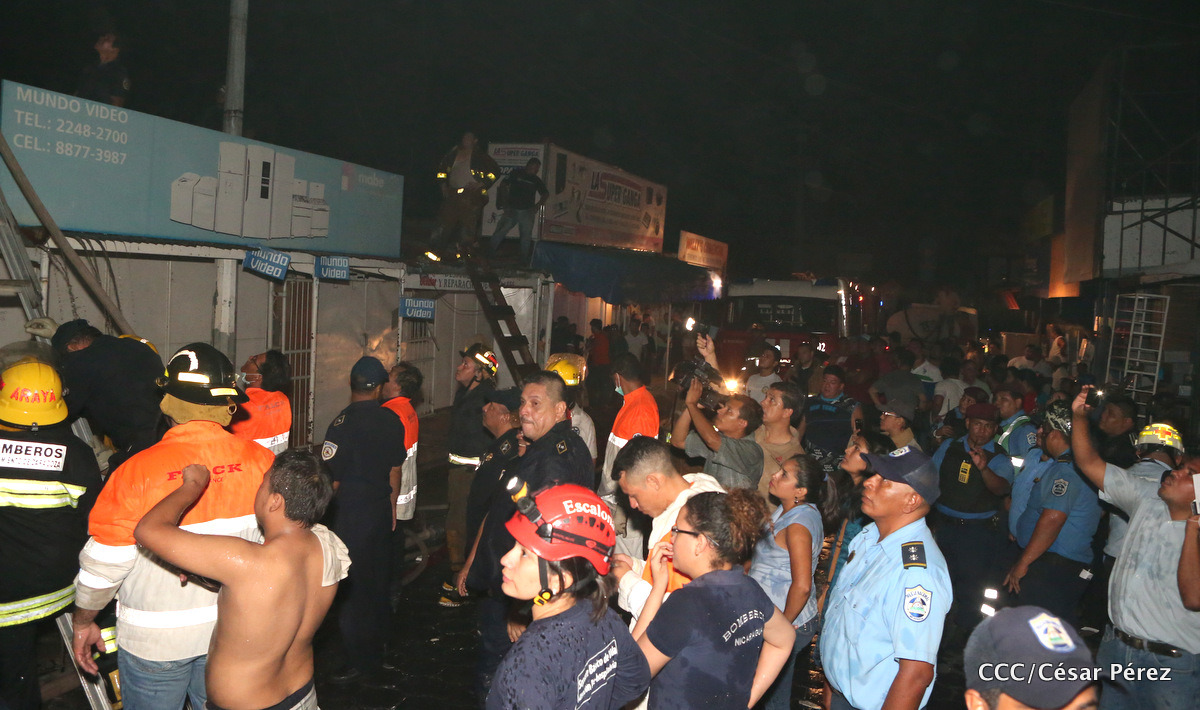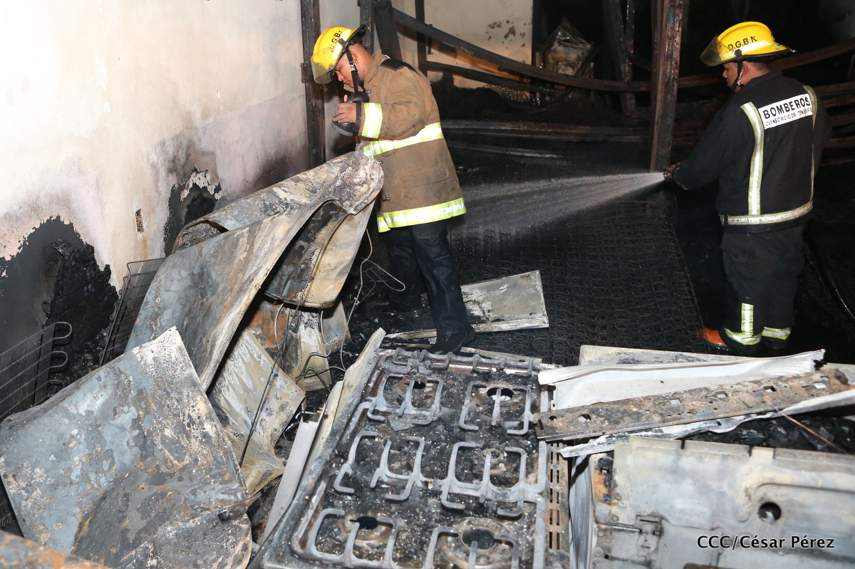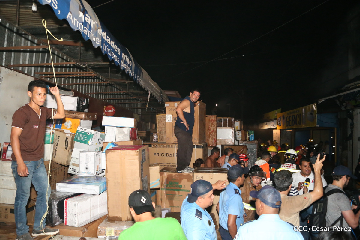 Imágenes de las labores de escombreo realizadas por los bomberos tras el fuerte incendio que afectó la noche del 15 de mayo el Mercado Oriental.