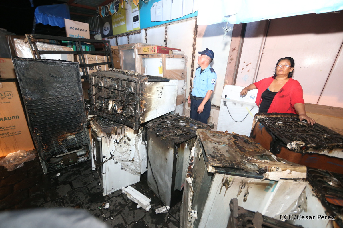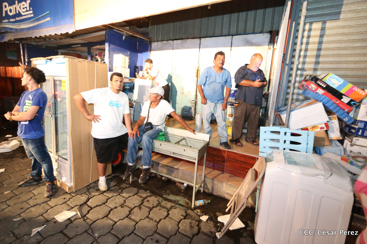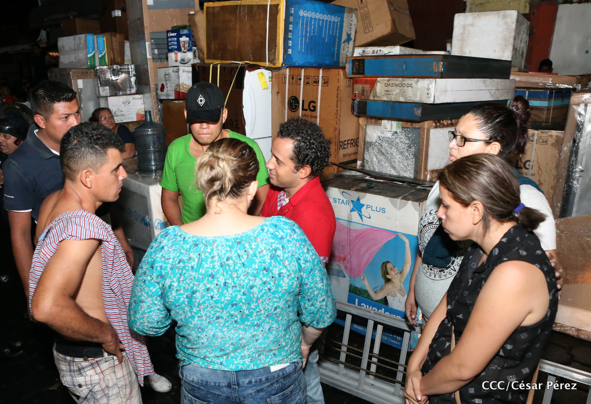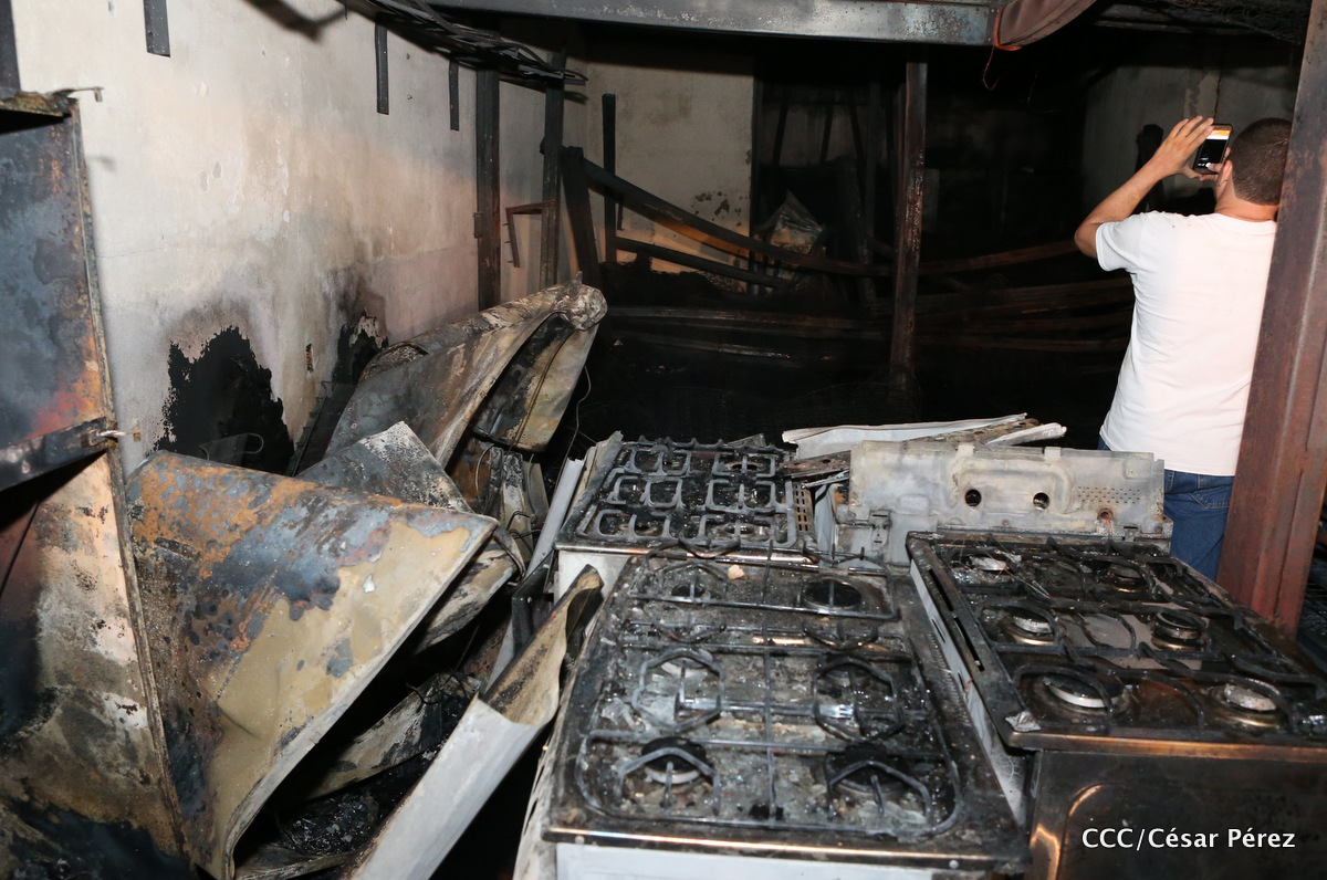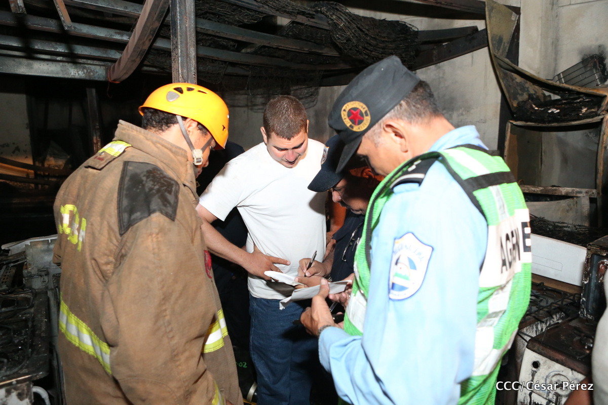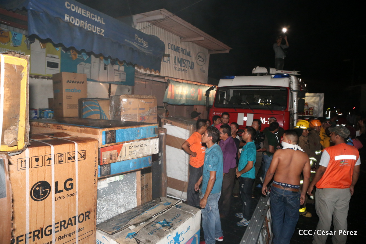 Imágenes de las labores de escombreo realizadas por los bomberos tras el fuerte incendio que afectó la noche del 15 de mayo el Mercado Oriental.