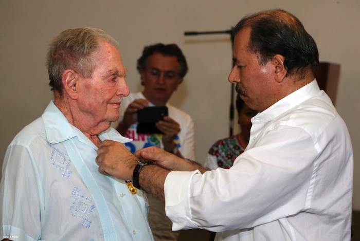 El Presidente de la República, Comandante Daniel Ortega Saavedra, entregó la Orden Independencia Cultural Rubén Darío al ciudadano de origen griego Aris Agnano.