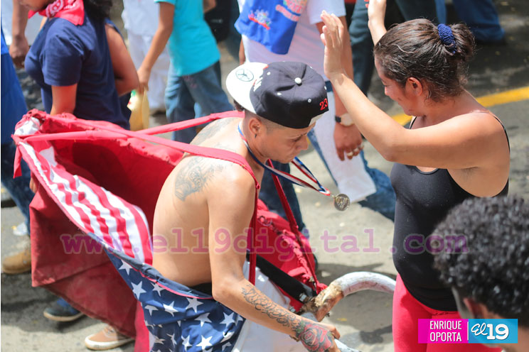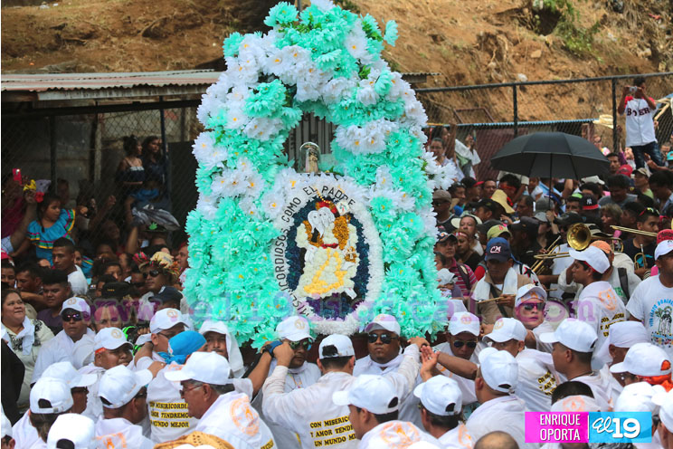 Miles acompañaron a Santo Domingo esta tarde durante su recorrido por Managua, desde su ingreso a las vías capitalinas en el sector de La Morita, hasta el Gancho de Camino, en el Mercado Oriental, donde la imagen del patrono de Managua es transportada en su barco hasta su morada en la capital — la iglesia que lleva el nombre del santo —durante 10 días.