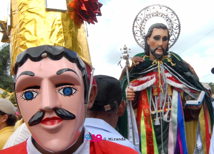 Los bailes del Toro Huaco, El Gigante y El Güegüense sirvieron de antesala al maravilloso tope de los santos patronos San Marcos, San Sebastián, San Antonio y Santiago Apóstol frente al atrio de la Iglesia Nuestra Señora de Dolores, en Carazo.