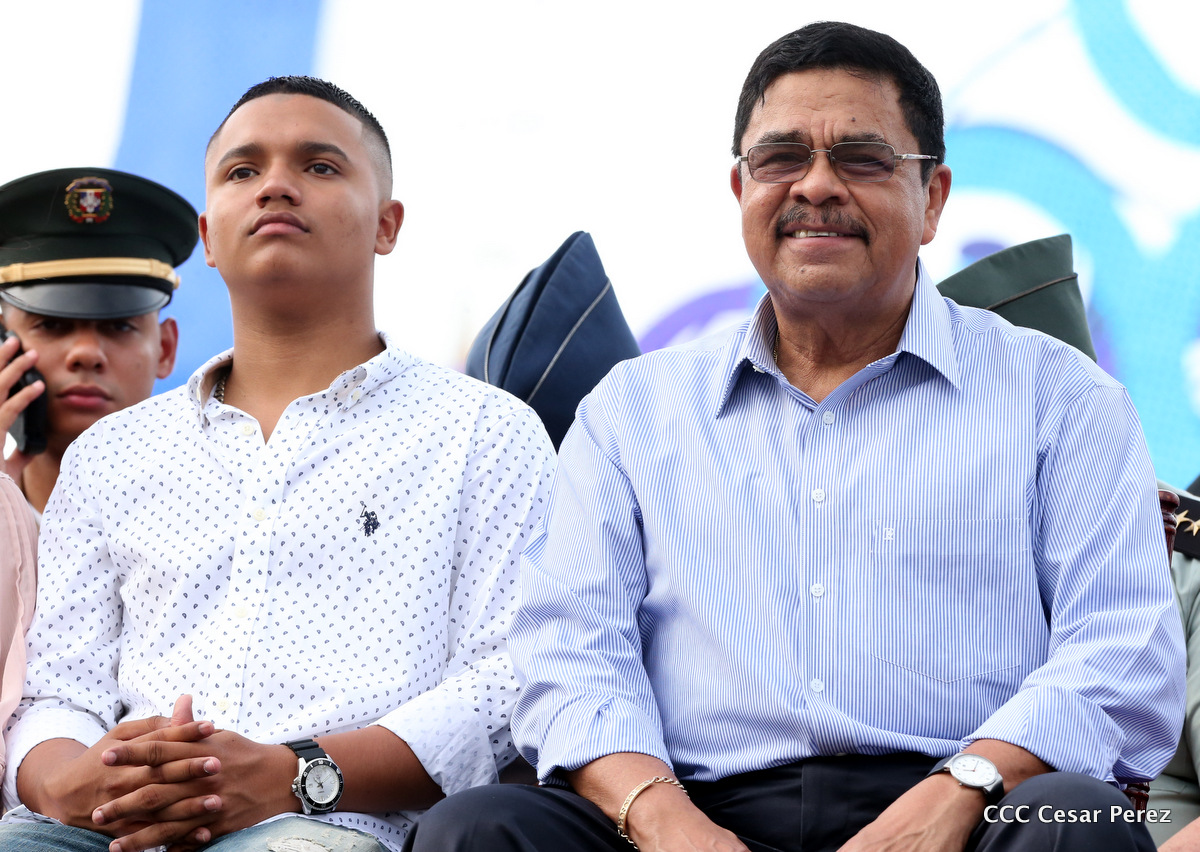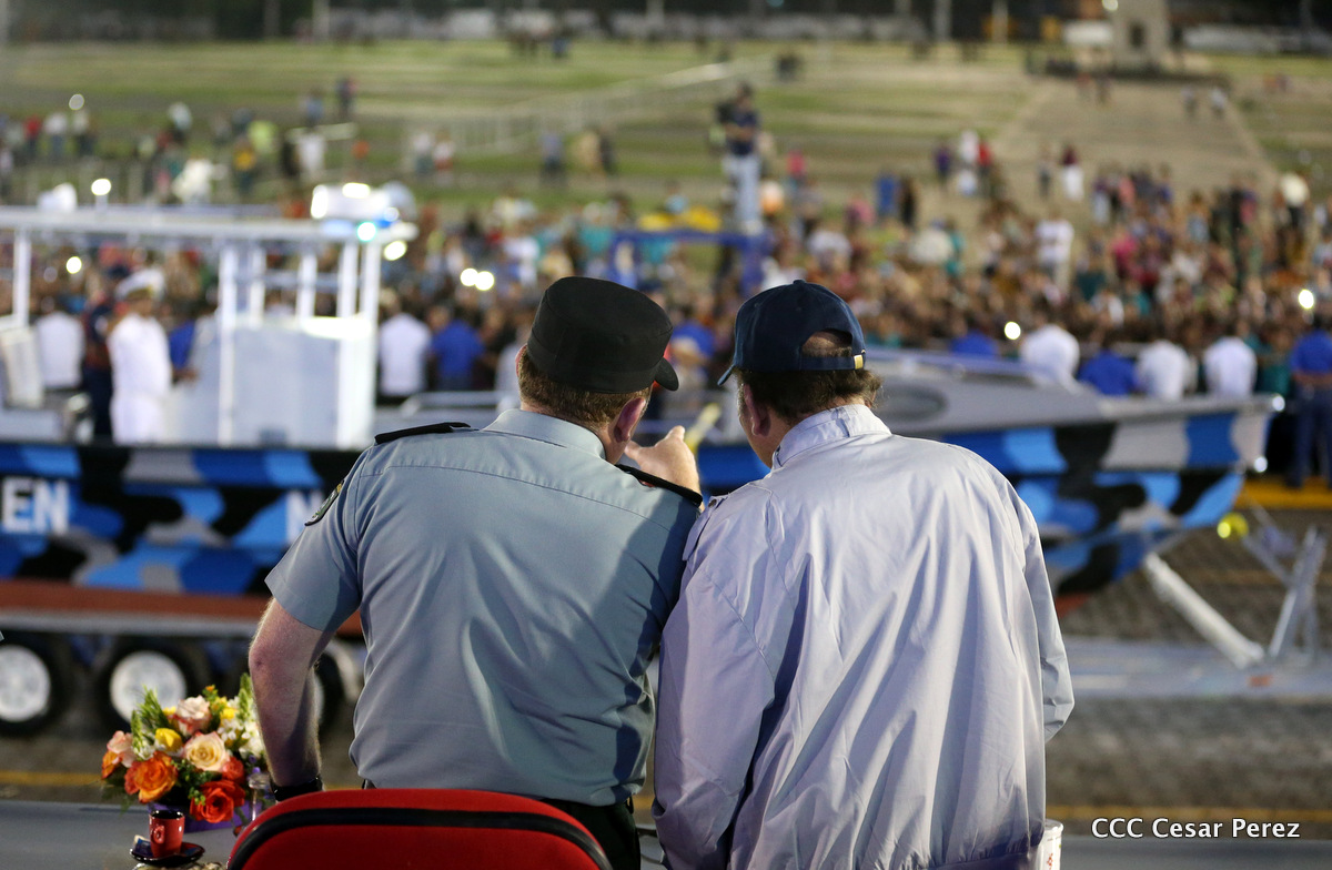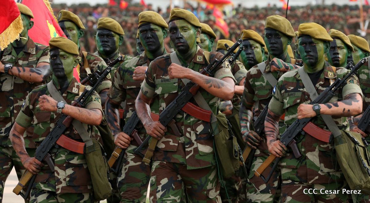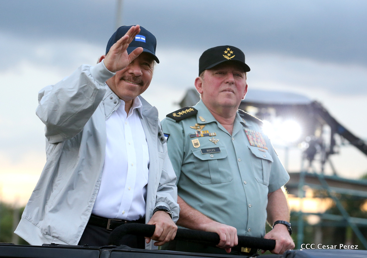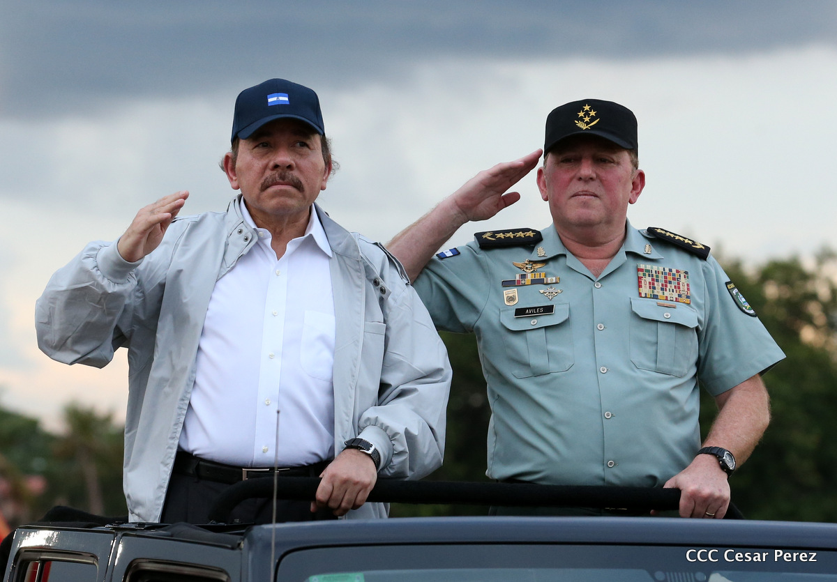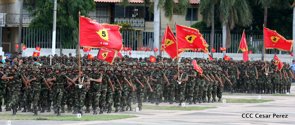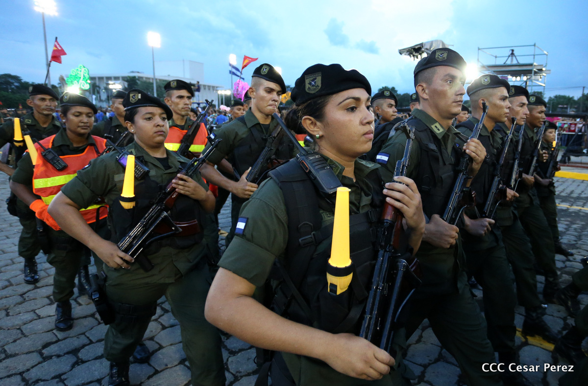 El Presidente de Nicaragua, Comandante Daniel Ortega Saavedra, y la Coordinadora del Consejo de Comunicación y Ciudadanía, Compañera Rosario Murillo, encabezaron este sábado el desfile militar en ocasión del 37 aniversario de la fundación de las fuerzas armadas de Nicaragua.