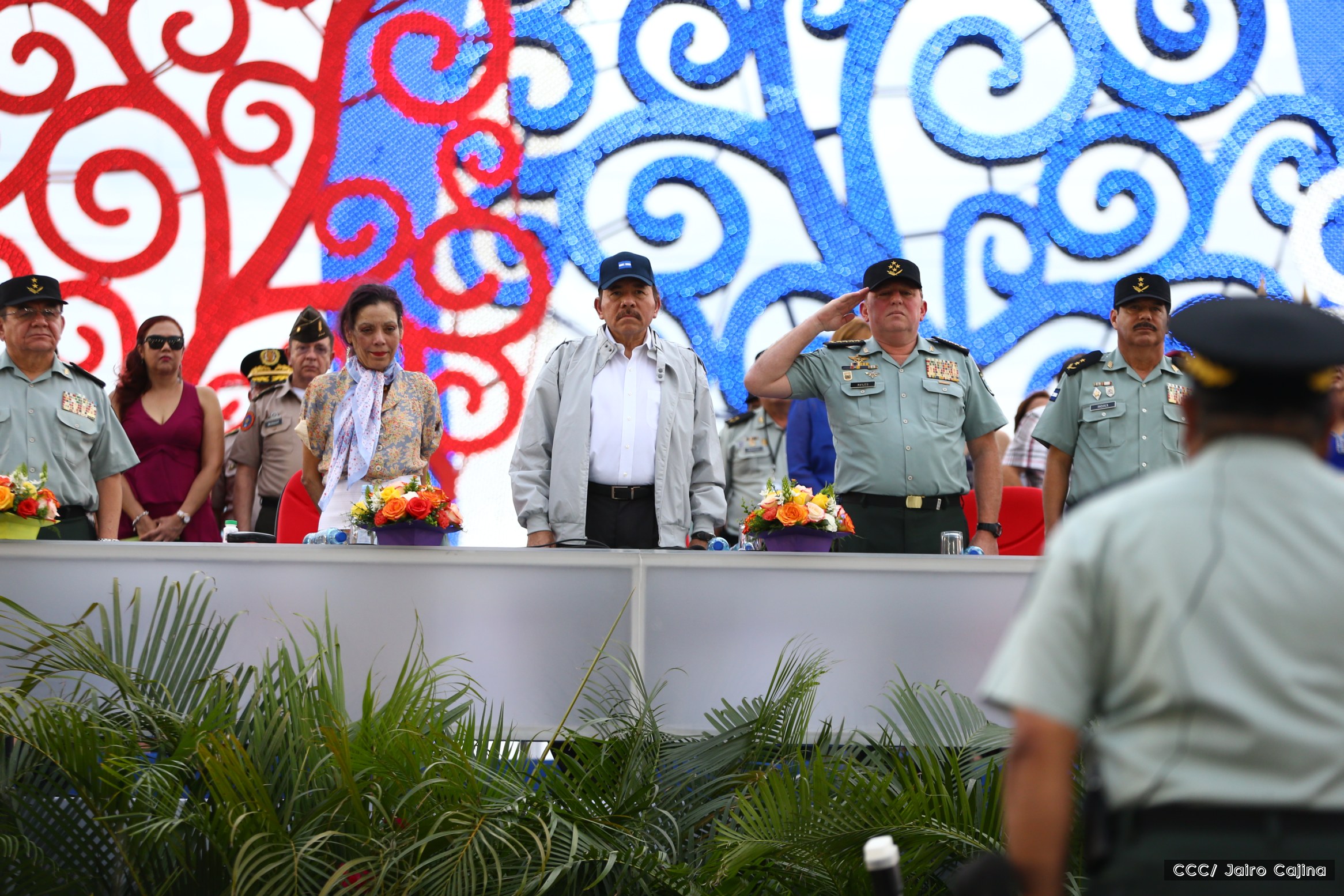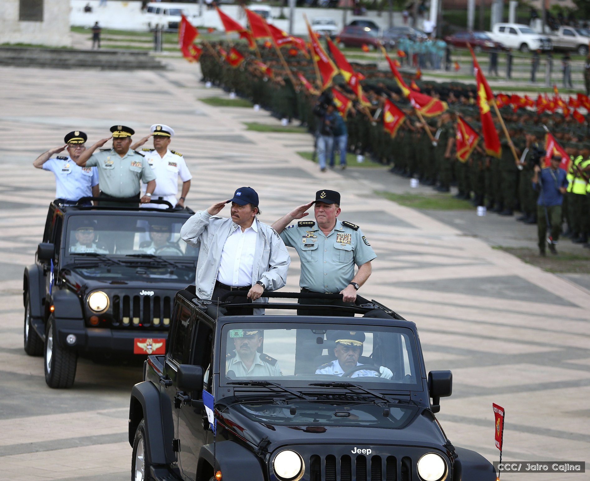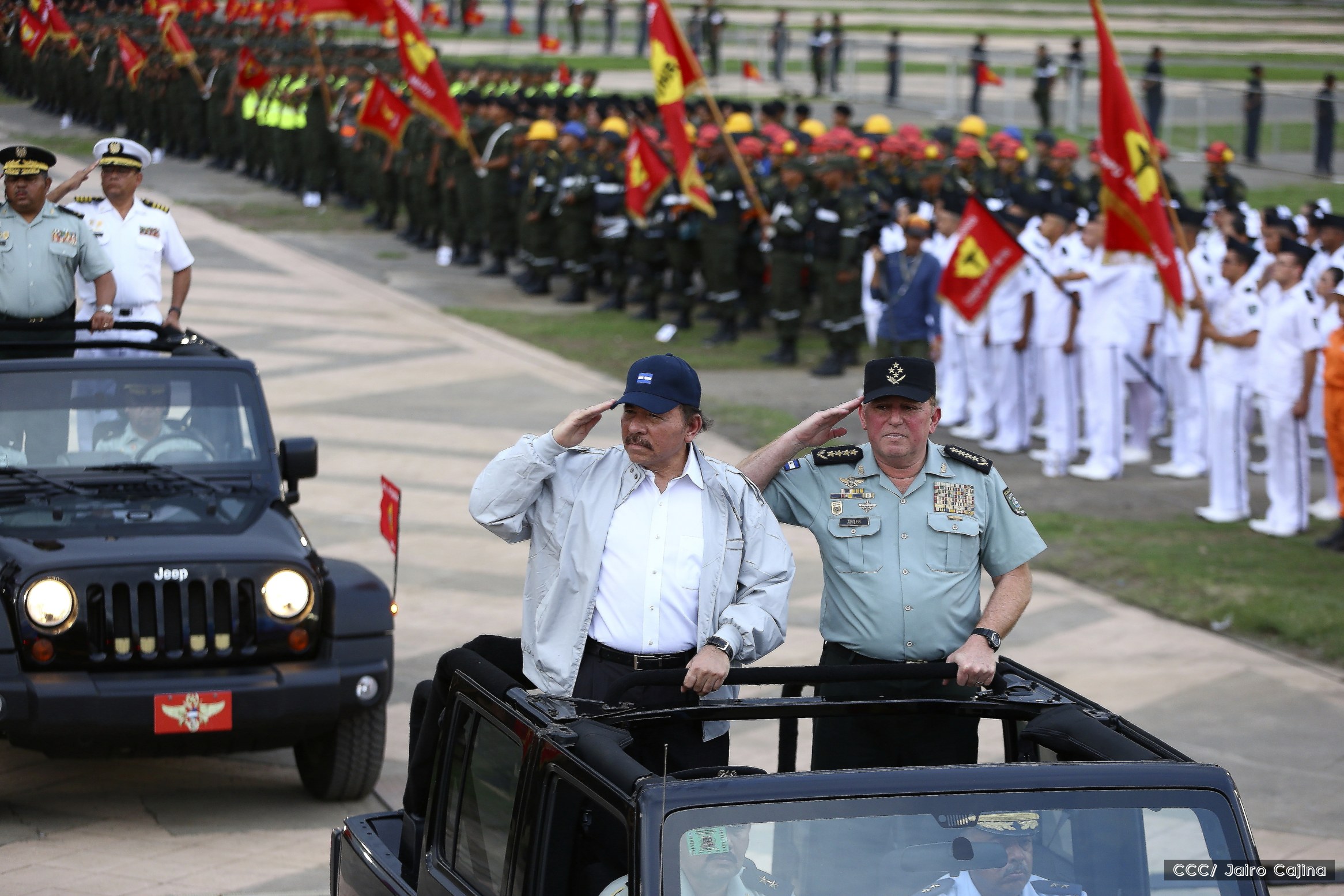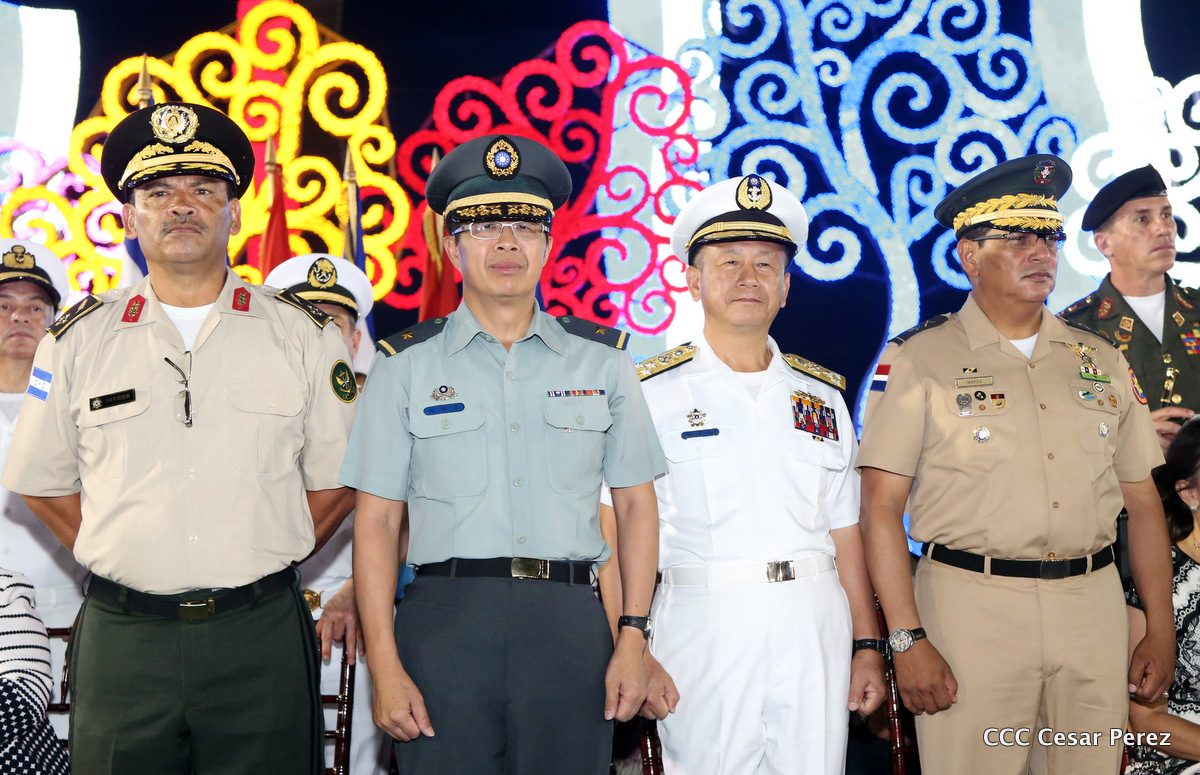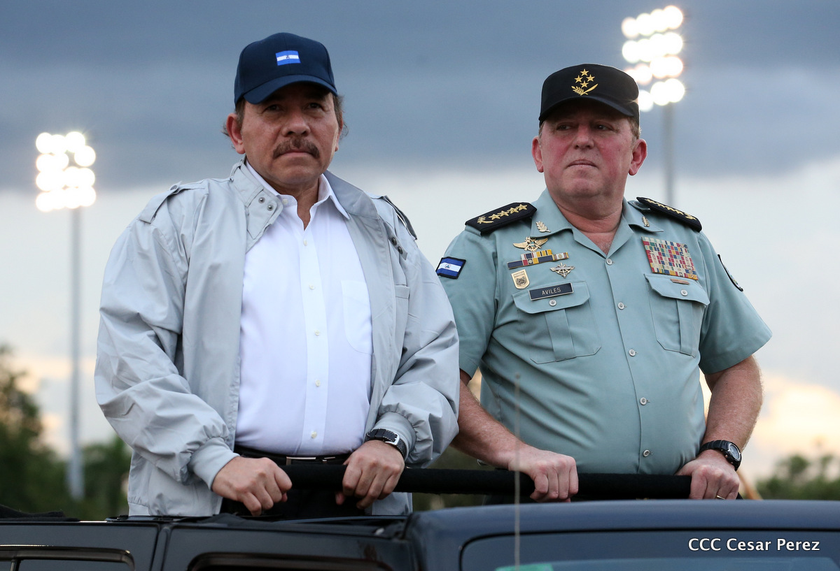 El Presidente de Nicaragua, Comandante Daniel Ortega Saavedra, y la Coordinadora del Consejo de Comunicación y Ciudadanía, Compañera Rosario Murillo, encabezaron este sábado el desfile militar en ocasión del 37 aniversario de la fundación de las fuerzas armadas de Nicaragua.