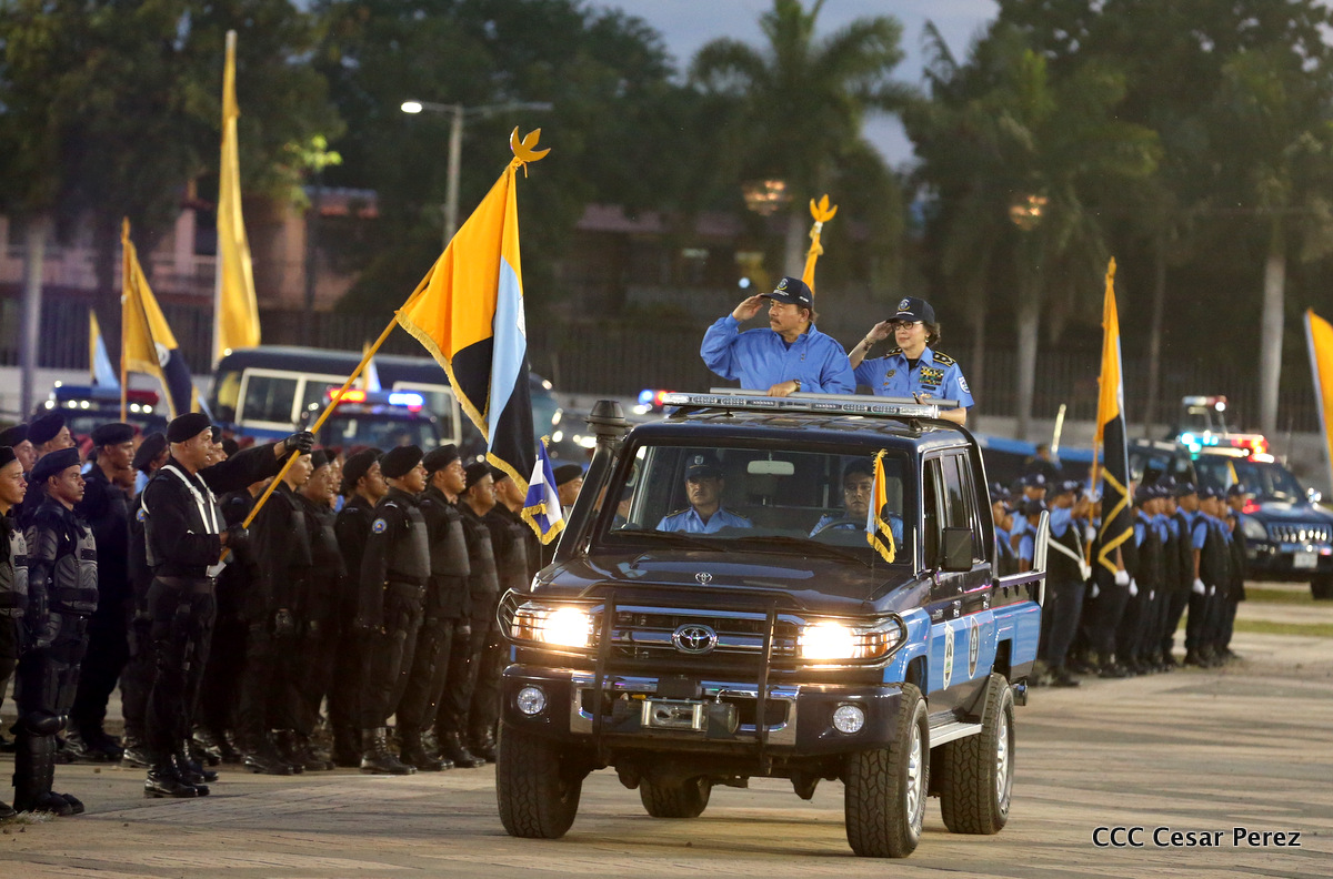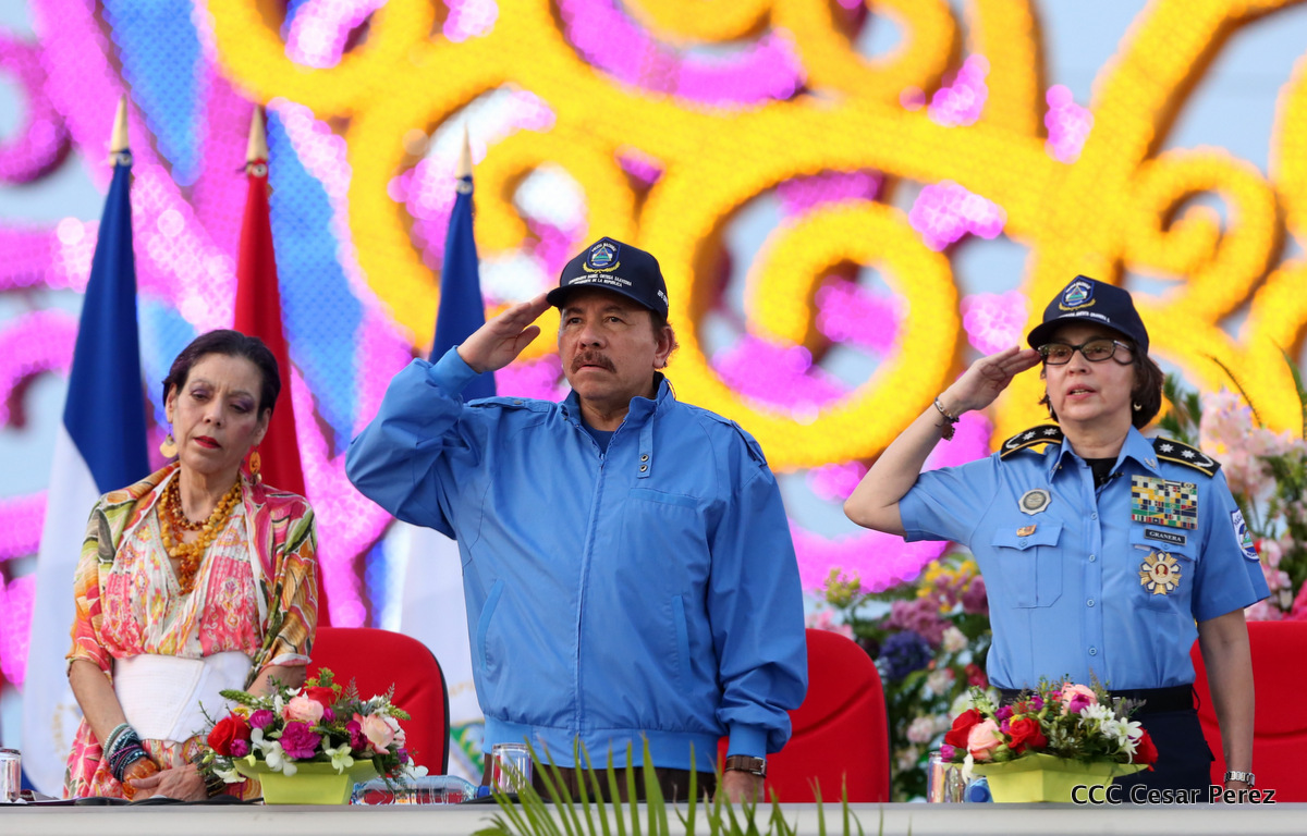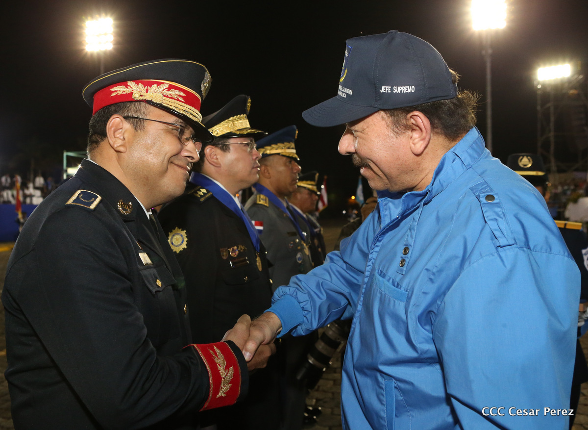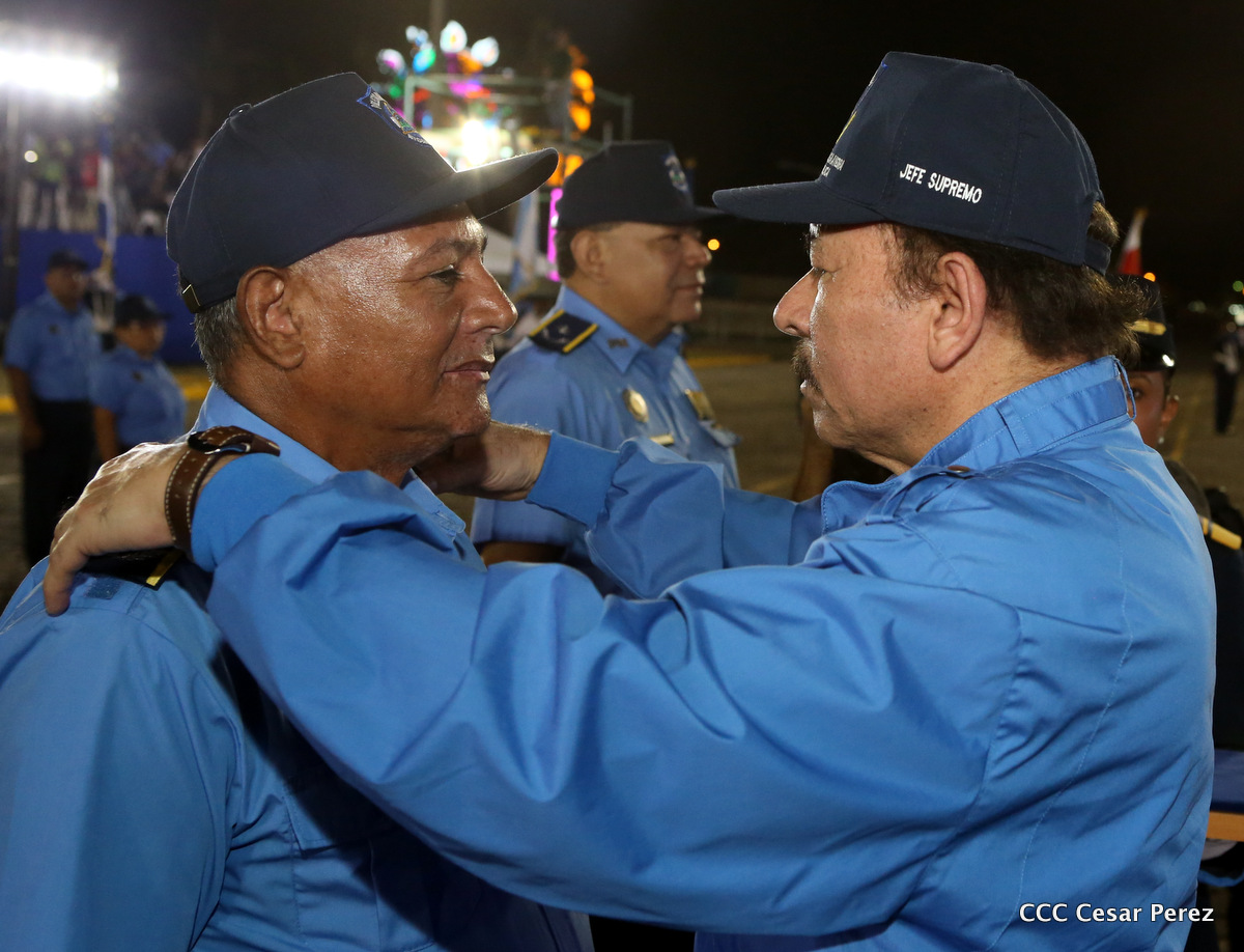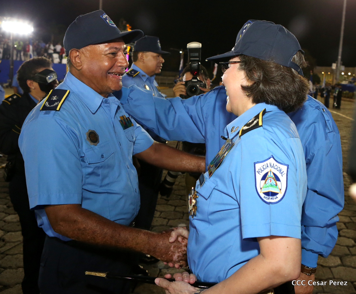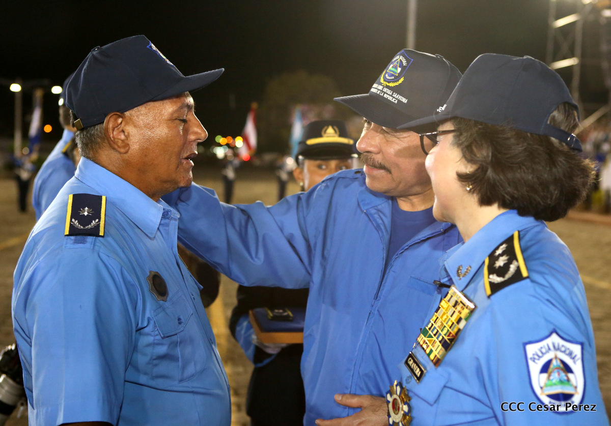 El Presidente de la República, Comandante Daniel Ortega, y la Compañera Rosario Murillo, Coordinadora del Consejo de Comunicación y Ciudadanía, presidieron el acto del 37 aniversario de la Policía Nacional.