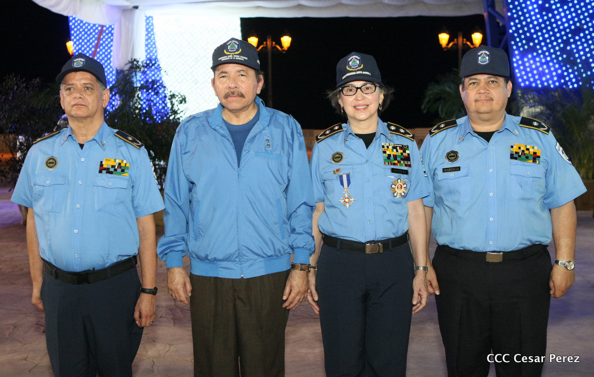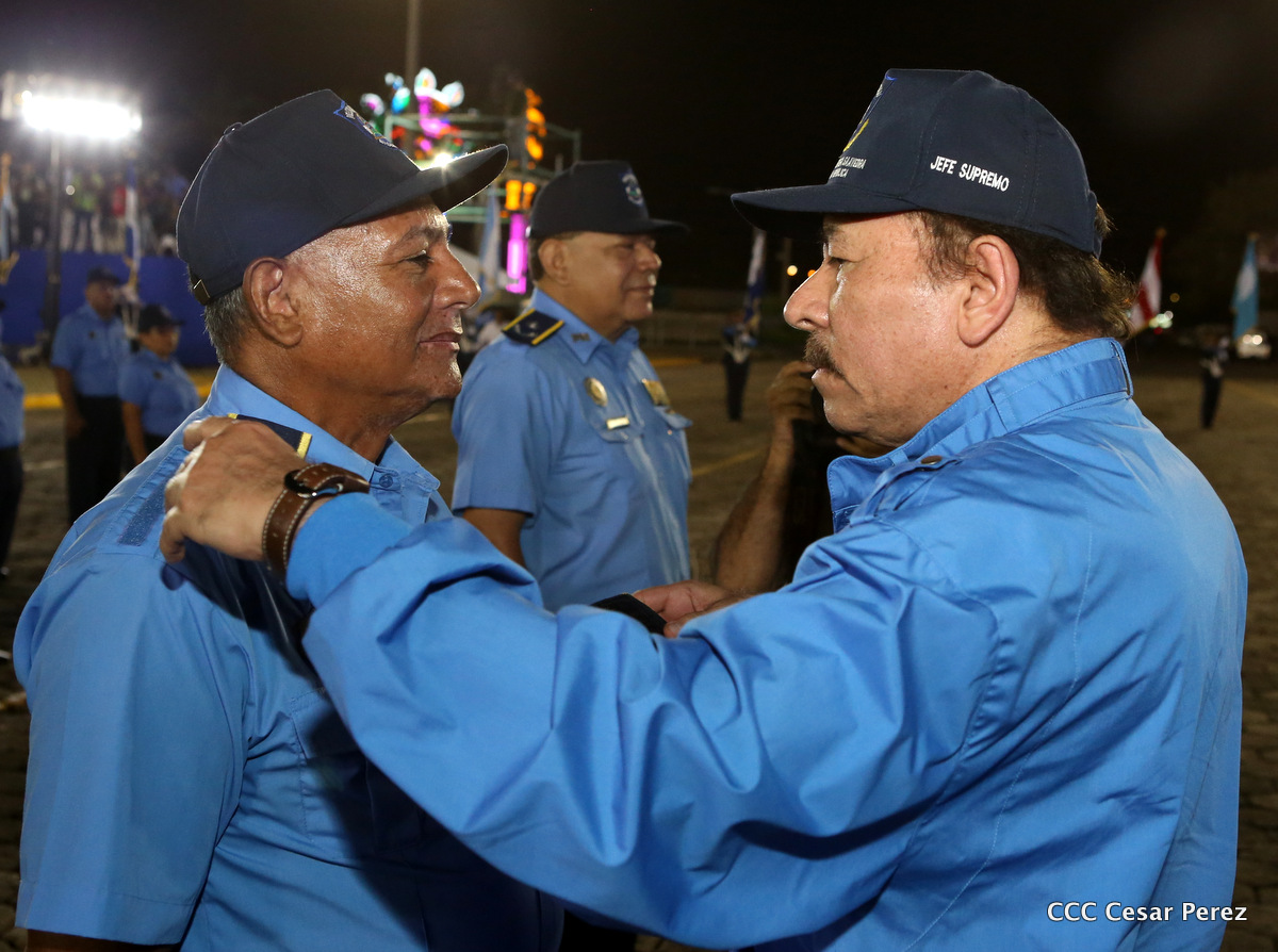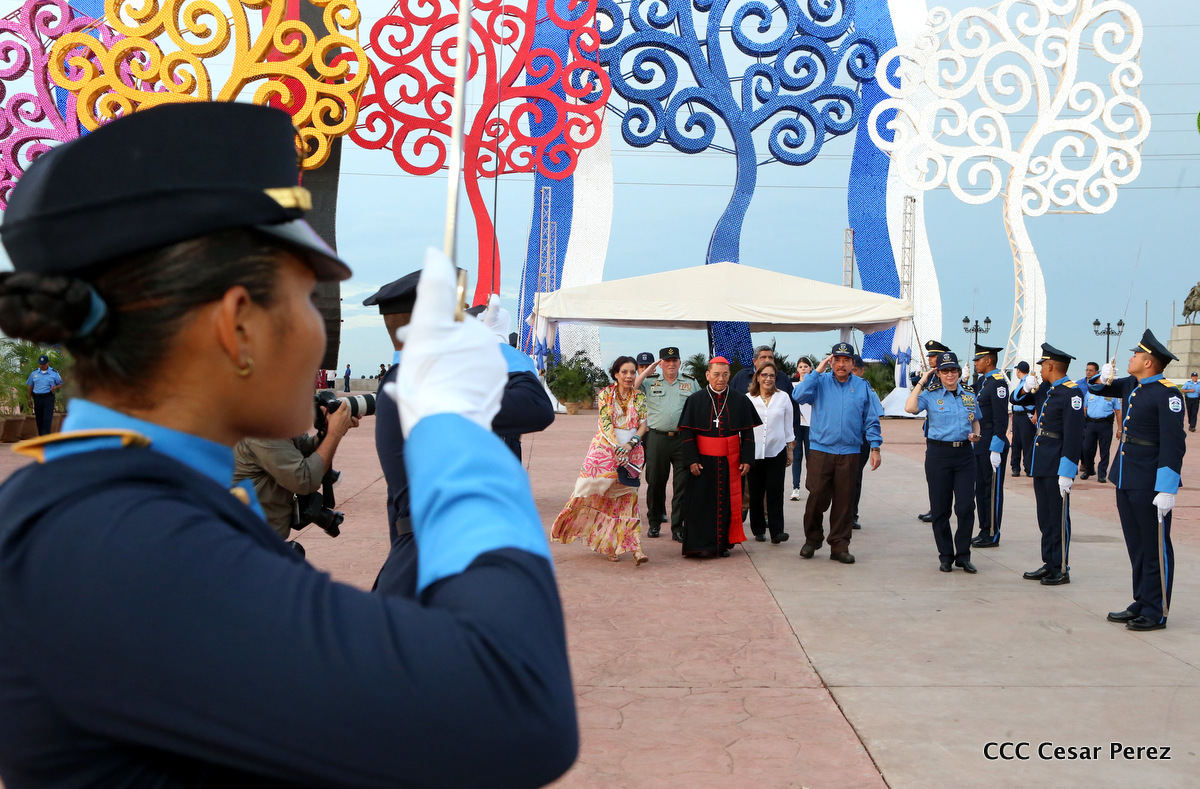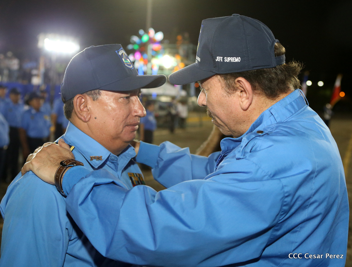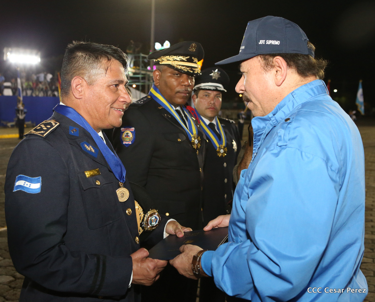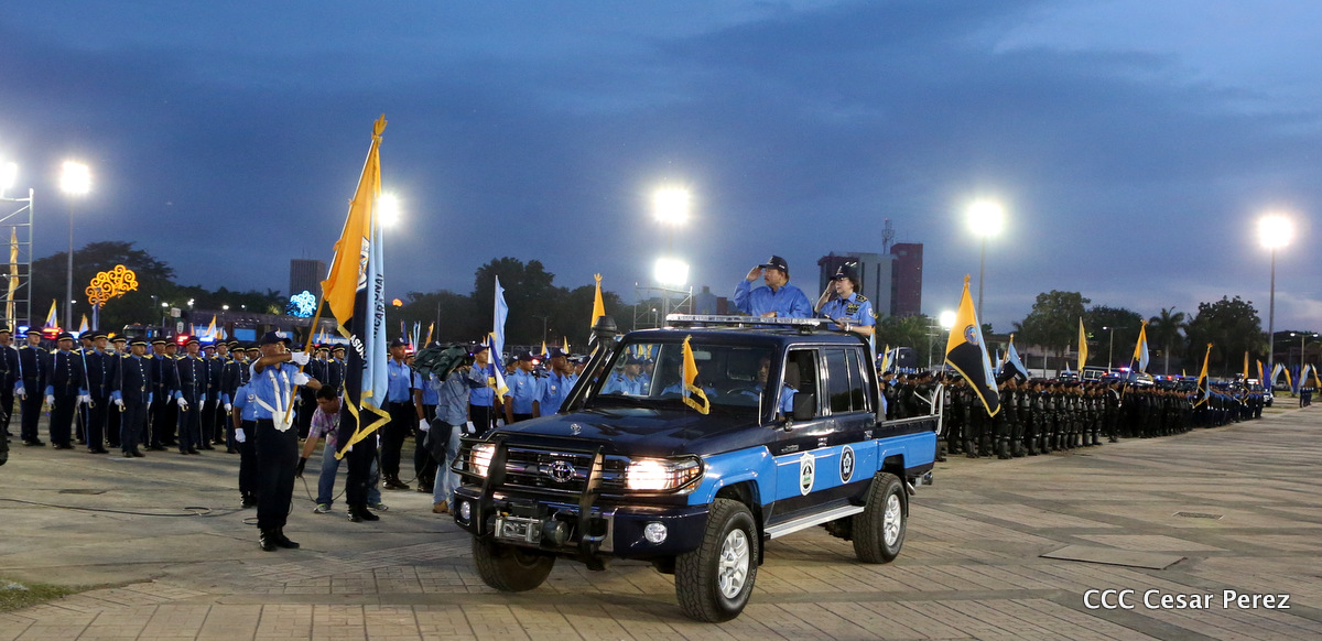 El Presidente de la República, Comandante Daniel Ortega, y la Compañera Rosario Murillo, Coordinadora del Consejo de Comunicación y Ciudadanía, presidieron el acto del 37 aniversario de la Policía Nacional.