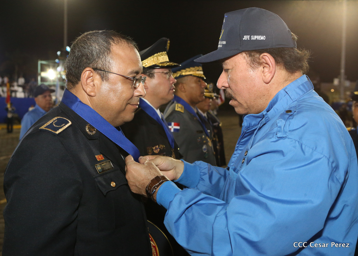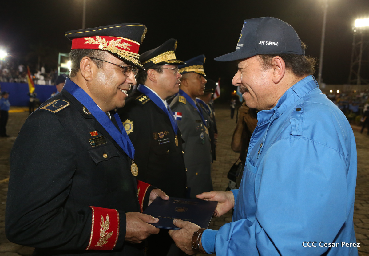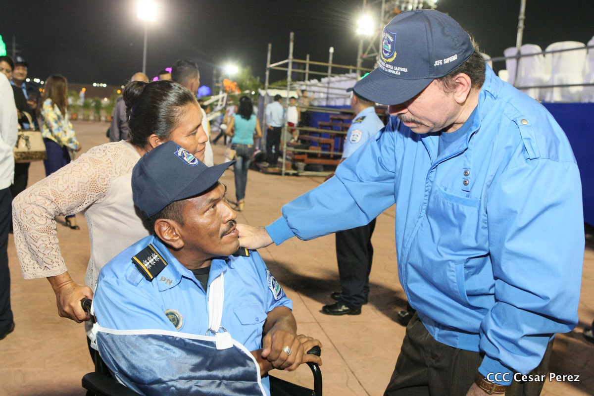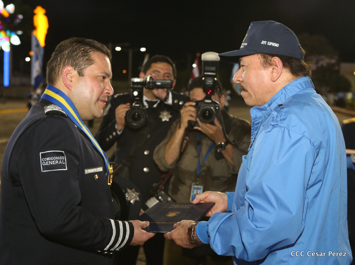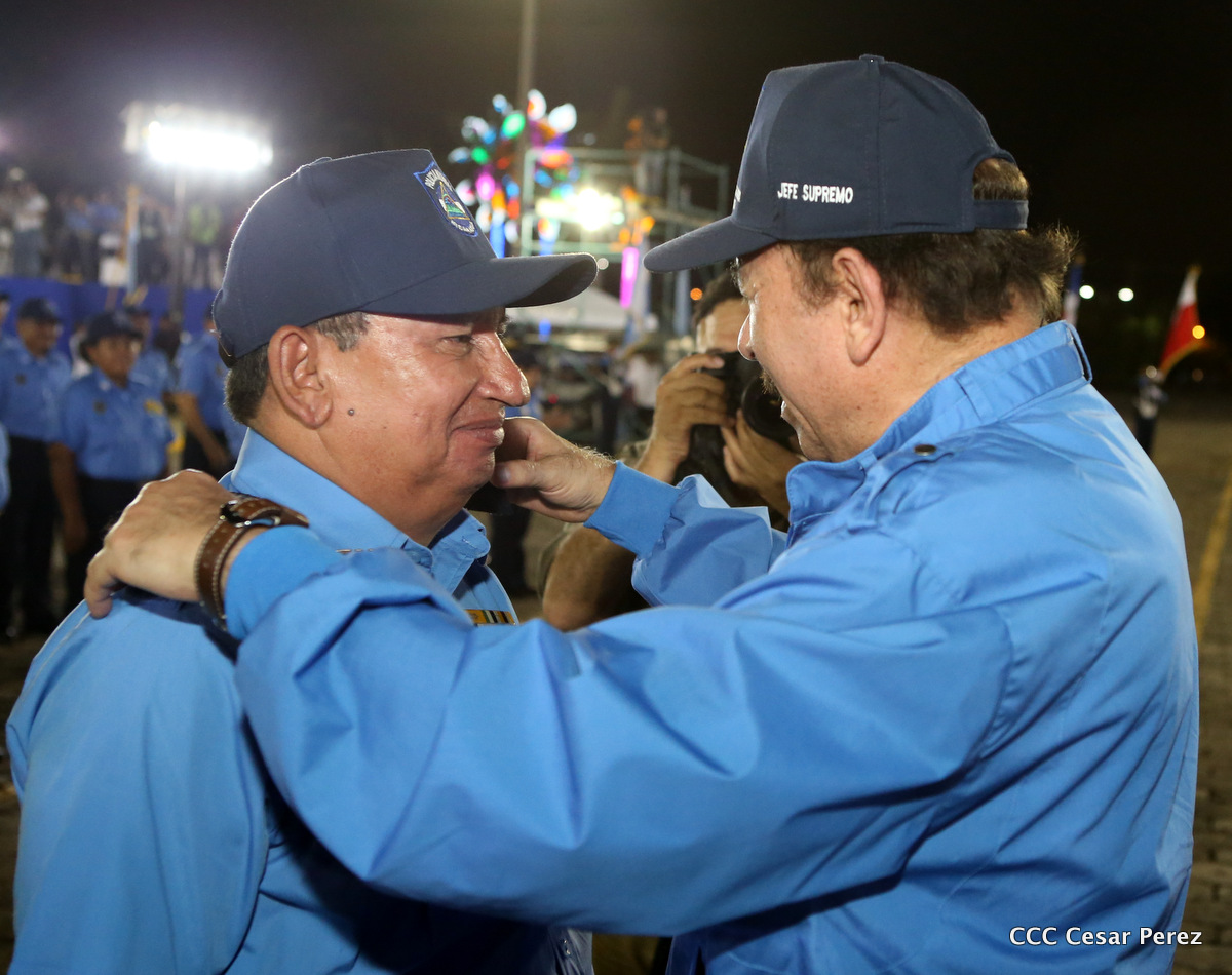 El Presidente de la República, Comandante Daniel Ortega, y la Compañera Rosario Murillo, Coordinadora del Consejo de Comunicación y Ciudadanía, presidieron el acto del 37 aniversario de la Policía Nacional.