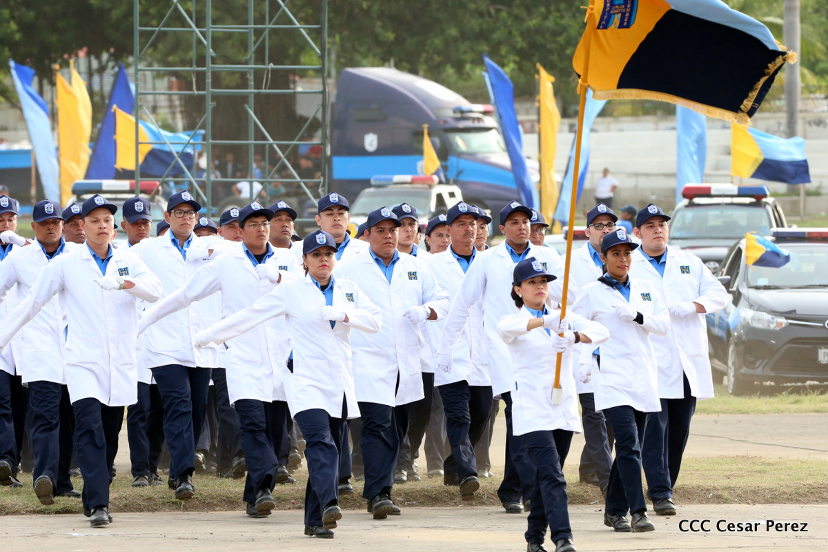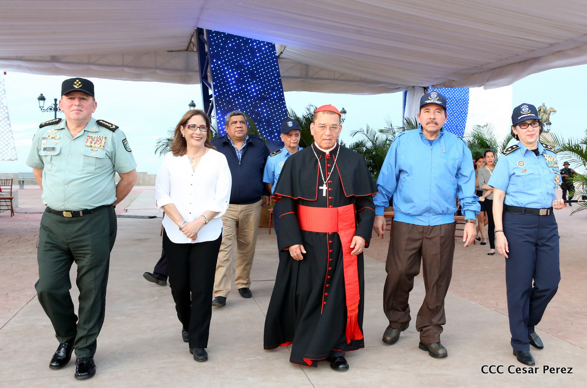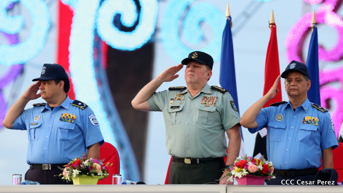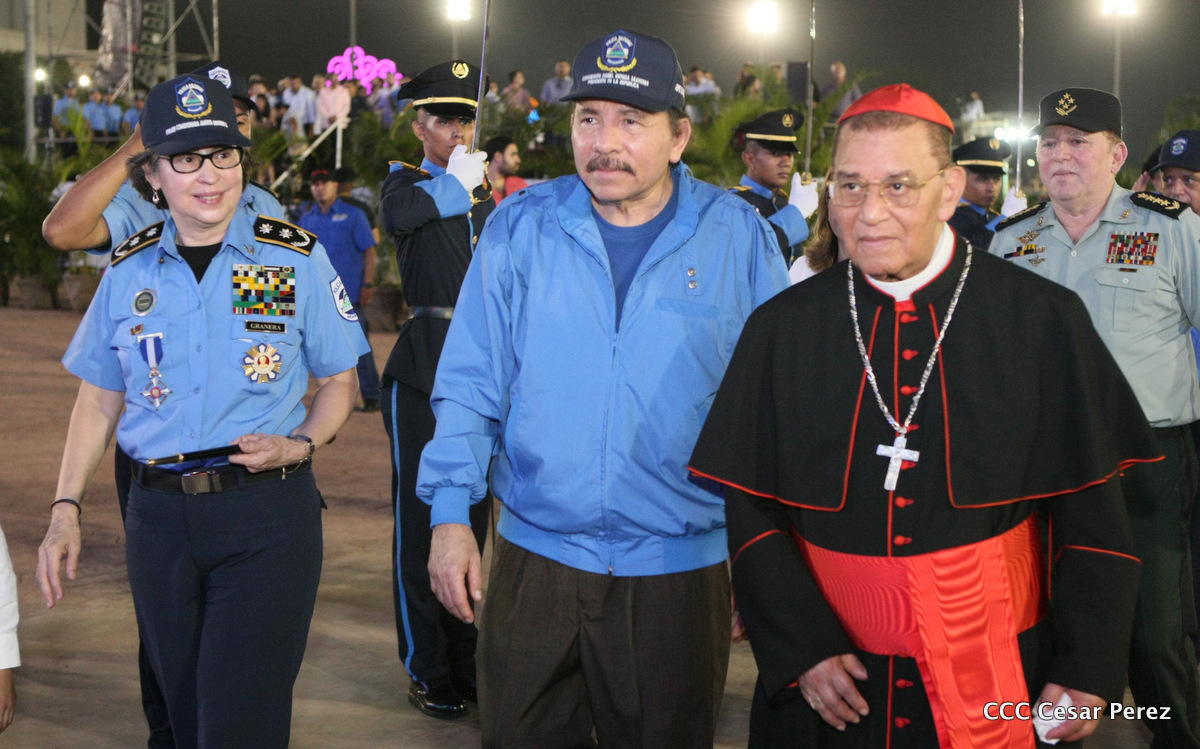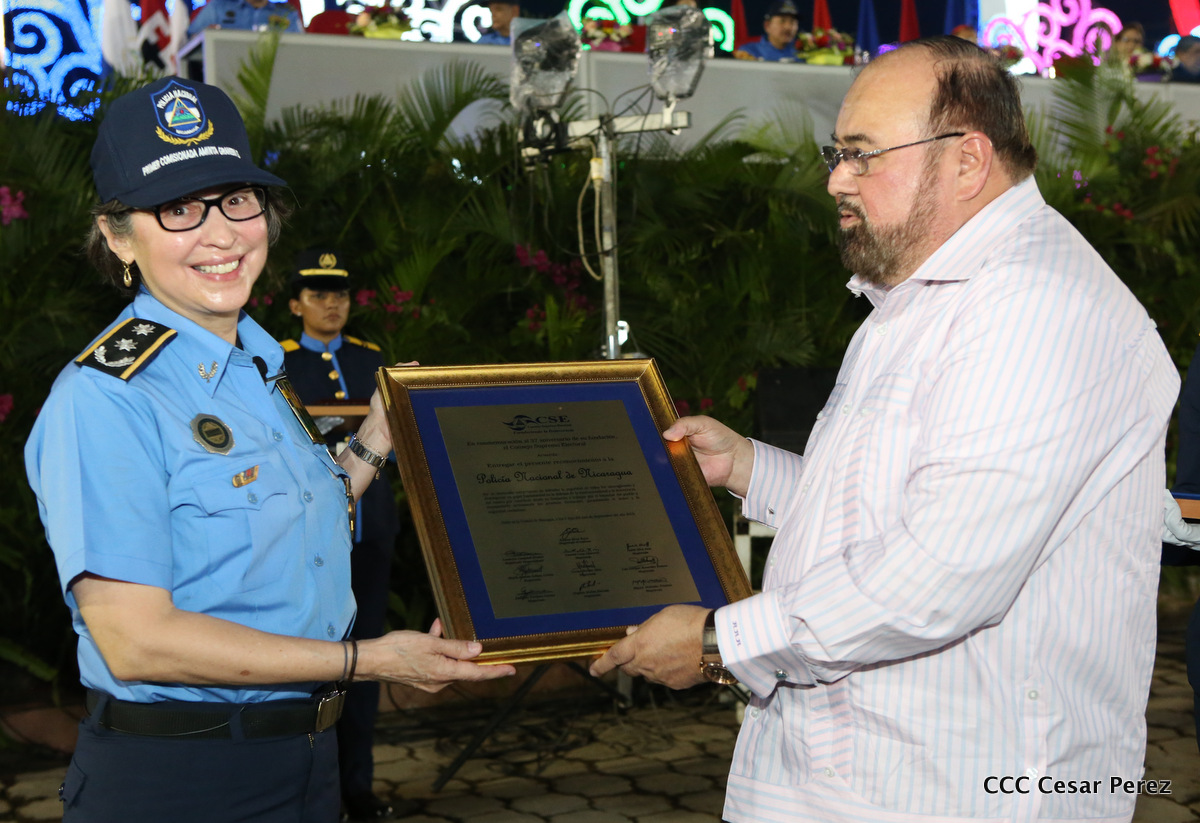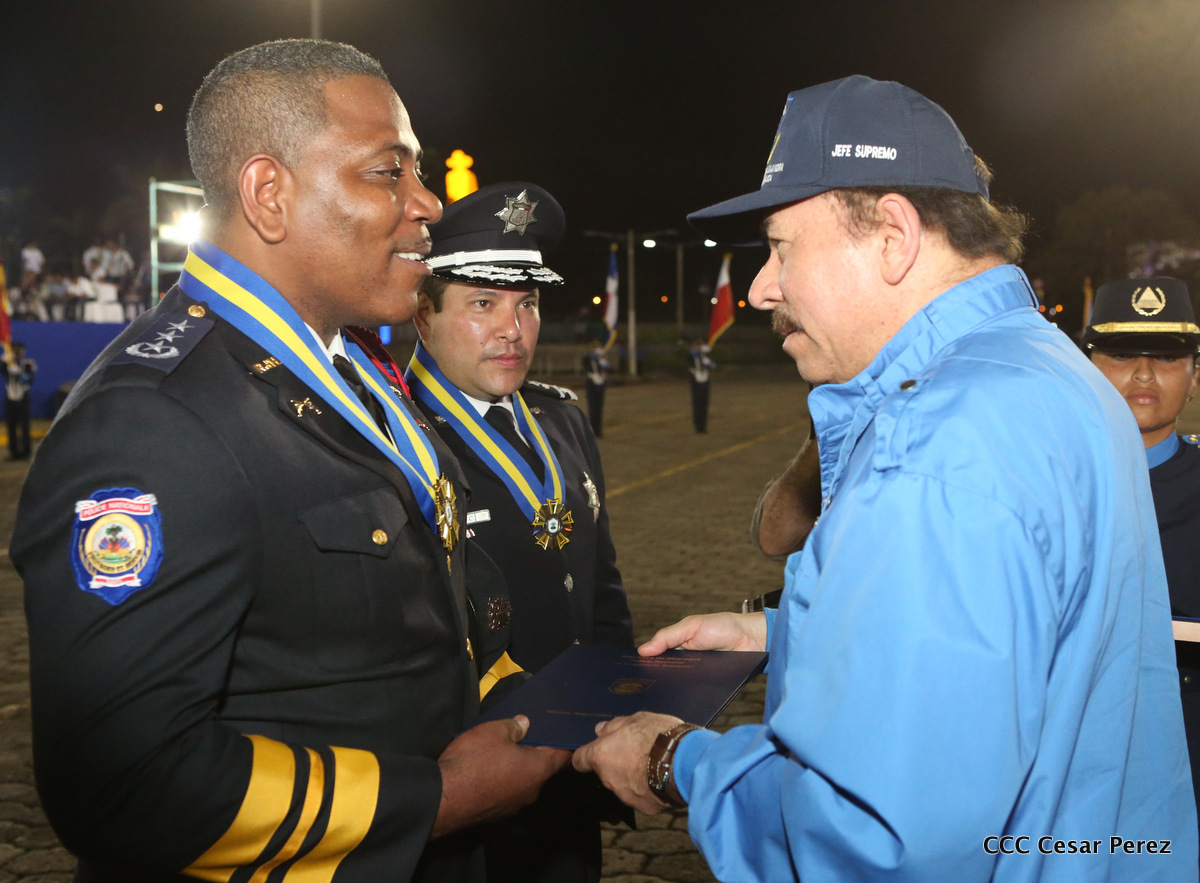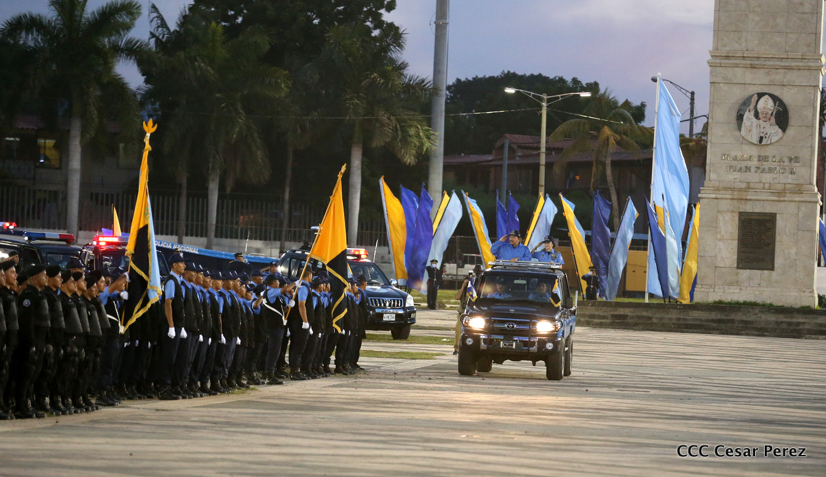 El Presidente de la República, Comandante Daniel Ortega, y la Compañera Rosario Murillo, Coordinadora del Consejo de Comunicación y Ciudadanía, presidieron el acto del 37 aniversario de la Policía Nacional.