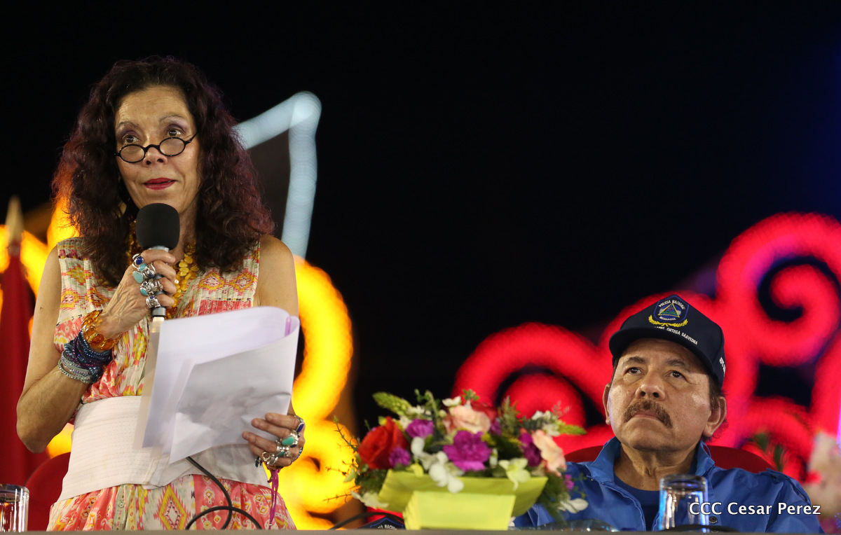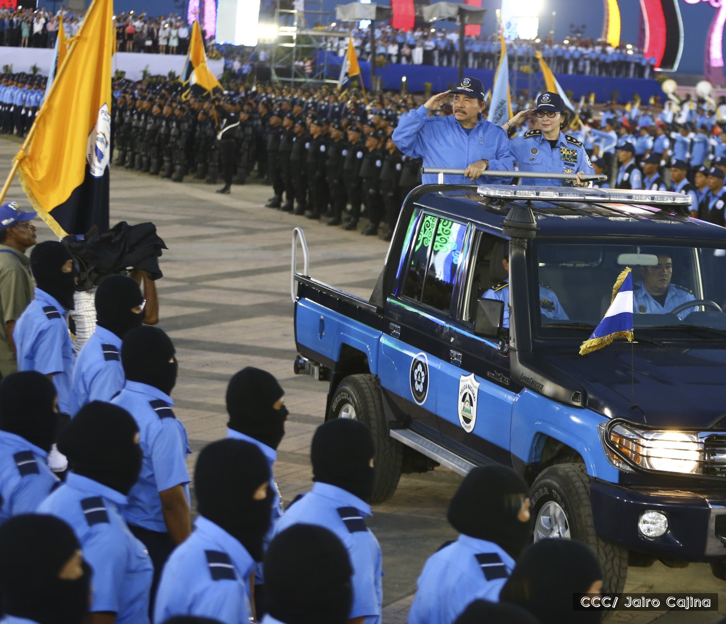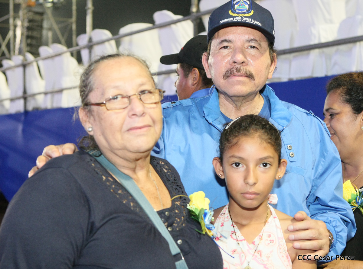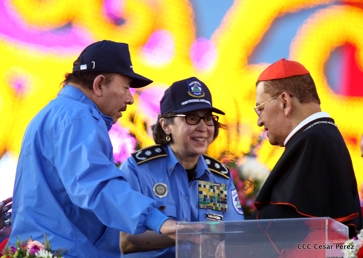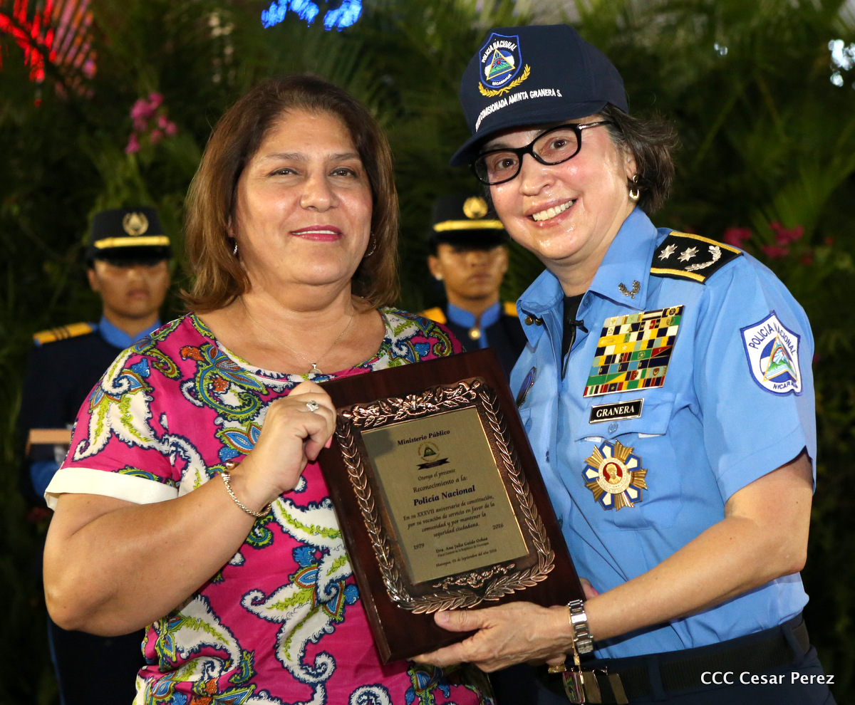 El Presidente de la República, Comandante Daniel Ortega, y la Compañera Rosario Murillo, Coordinadora del Consejo de Comunicación y Ciudadanía, presidieron el acto del 37 aniversario de la Policía Nacional.