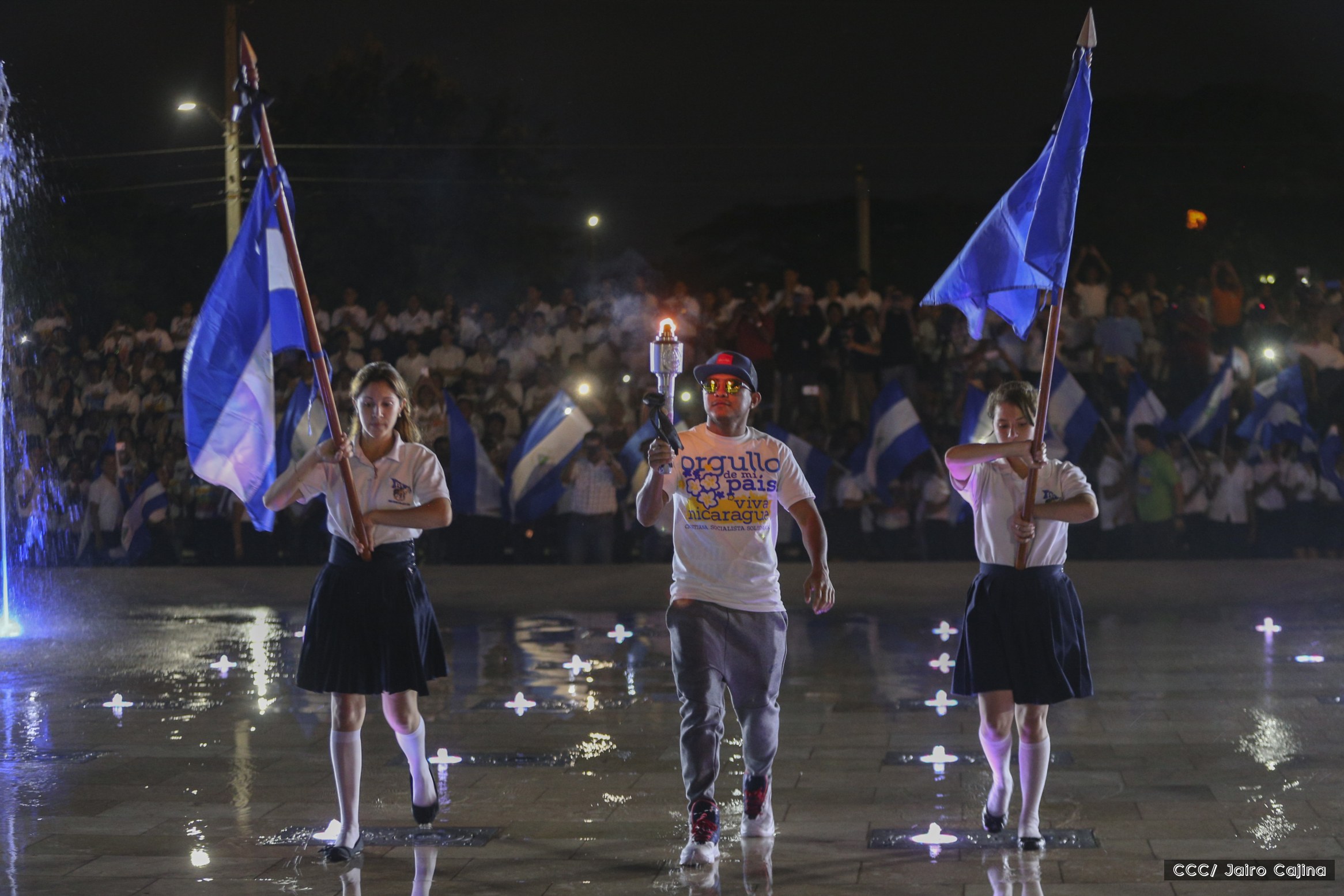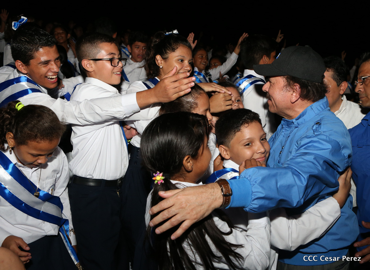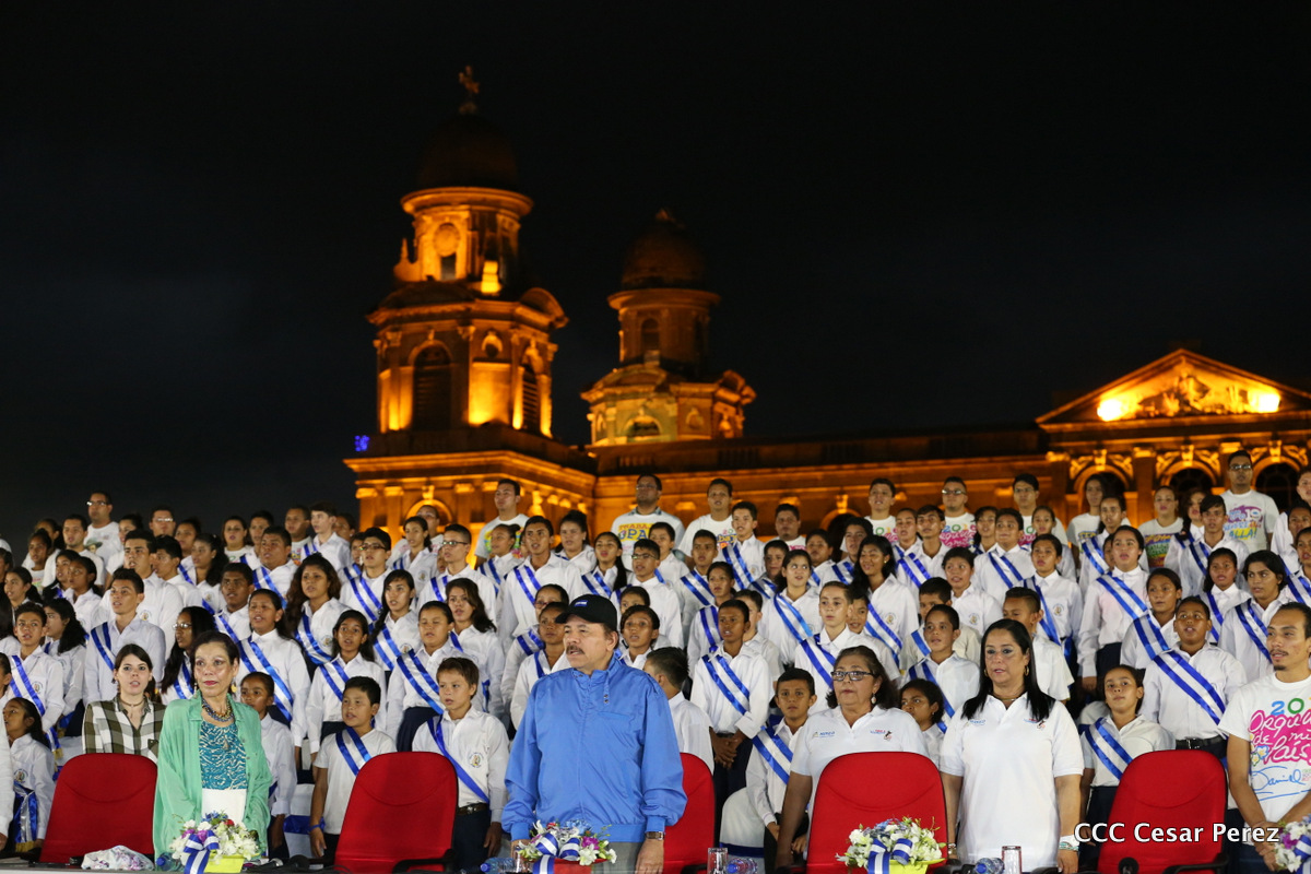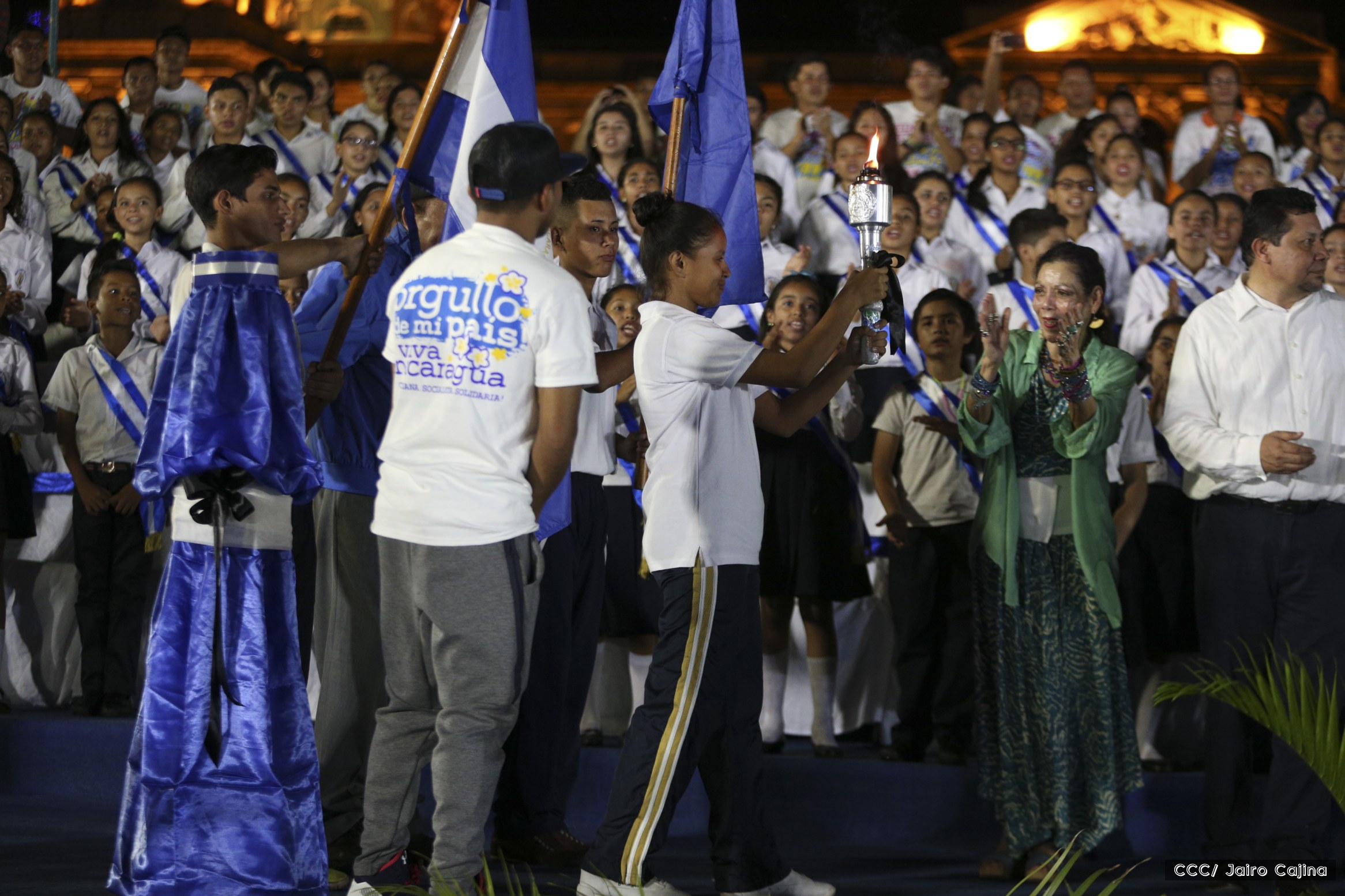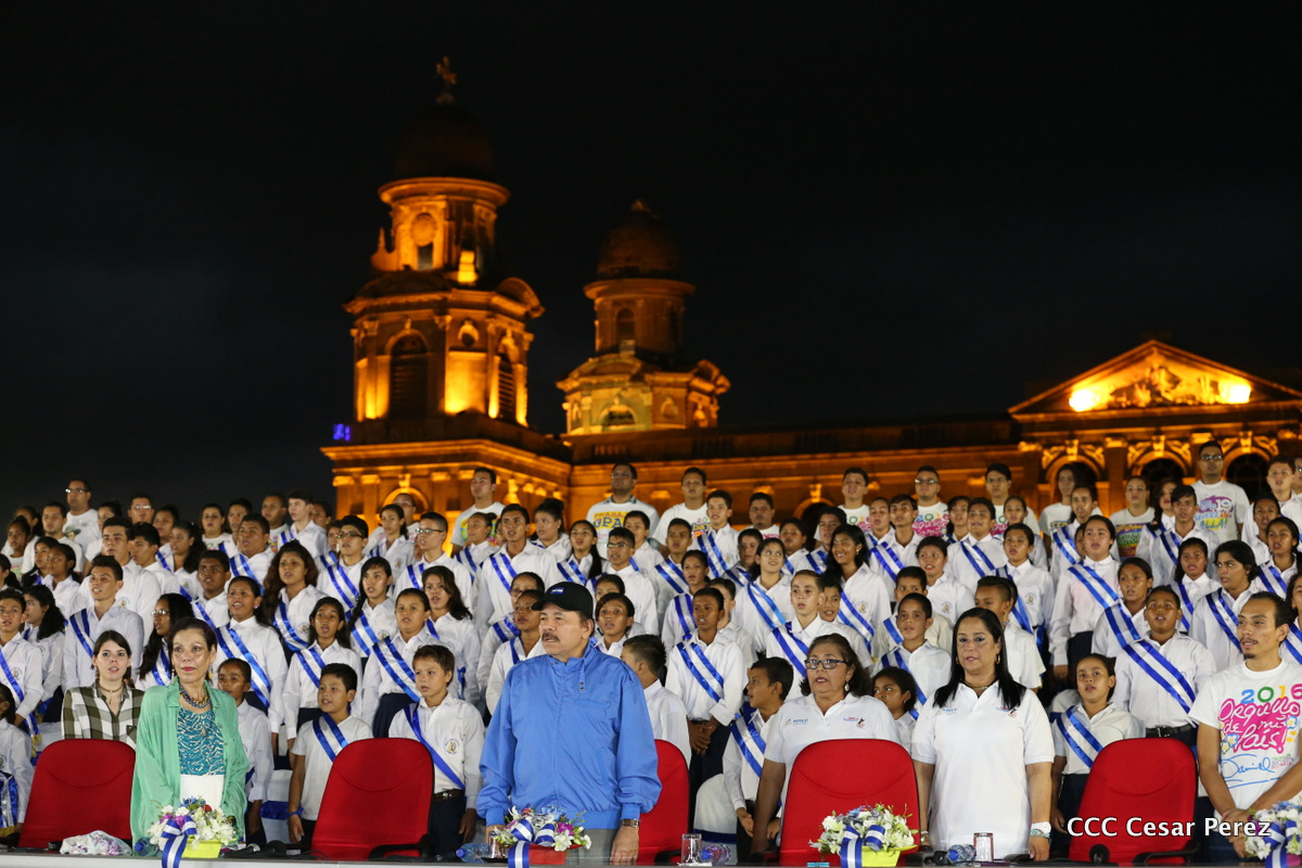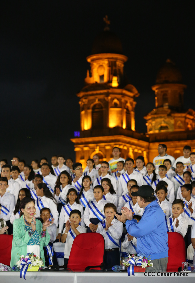 El Presidente de la República, Comandante Daniel Ortega, y la Coordinadora del Consejo de Comunicación y Ciudadanía, Compañera Rosario Murillo, recibieron este lunes de manos del tetracampeón mundial de boxeo, Román “Chocolate” González, la Antorcha de la Libertad y la Unidad Centroamericana.