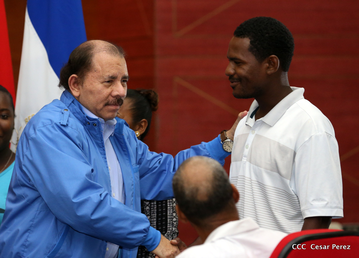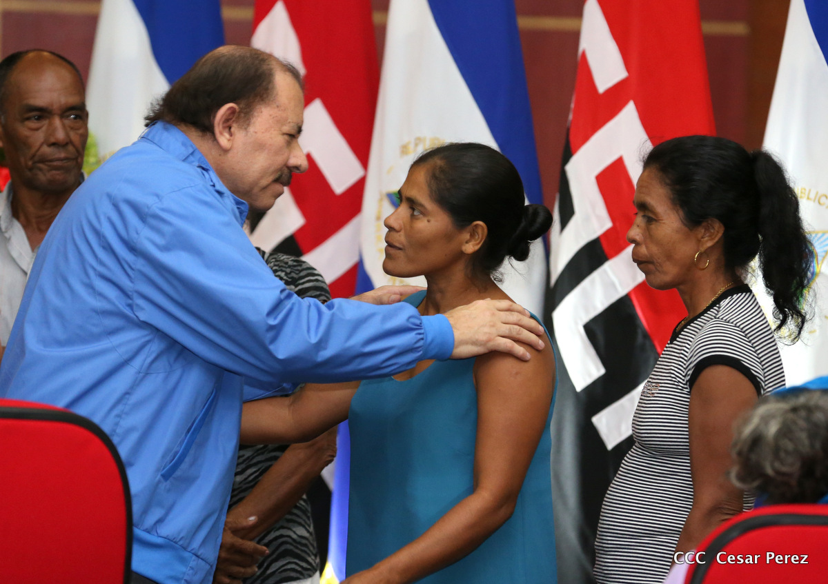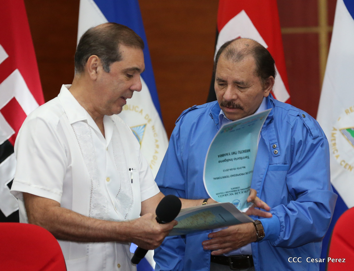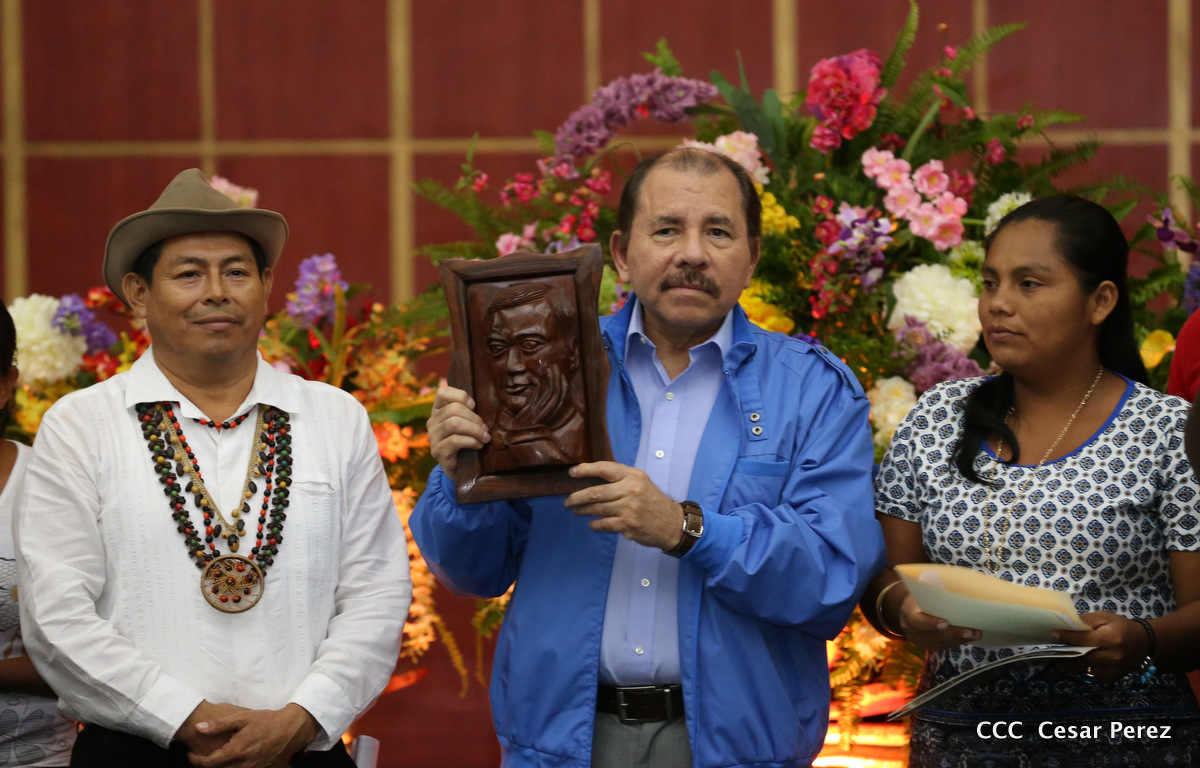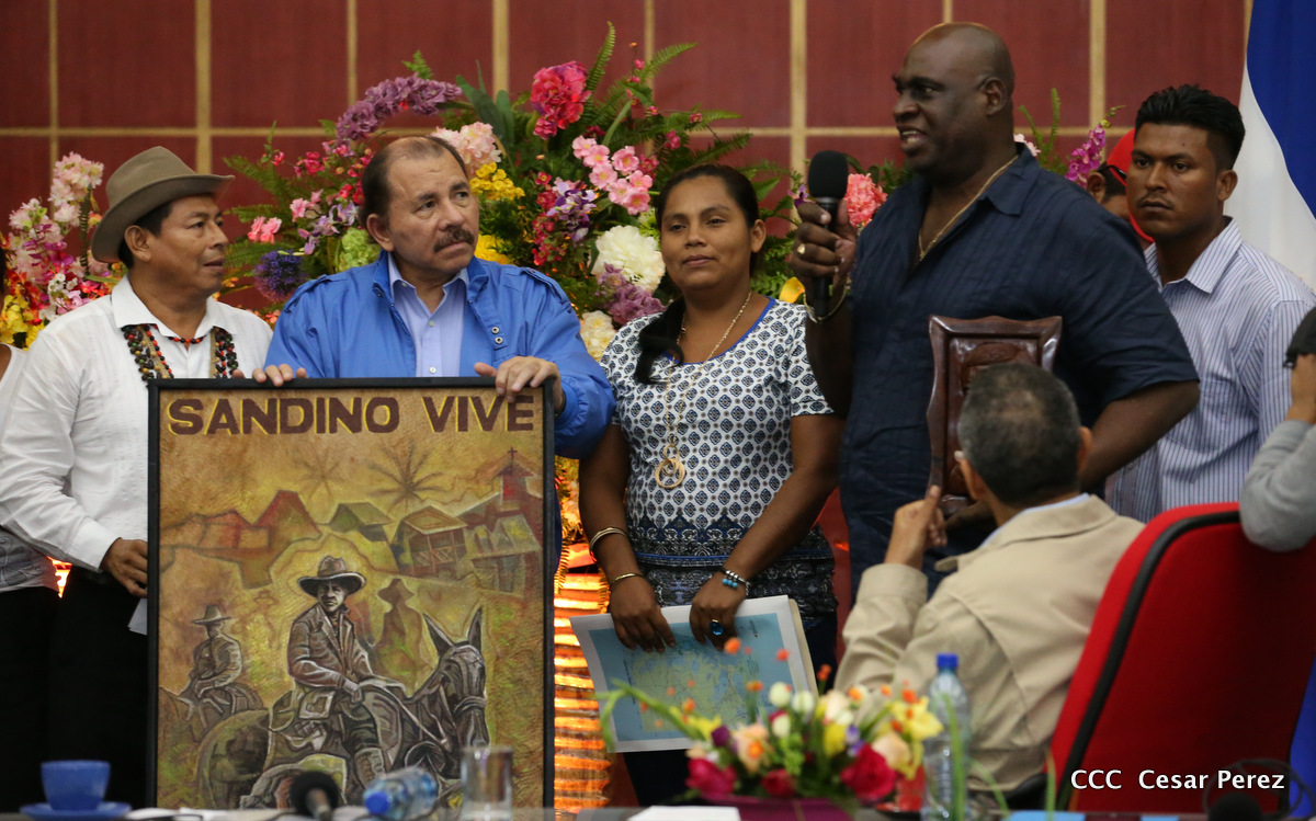 El Comandante Presidente Daniel Ortega entrega títulos comunitarios a los pueblos originarios de la Costa Caribe de Nicaragua.