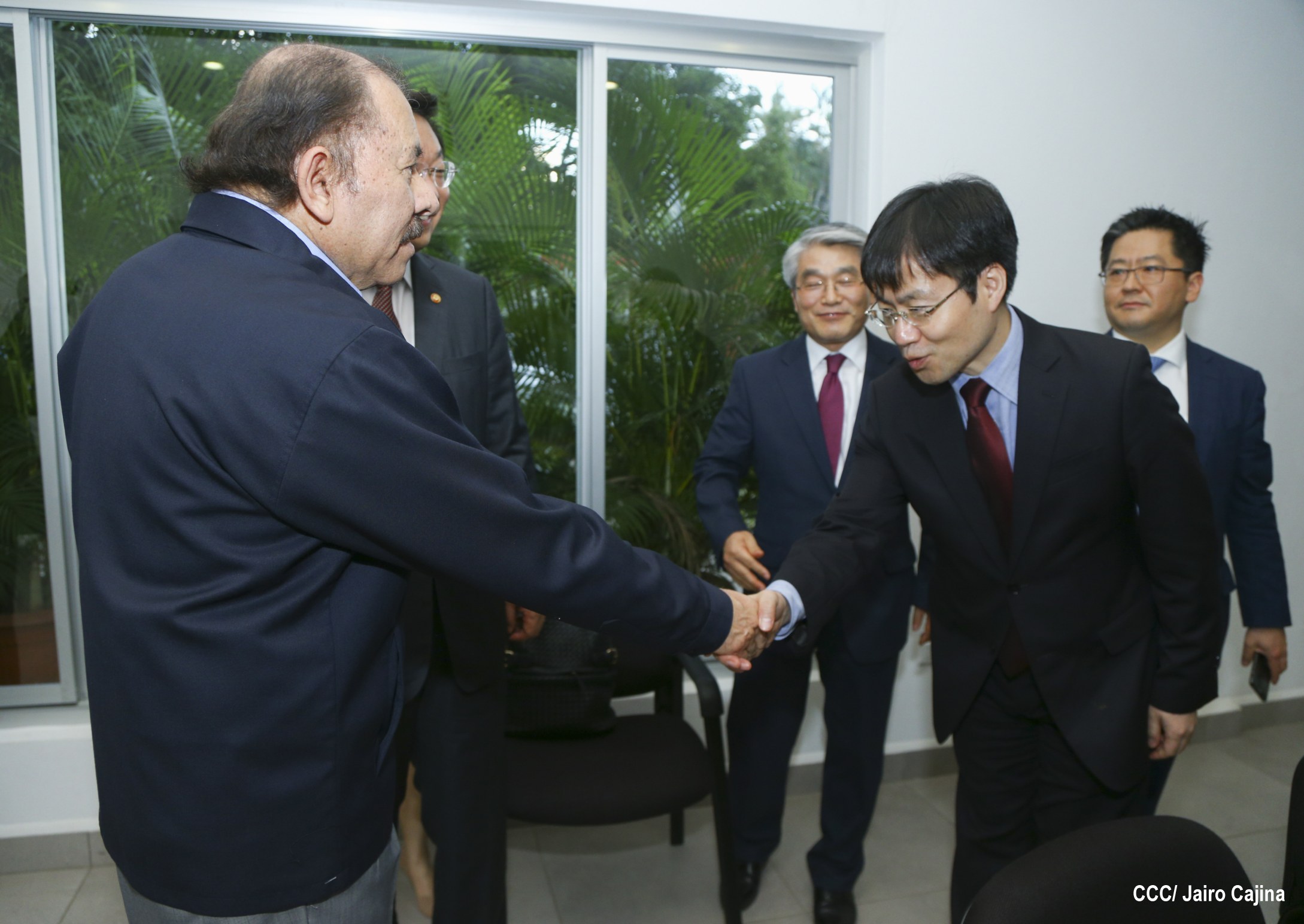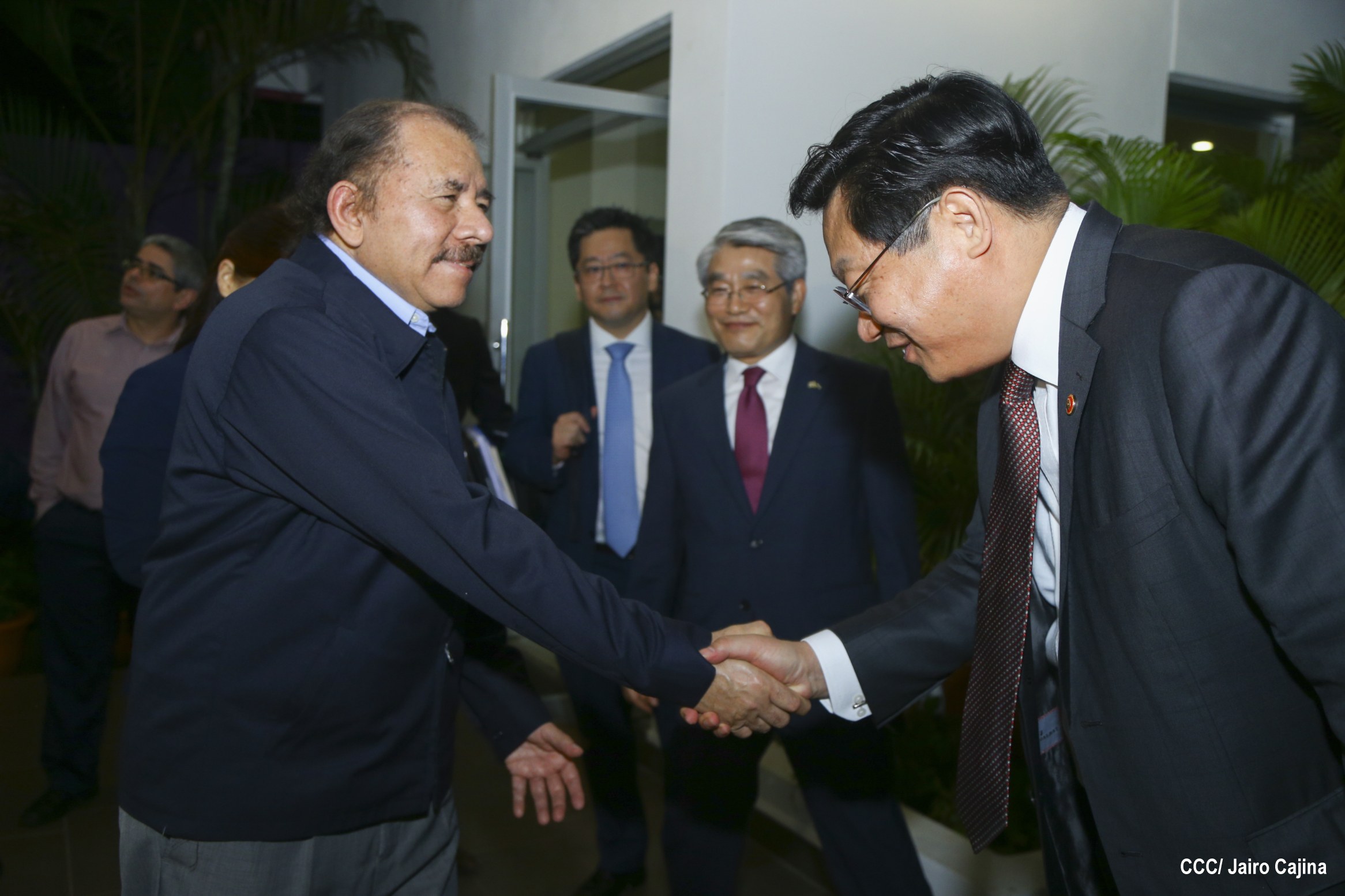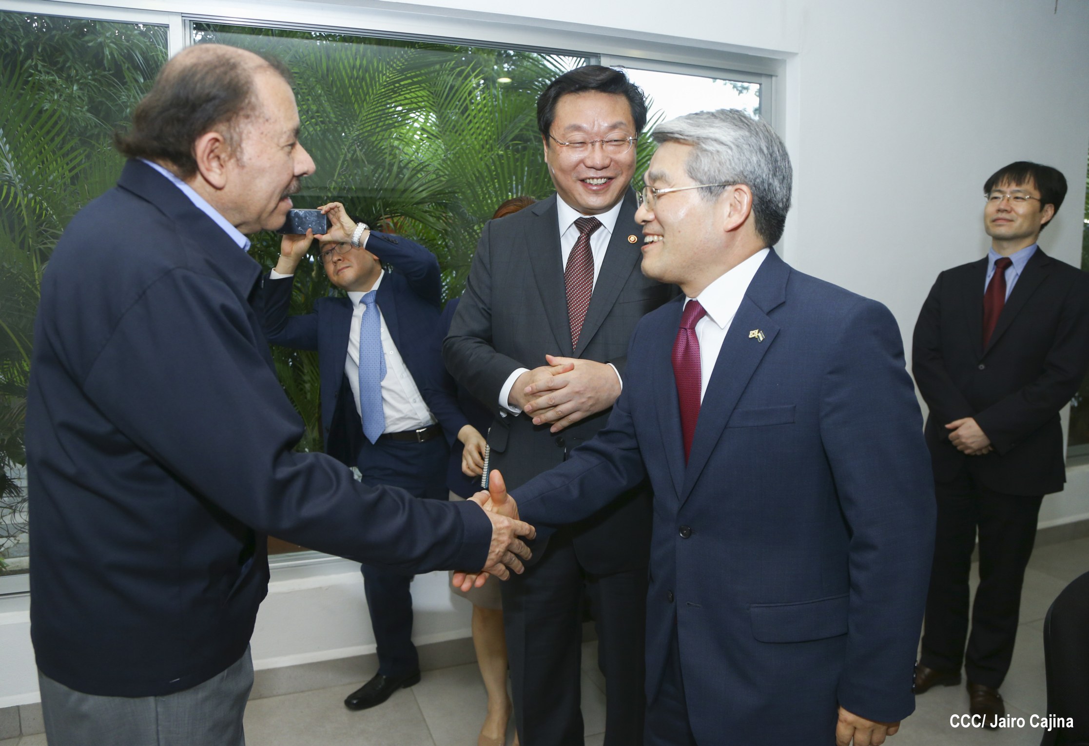 El Presidente de la República, Comandante Daniel Ortega Saavedra, se reunió con el Ministro de Comercio, Industria y Energía de Corea, señor Hyunghwan JOO, quien se encuentra en Nicaragua para anunciar la conclusión de las negociaciones del Tratado de Libre Comercio (TLC) entre Centroamérica y la República de Corea.