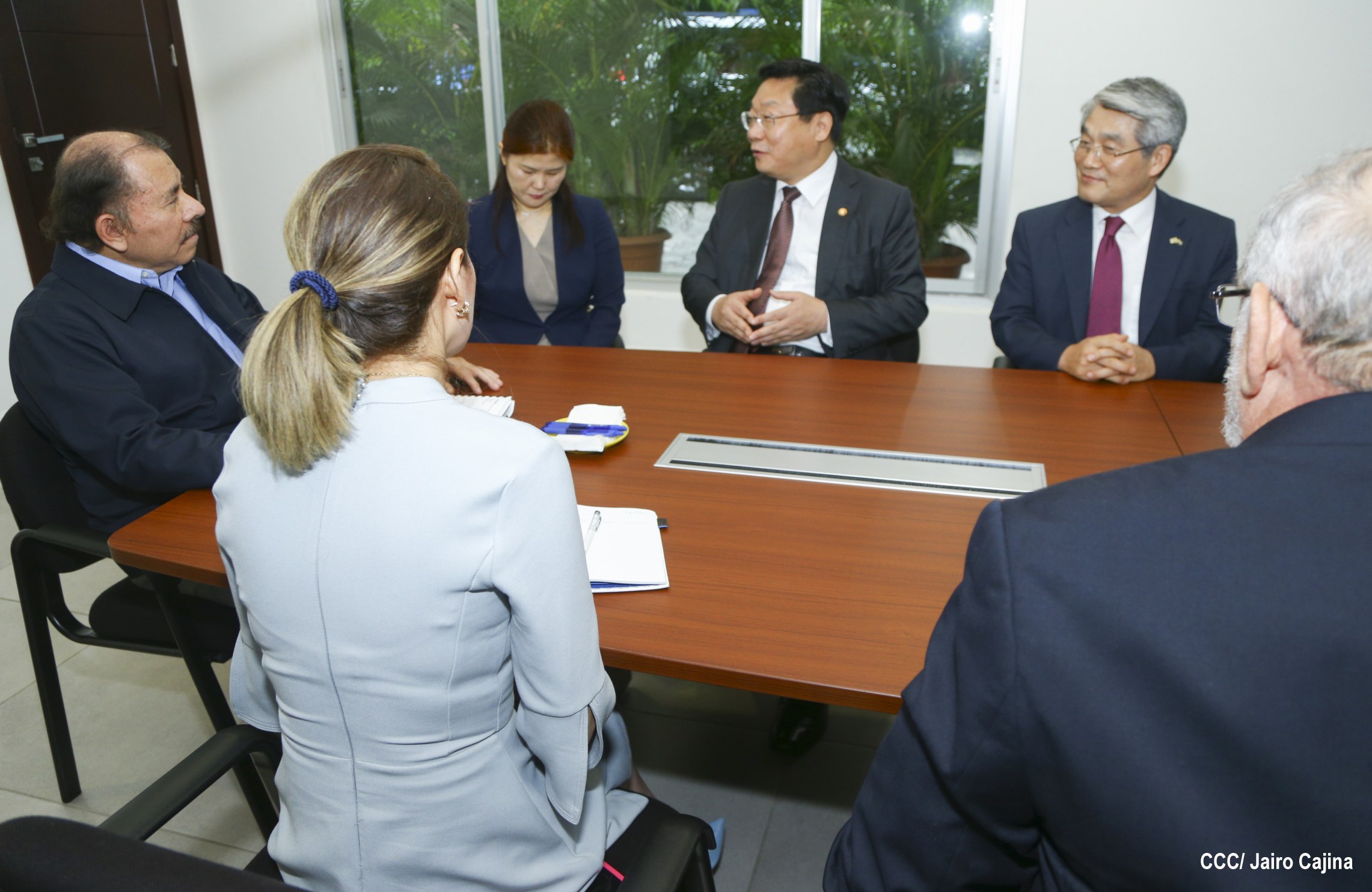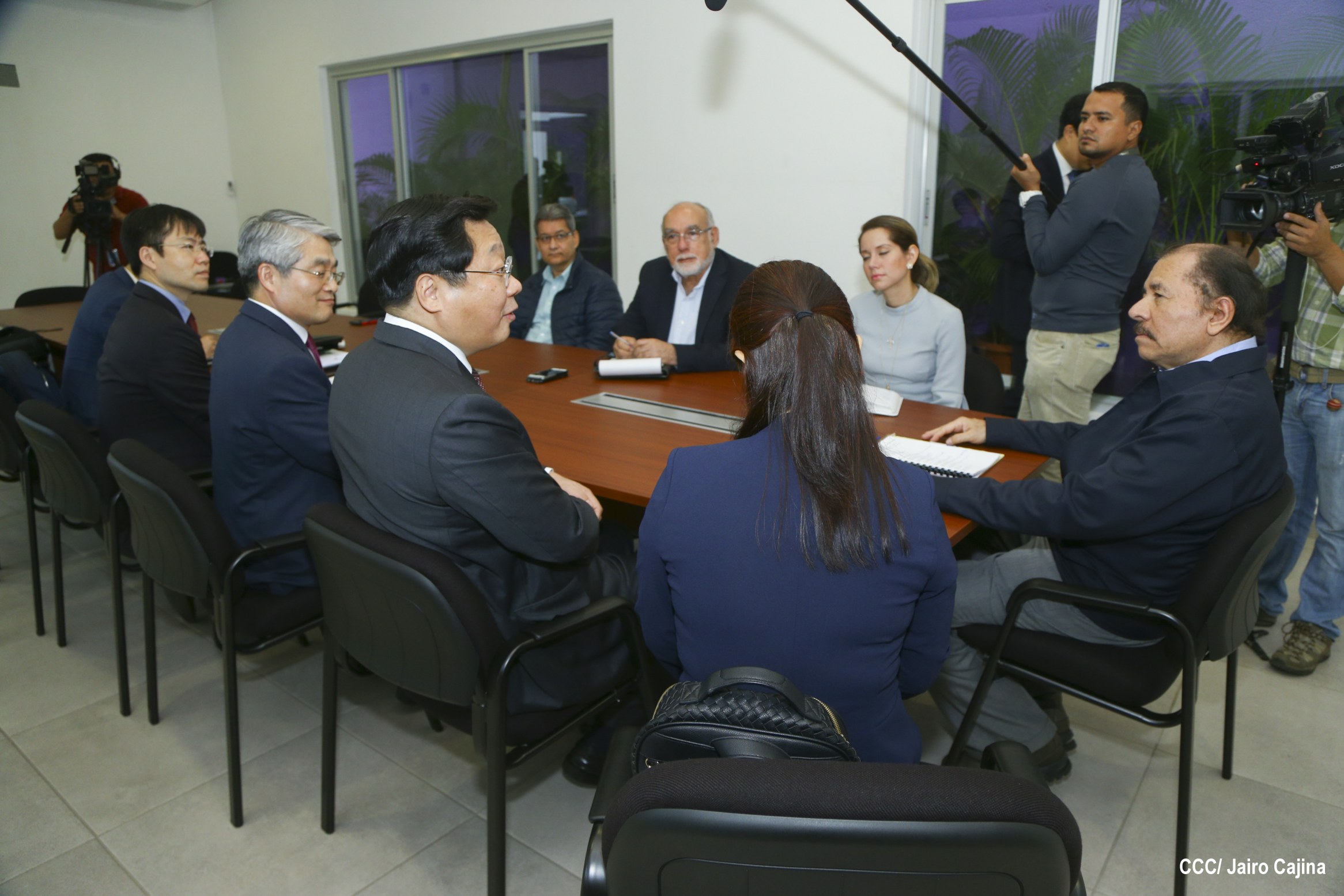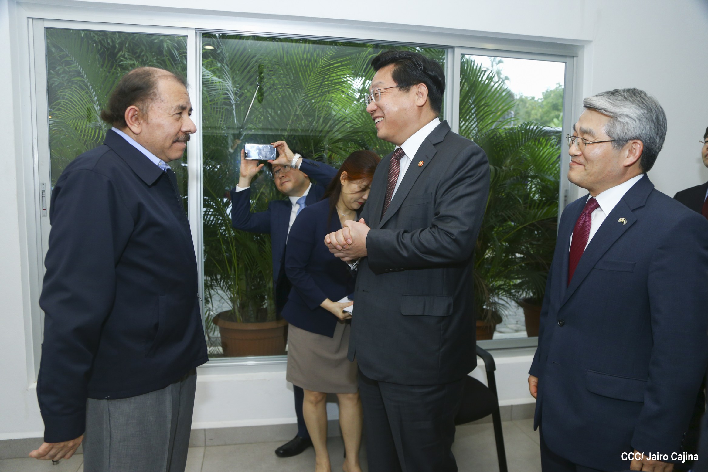 El Presidente de la República, Comandante Daniel Ortega Saavedra, se reunió con el Ministro de Comercio, Industria y Energía de Corea, señor Hyunghwan JOO, quien se encuentra en Nicaragua para anunciar la conclusión de las negociaciones del Tratado de Libre Comercio (TLC) entre Centroamérica y la República de Corea.