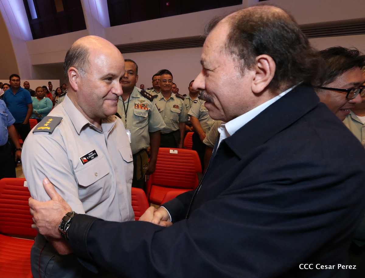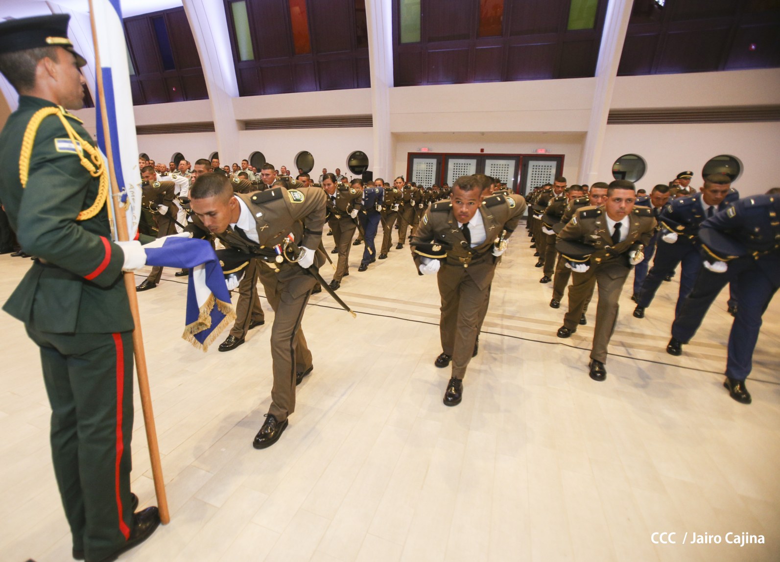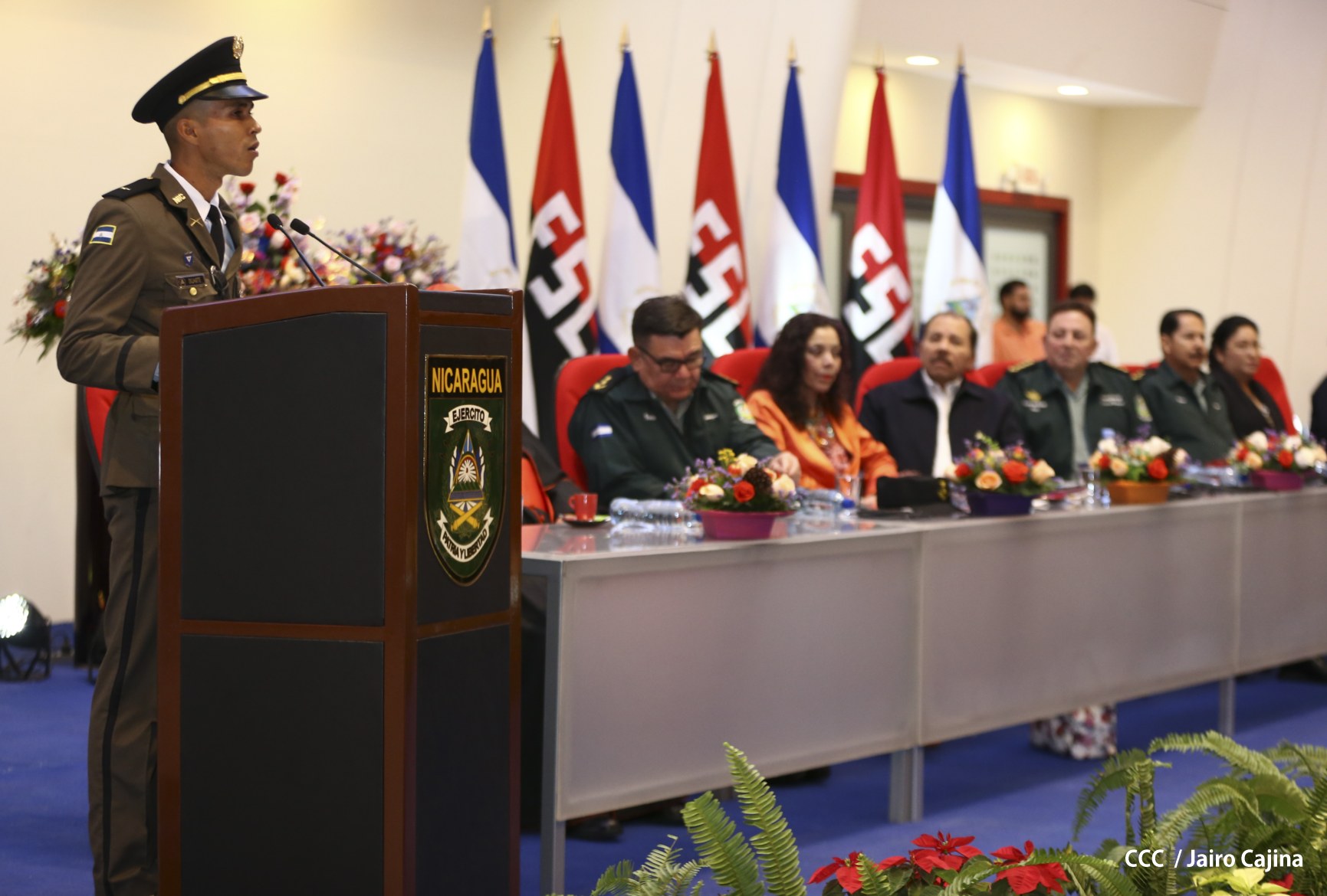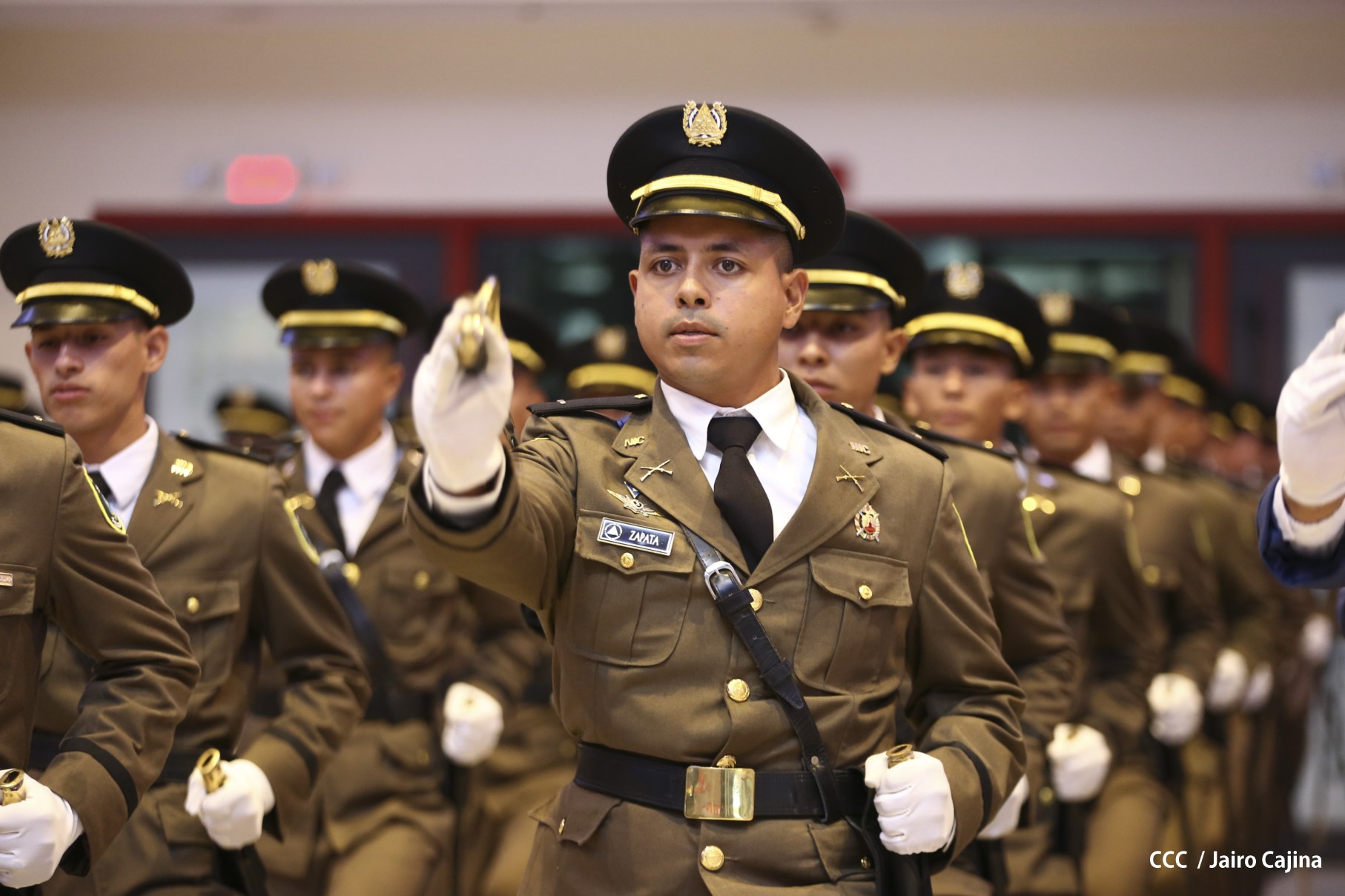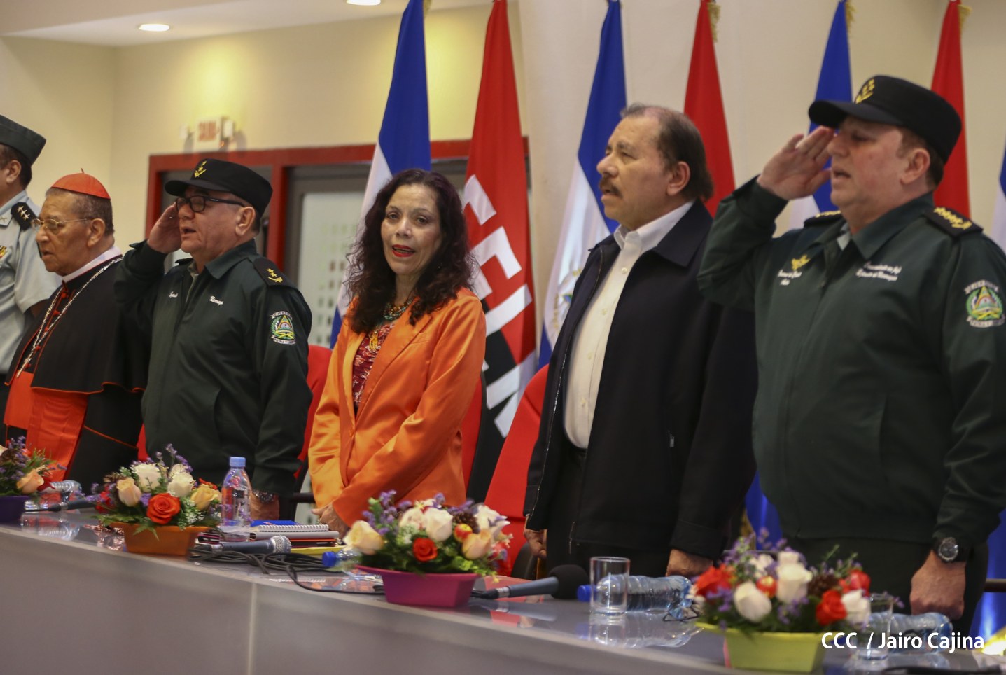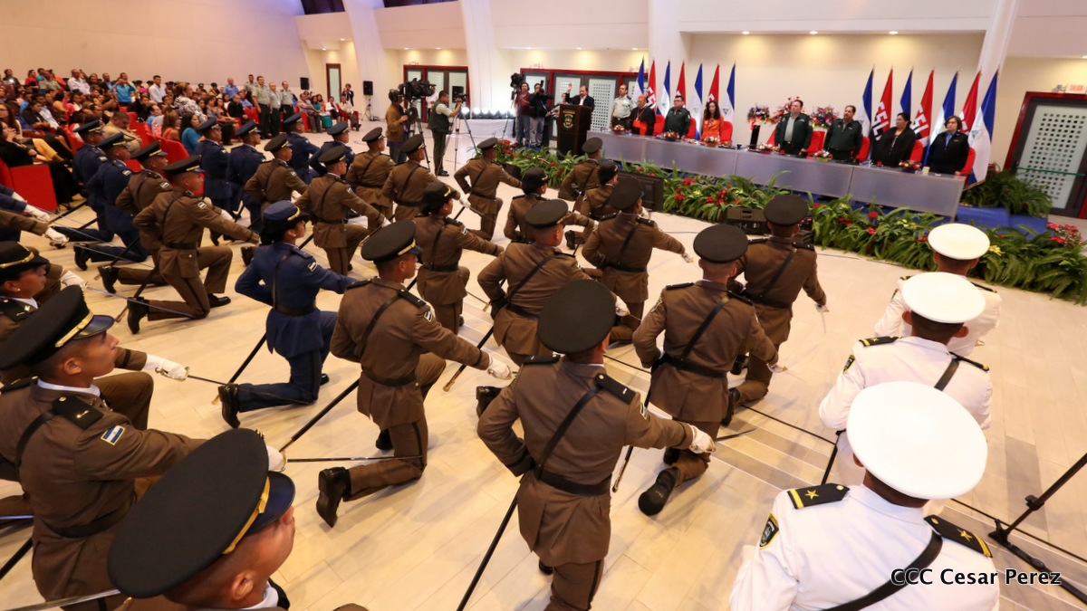 El Presidente de la República, Comandante Daniel Ortega Saavedra, y la Coordinadora del Consejo de Comunicación y Ciudadanía, Compañera Rosario Murillo, presidieron este lunes la XXI Graduación del Curso Regular de Damas y Caballeros Cadetes del Ejército de Nicaragua “Héroe Nacional Rubén Darío”.
