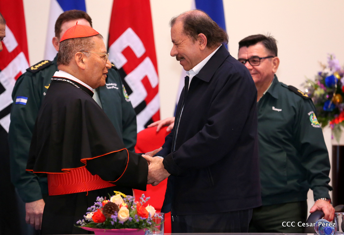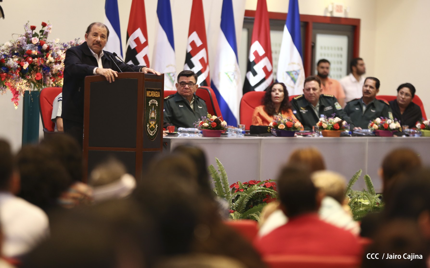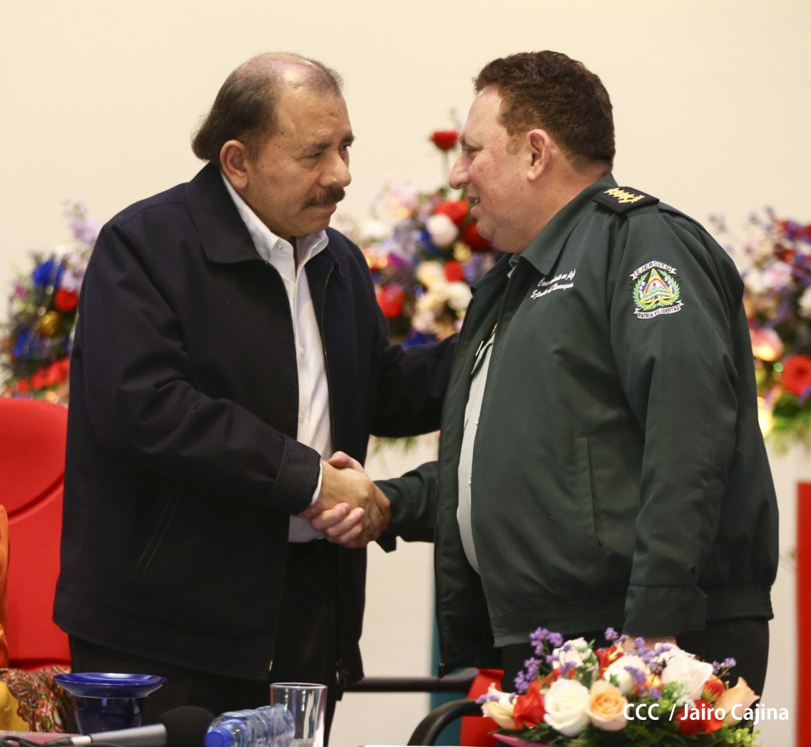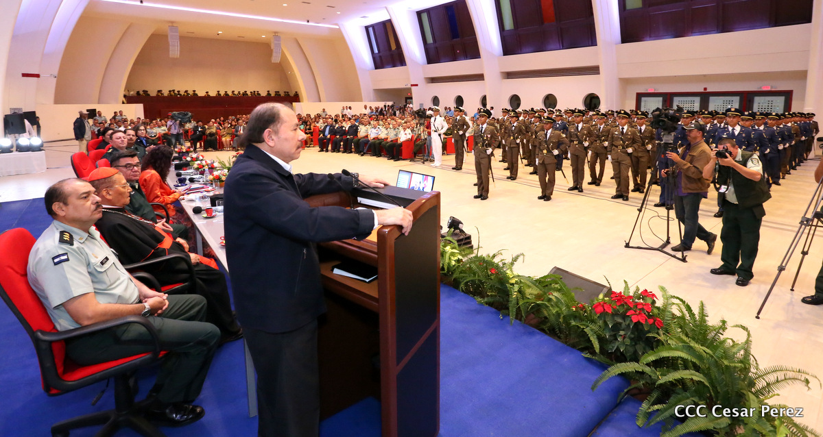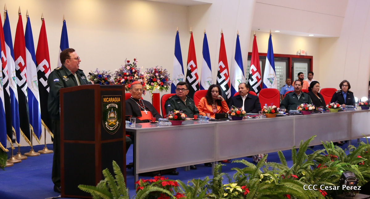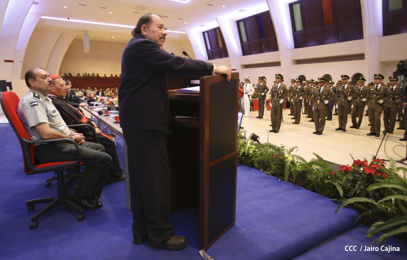 El Presidente de la República, Comandante Daniel Ortega Saavedra, y la Coordinadora del Consejo de Comunicación y Ciudadanía, Compañera Rosario Murillo, presidieron este lunes la XXI Graduación del Curso Regular de Damas y Caballeros Cadetes del Ejército de Nicaragua “Héroe Nacional Rubén Darío”.