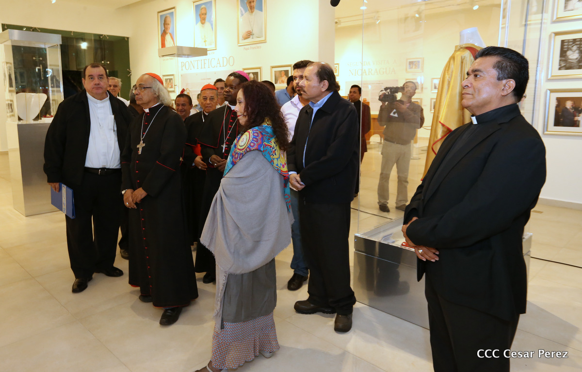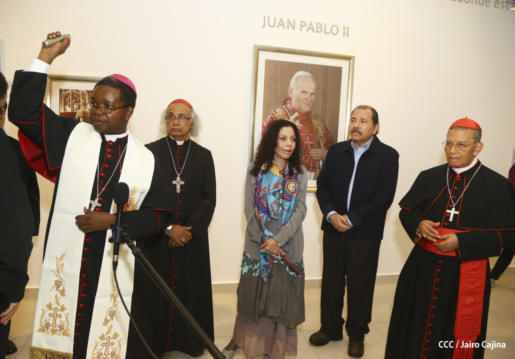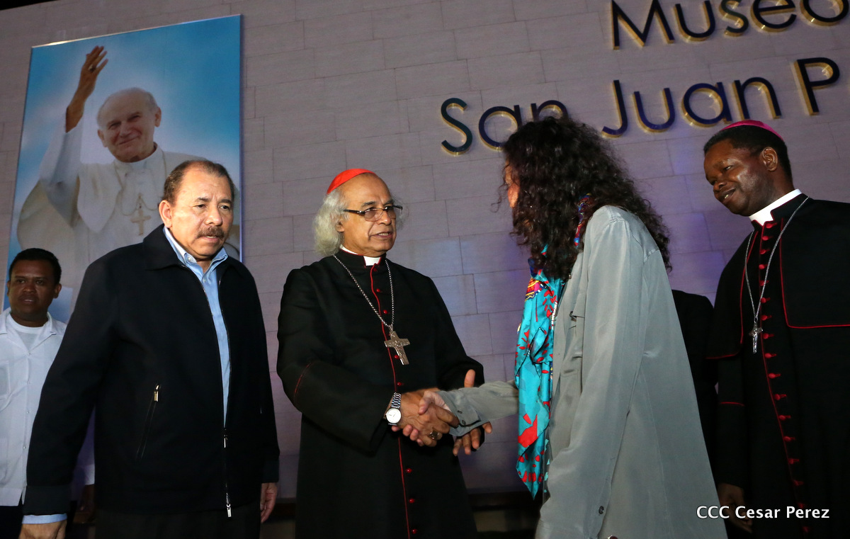 El Presidente Daniel Ortega y la Compañera Rosario Murillo, junto al Cardenal Miguel Obando y Bravo, el Cardenal Leopoldo Brenes y el Nuncio Fortunatus Nwachukwu, inauguraron el Museo San Juan Pablo II.