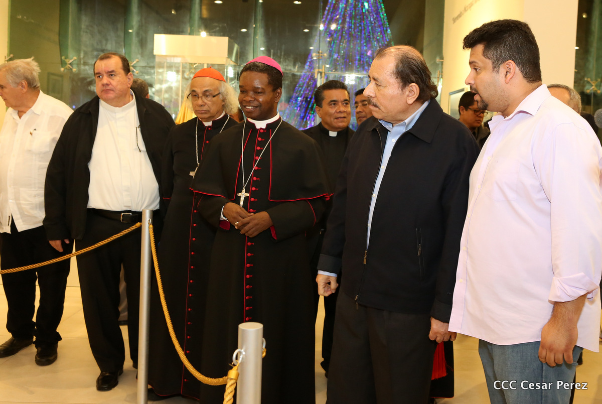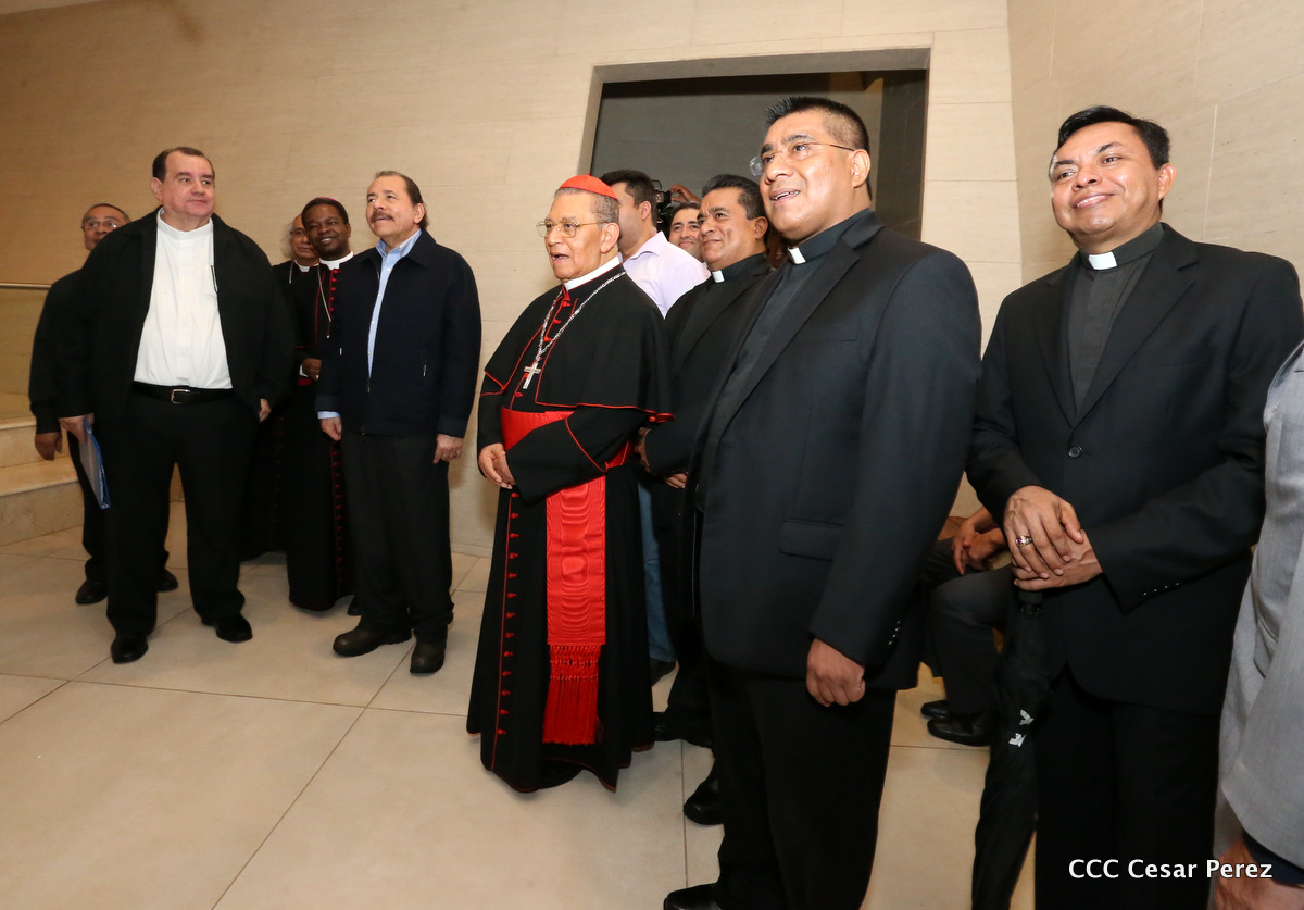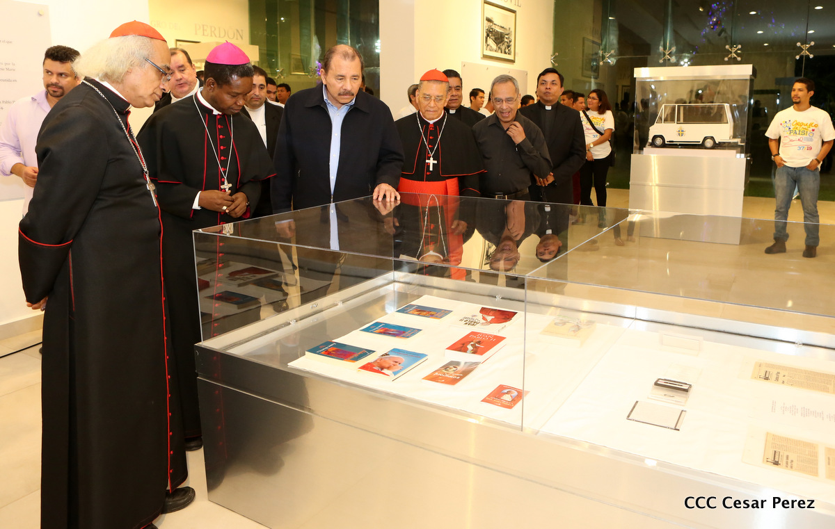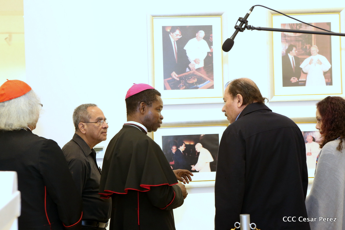 El Presidente Daniel Ortega y la Compañera Rosario Murillo, junto al Cardenal Miguel Obando y Bravo, el Cardenal Leopoldo Brenes y el Nuncio Fortunatus Nwachukwu, inauguraron el Museo San Juan Pablo II.