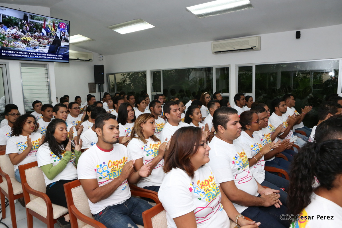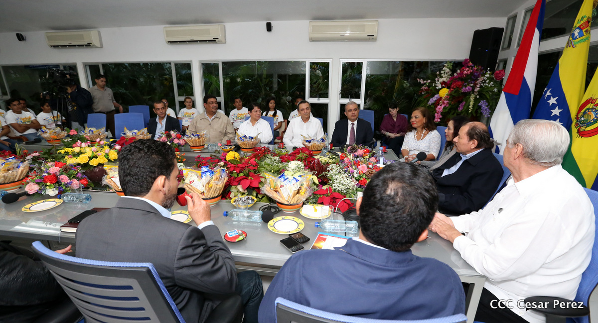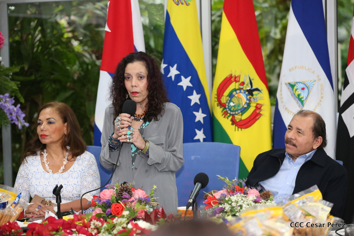 El Presidente de Nicaragua, Comanante Daniel Ortega, y la Compañera Rosario Murillo, celebran junto a embajadores de los países miembros del ALBA-TCP, el XII Aniversario de la Alianza Bolivariana para los Pueblos de Nuestra América.