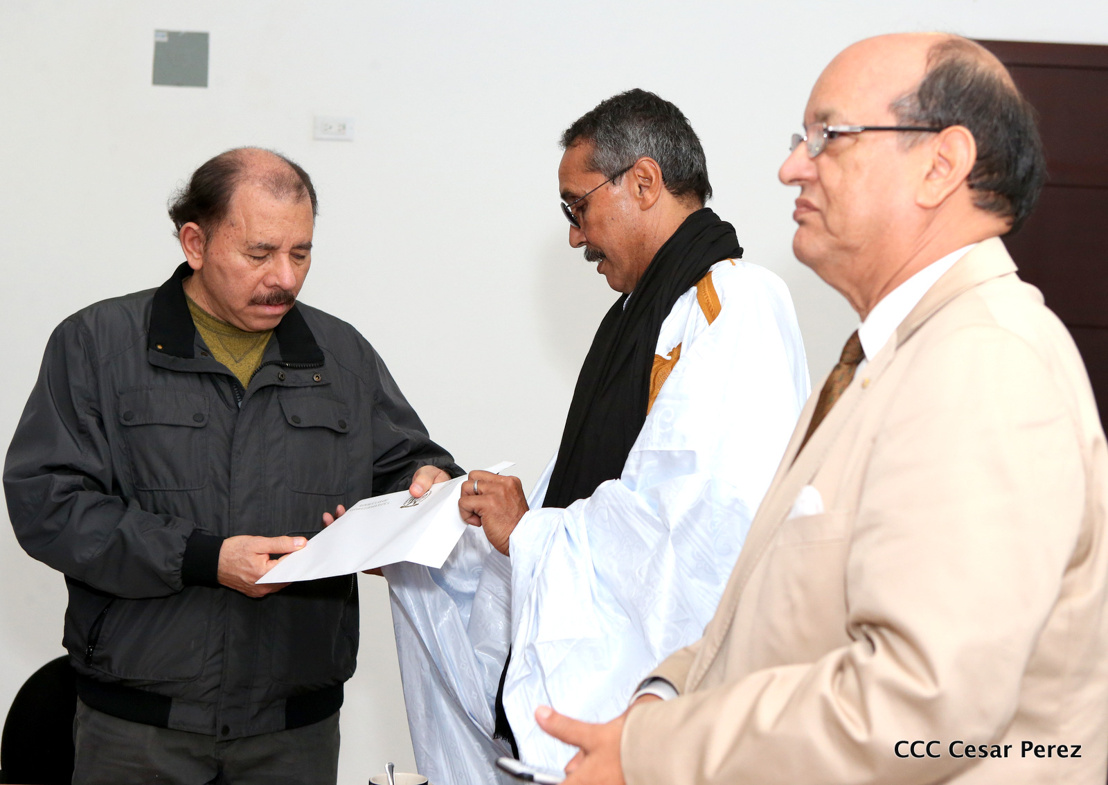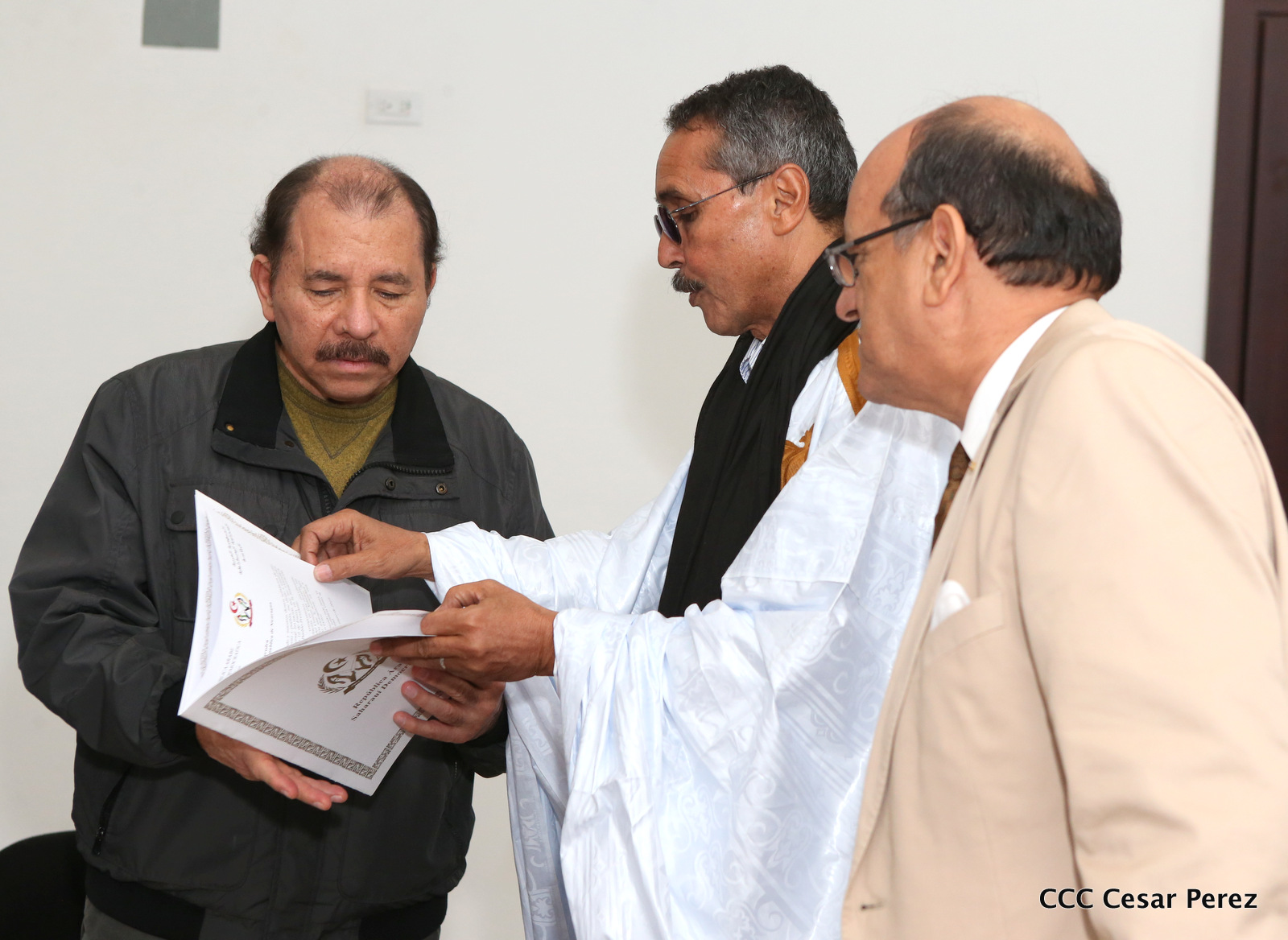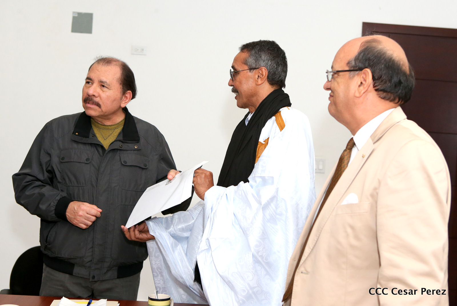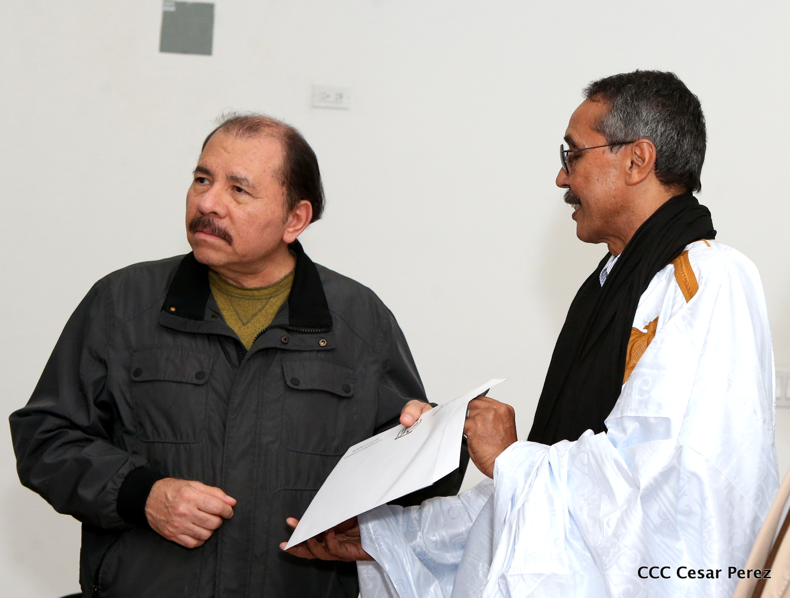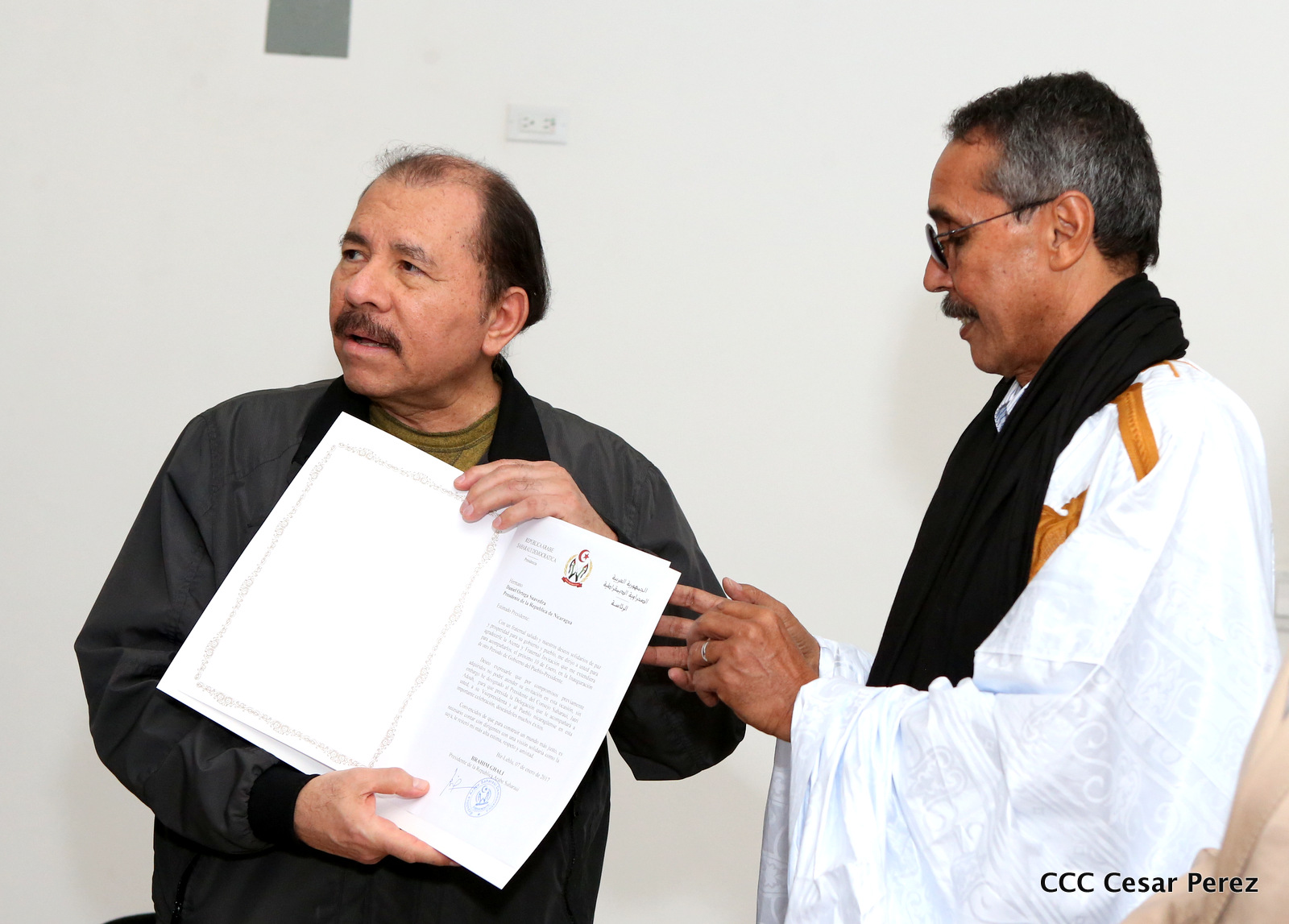 El Presidente de la República, Comandante Daniel Ortega Saavedra, se reunió la noche de este viernes con el presidente del Consejo Nacional de la República Árabe Saharaui Democrática, Jatri Adouh.