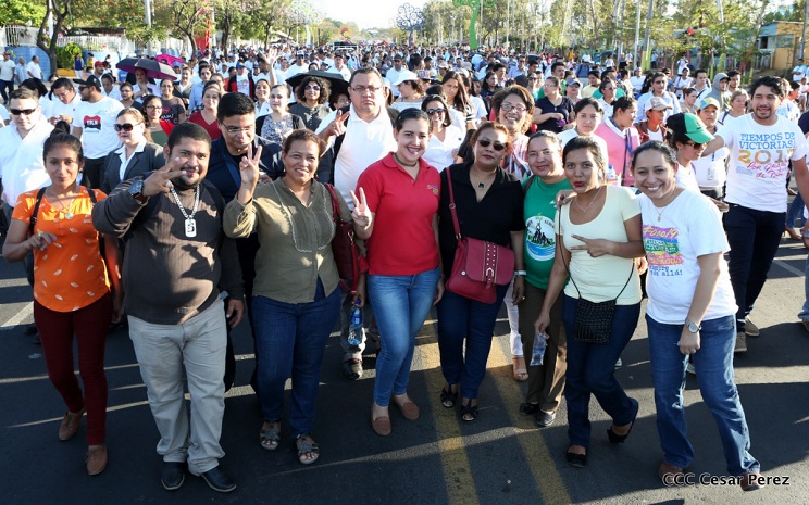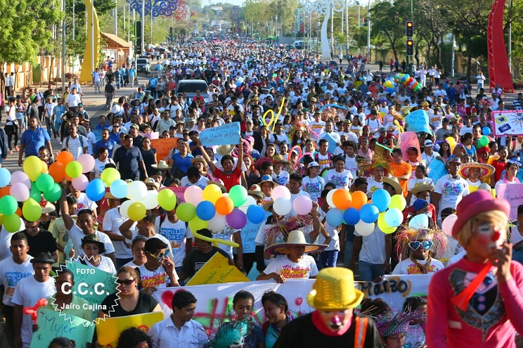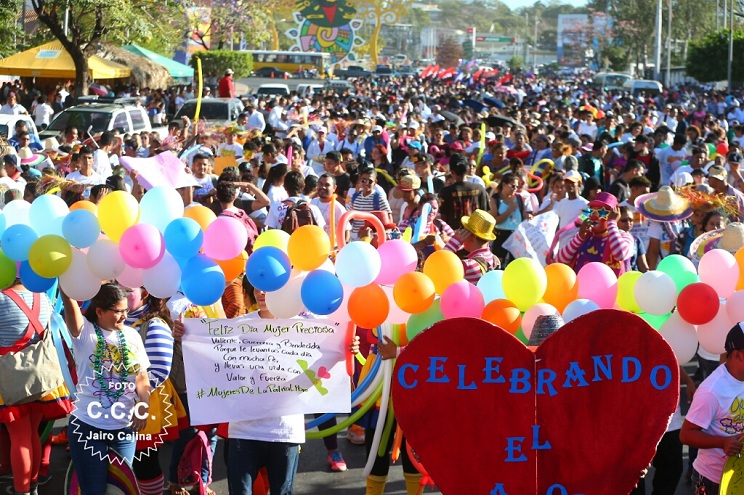 En una nutrida y colorida caminata, mujeres de distintos puntos de Managua conmemoraron el Día Internacional de la Mujer, destacando el protagonismo que tienen las mujeres en los programas impulsados por el Gobierno Sandinista.