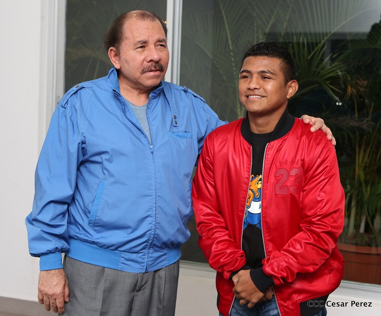 El Presidente de la República, Comandante Daniel Ortega Saavedra, sostuvo un encuentro con el Campeón del boxeo Román "Chocolatito" González. “Chocolatito” regresó al país este lunes, tras sostener un duro combate en el Madison Square Garden contra el tailandés Srisaket Sor Rungvisai.