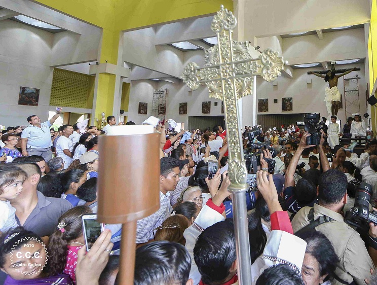 Miles de católicos de todo el país participaron este Viernes de Dolores en la tradicional bajada de la venerada imágen de la Sangre de Cristo en la Catedral de Managua.