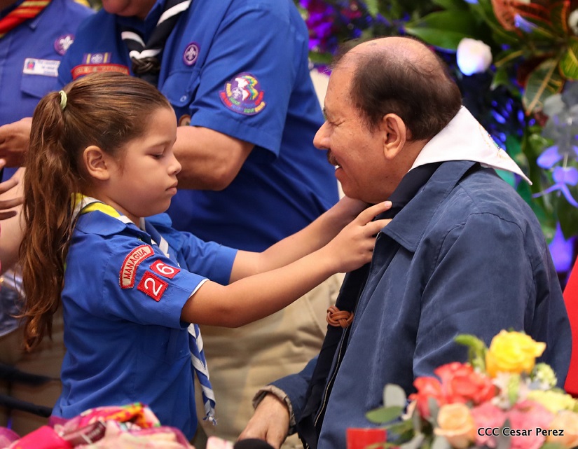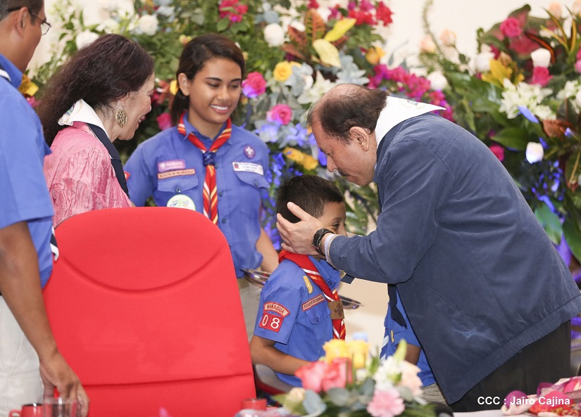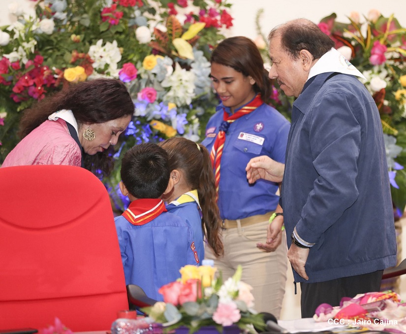 El Presidente de la República, Comandante Daniel Ortega Saavedra y la Vicepresidenta-Compañera Rosario Murillo Zambrana, presidieron el acto conmemorativo del centenario de constitución del Movimiento Scout en Nicaragua.