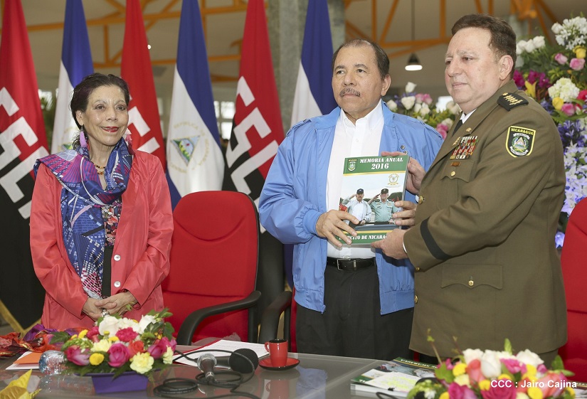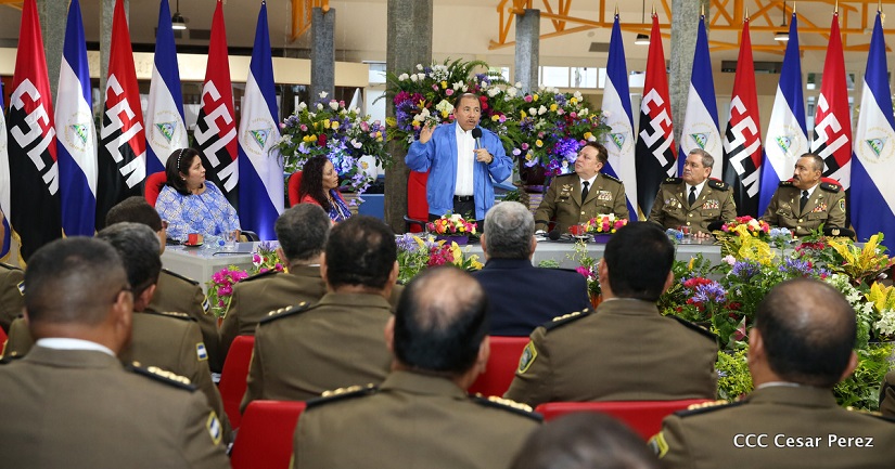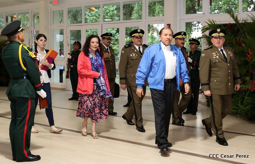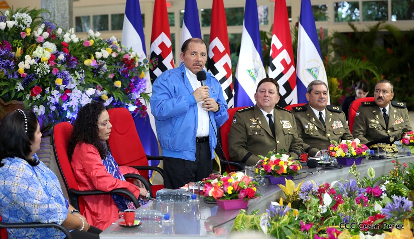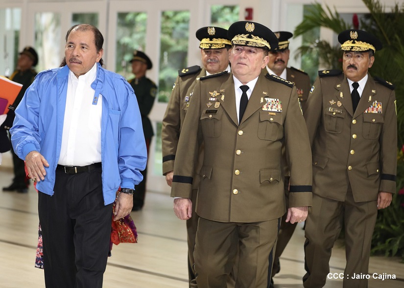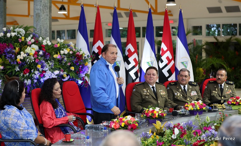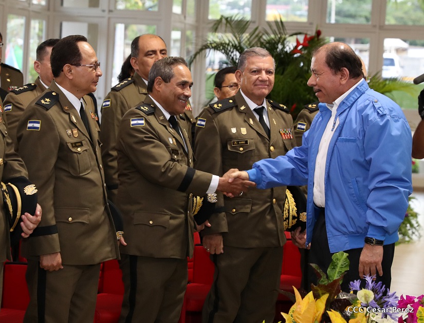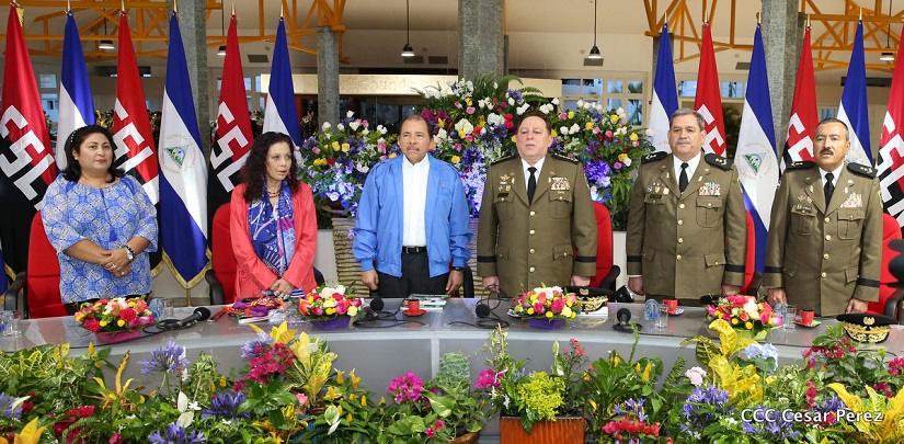 El Presidente de la República, Comandante Daniel Ortega Saavedra, y la Vicepresidenta -Compañera Rosario Murillo, se reúnen con el Consejo Militar Ampliado del Ejército de Nicaragua.