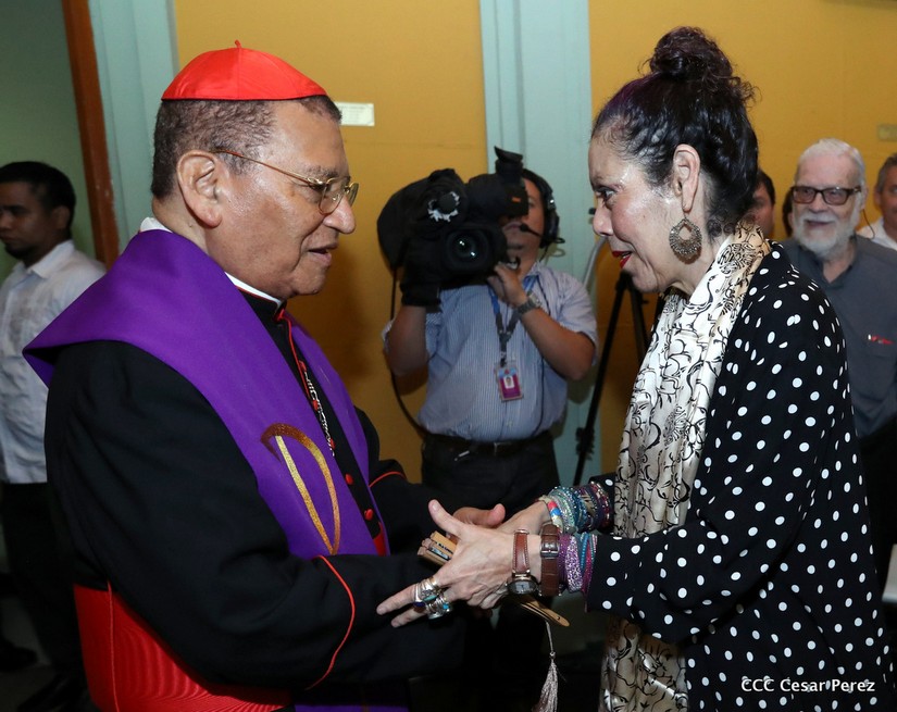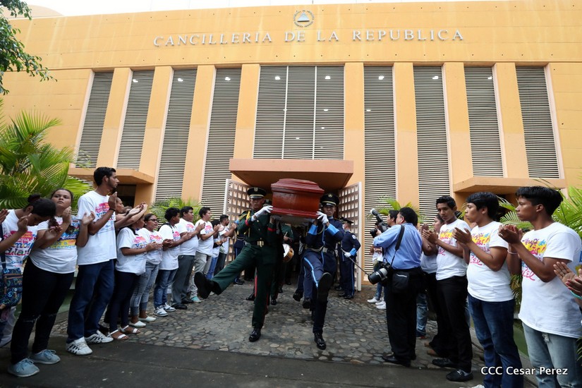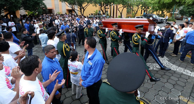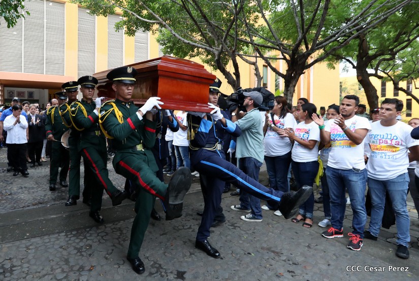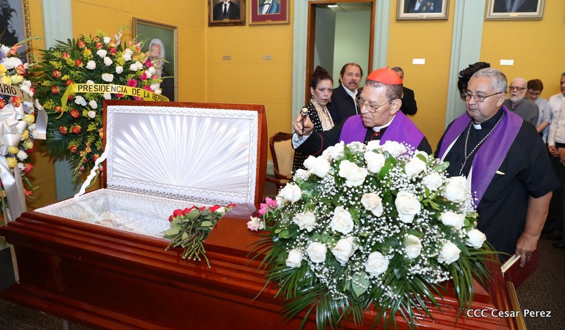 El Presidente Daniel Ortega Saavedra y la Vicepresidenta Compañera Rosario Murillo, presidieron el homenaje póstumo en honor al Padre Miguel D'Escoto Brockmann.