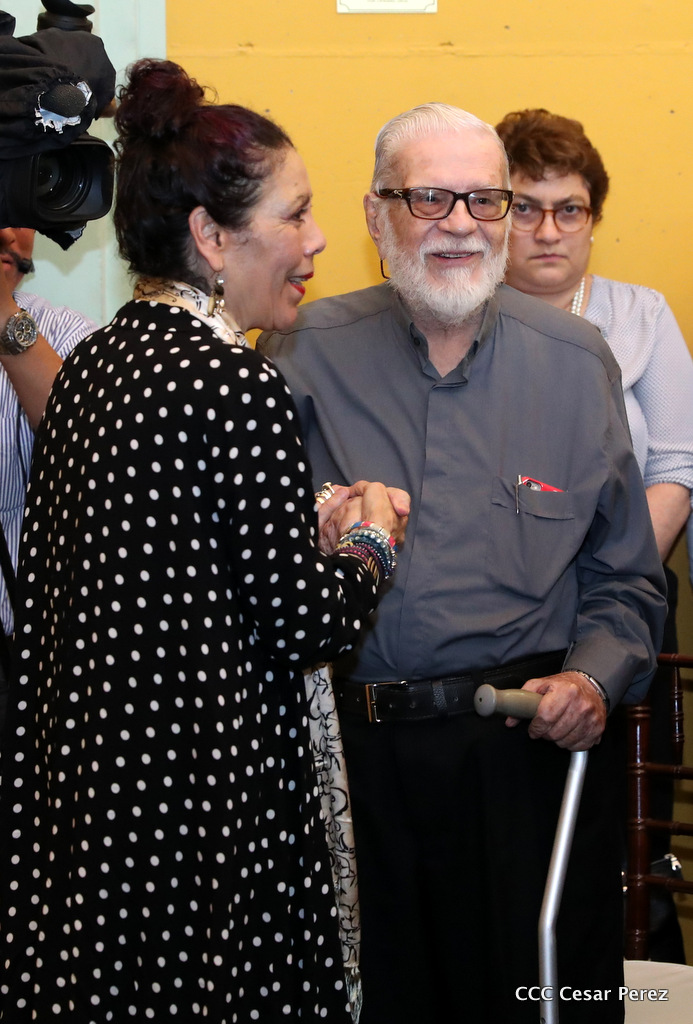 Daniel y Rosario rinden homenaje al Padre Miguel D'Escoto